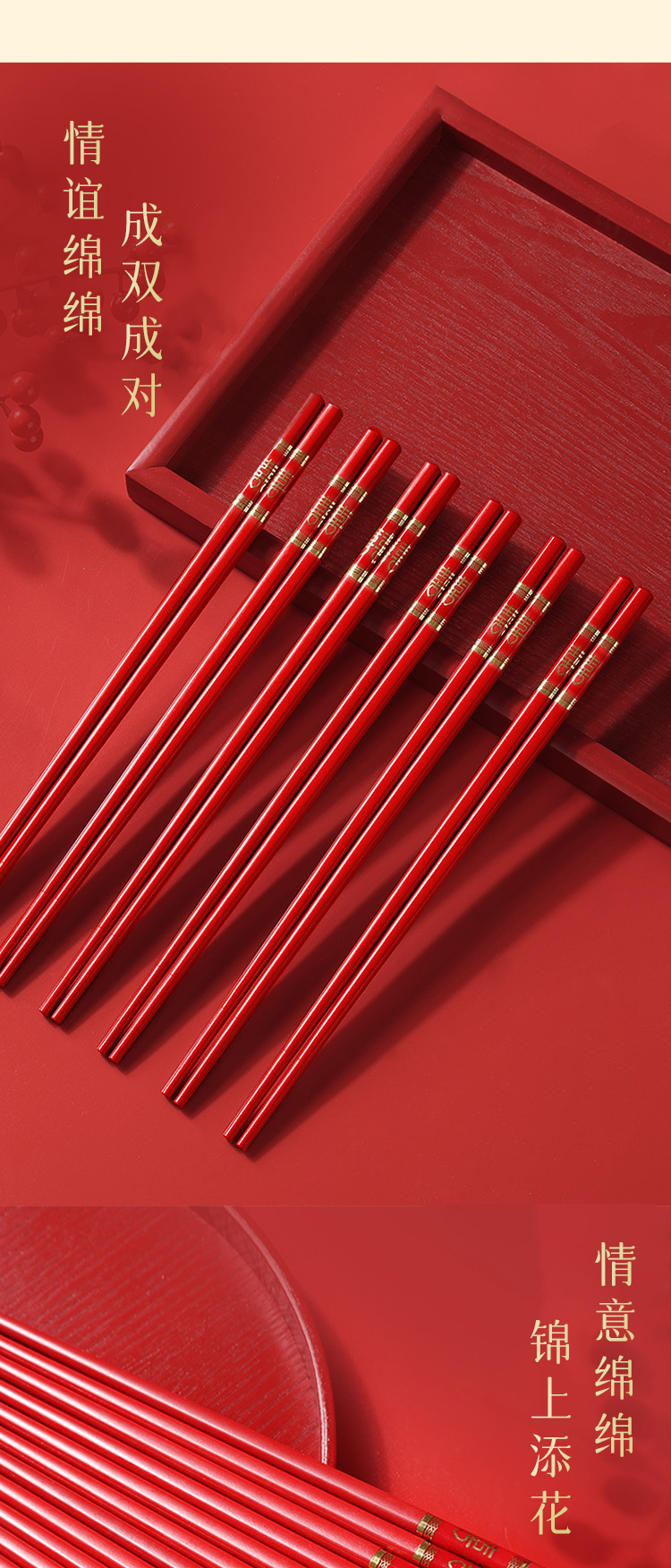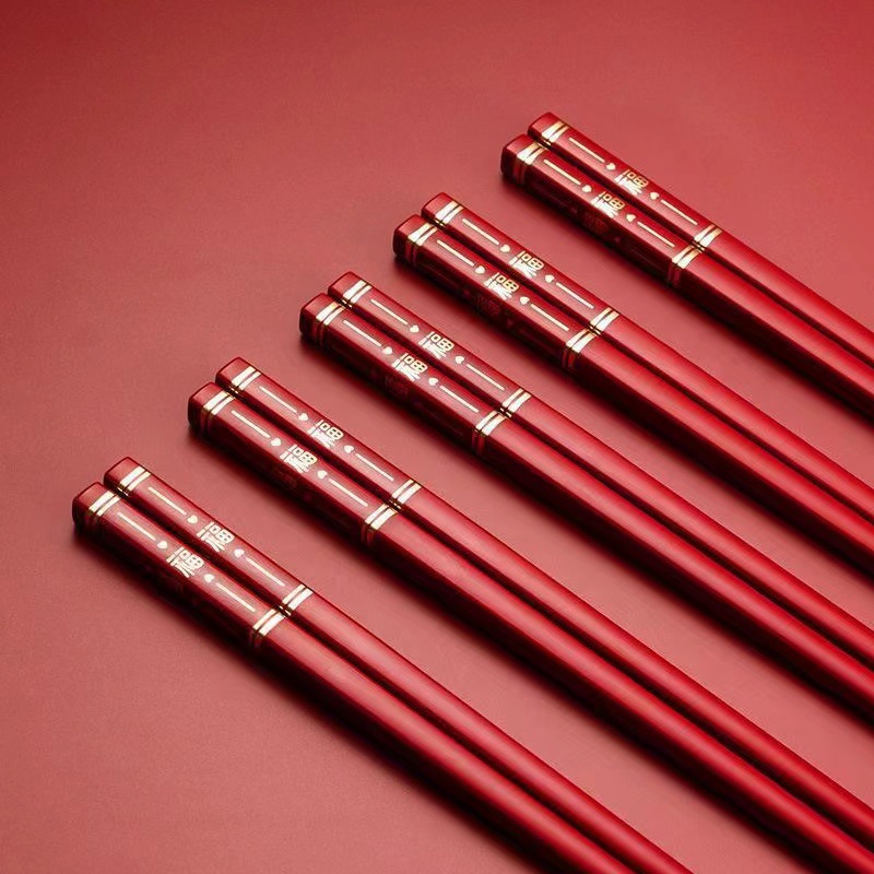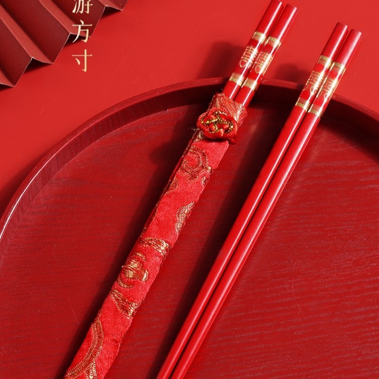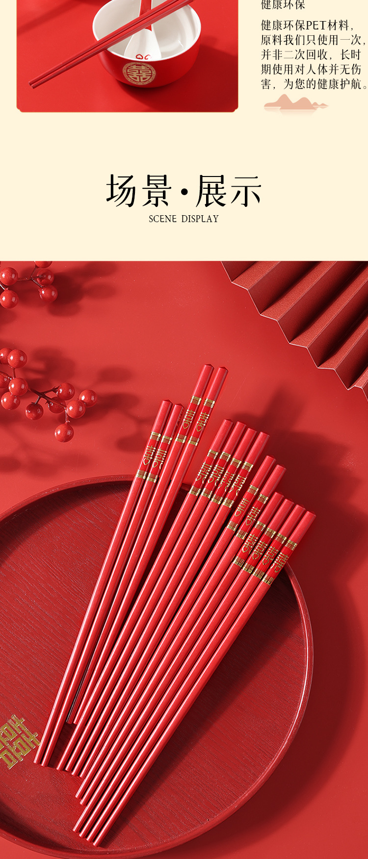 结婚喜字红色筷子盒装高档防滑合金筷子喜庆乔迁龙凤喜筷家用婚礼