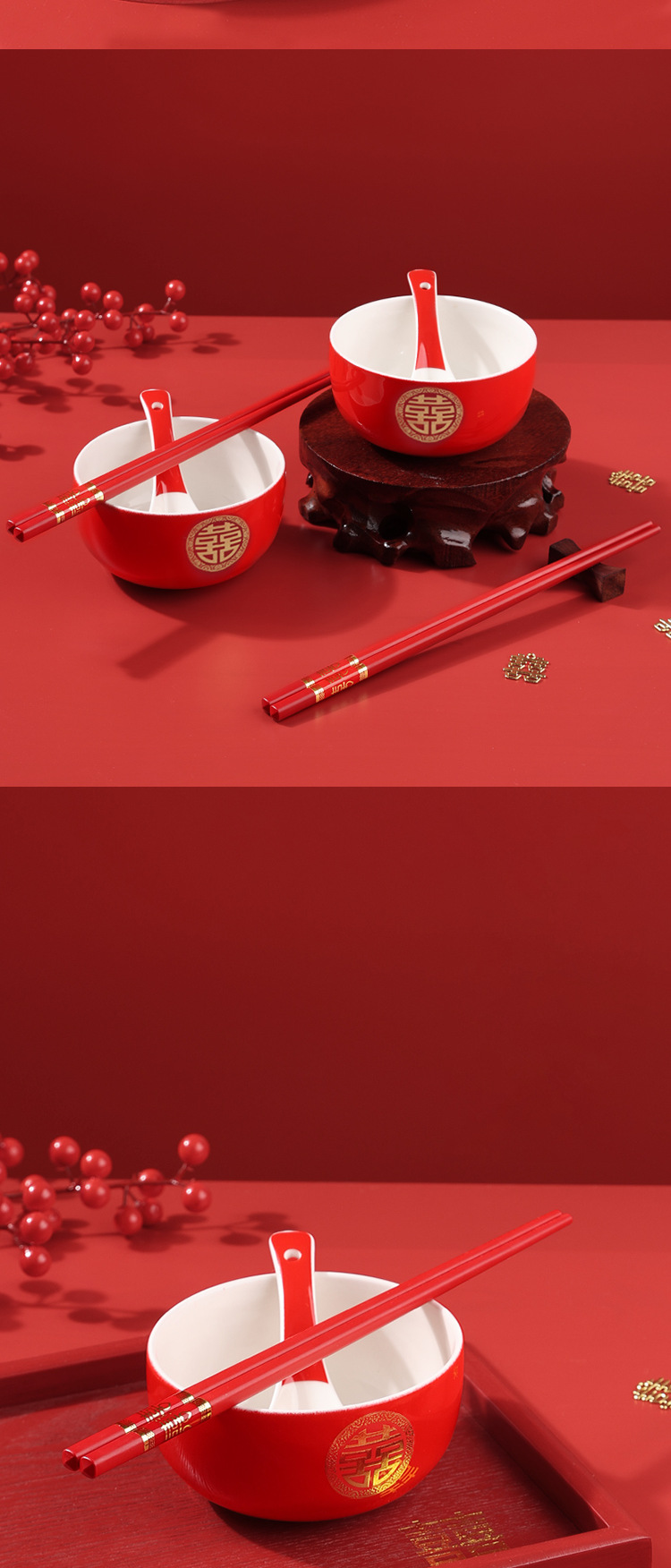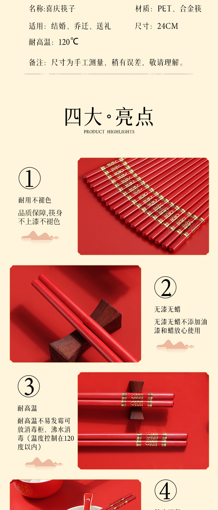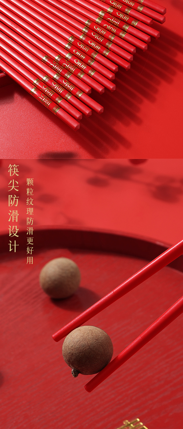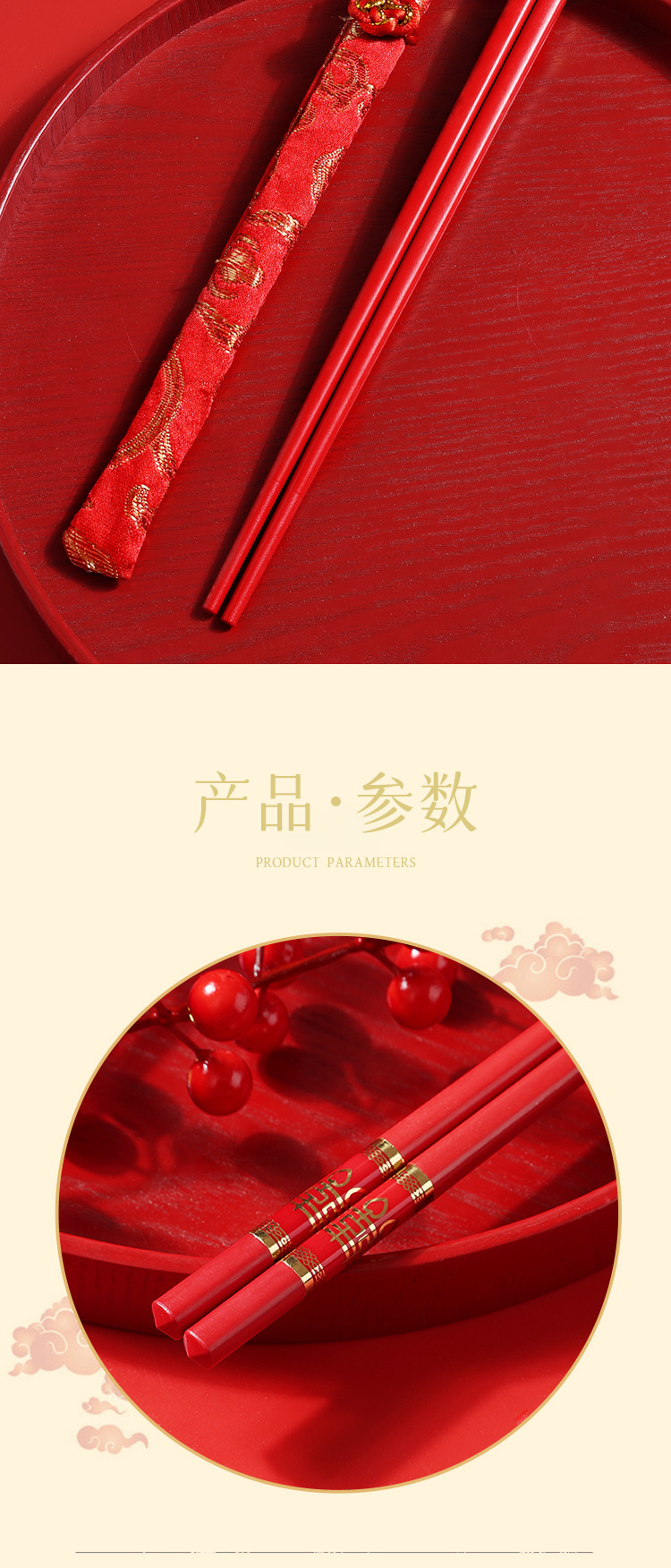 结婚喜字红色筷子盒装高档防滑合金筷子喜庆乔迁龙凤喜筷家用婚礼