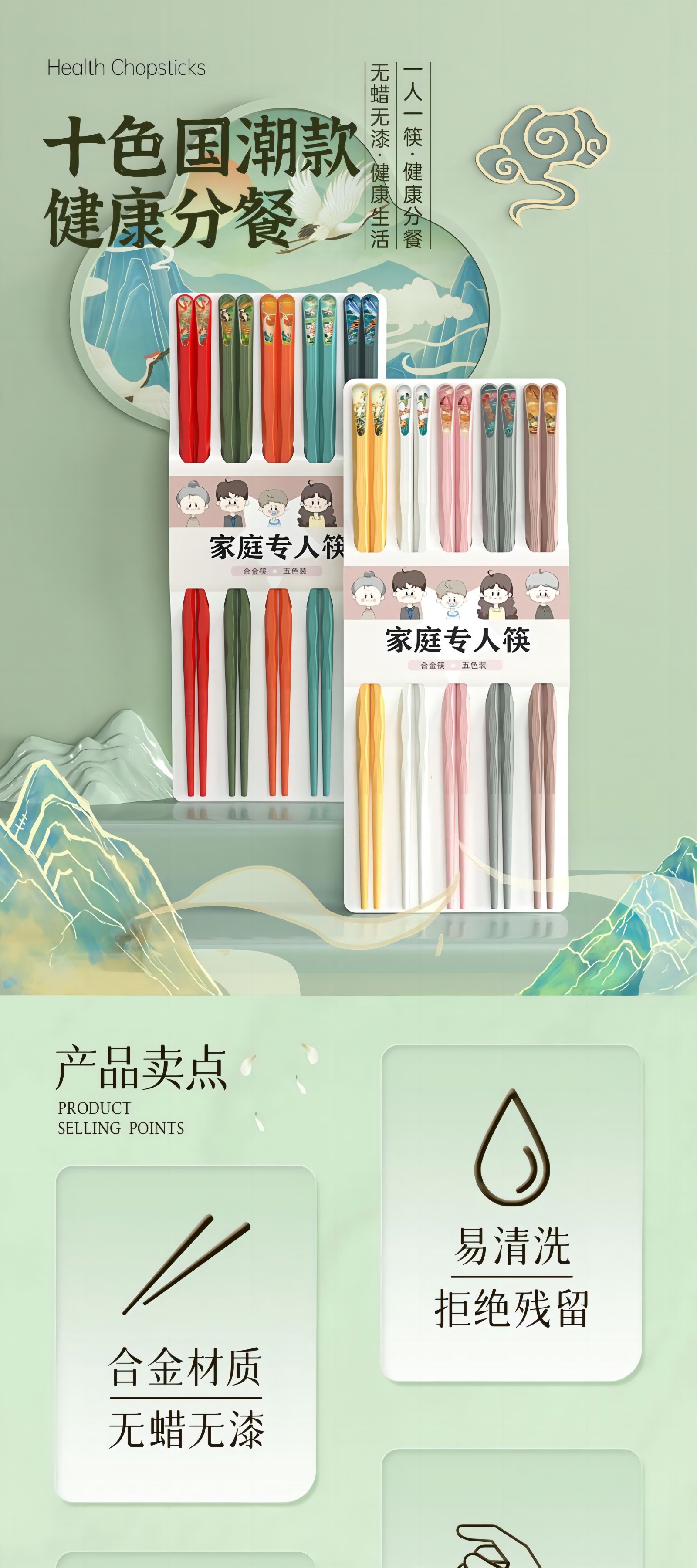 爆款国潮风家用一人一筷10双一件代发分餐筷子合金筷子厂