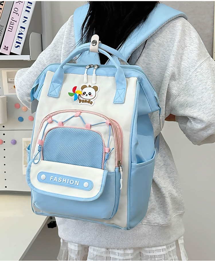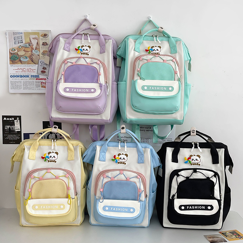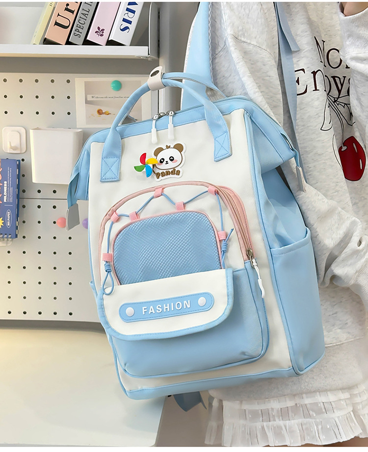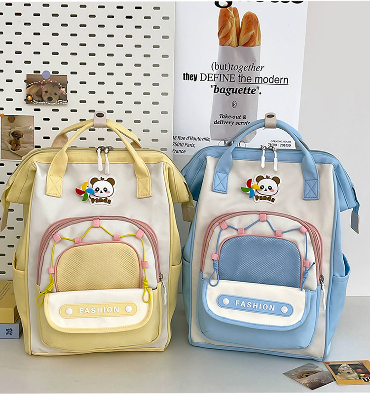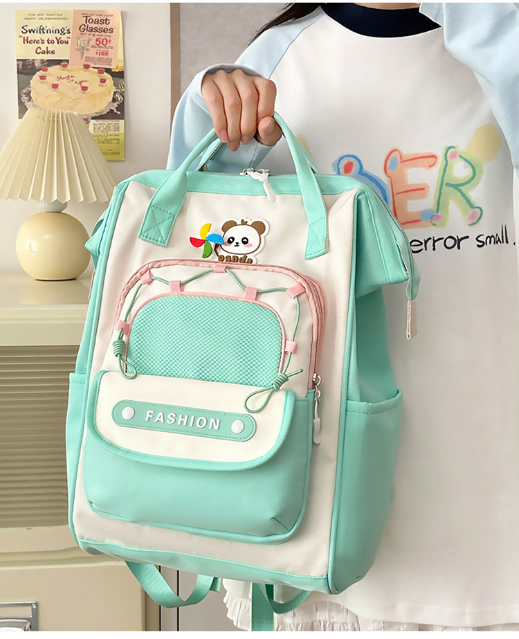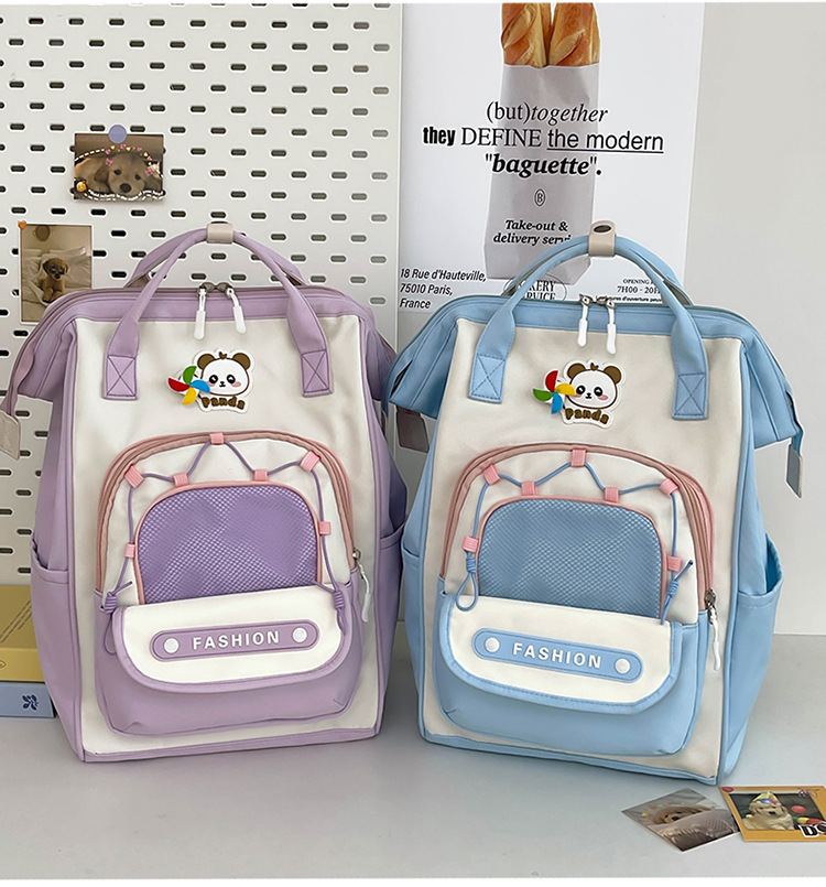 撞色可爱双肩包女新款学生休闲背包轻便旅行双背包