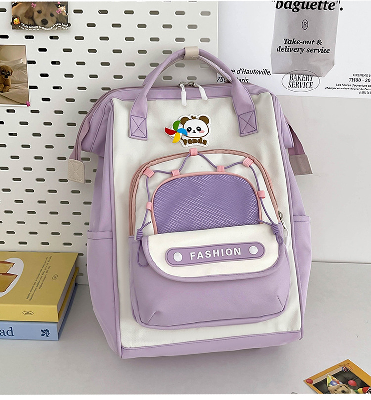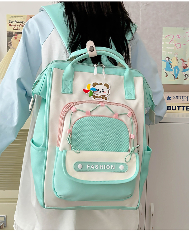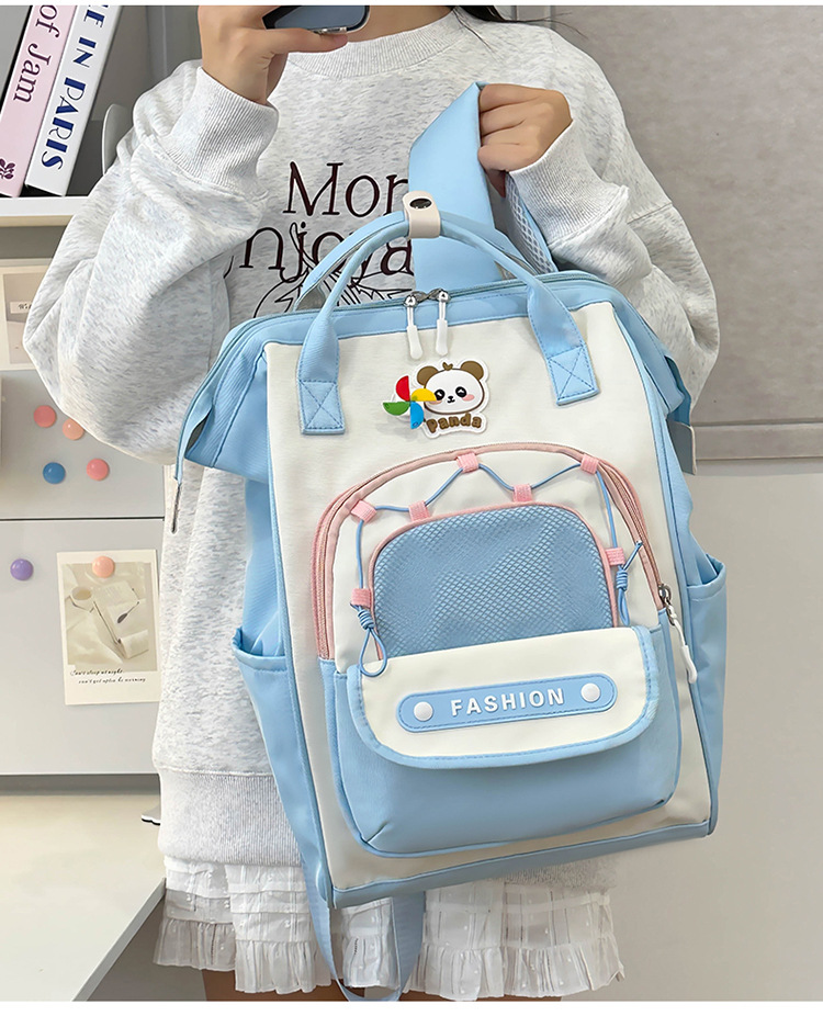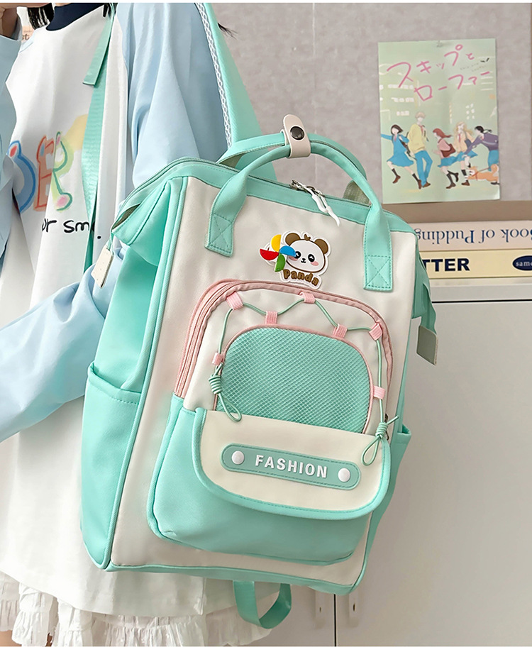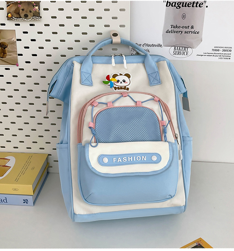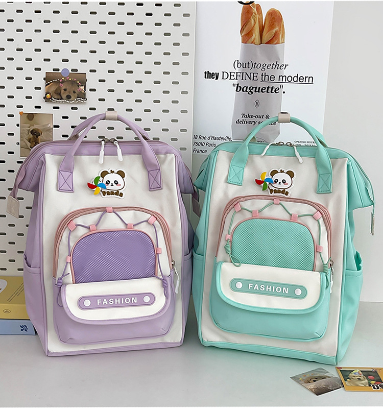撞色可爱双肩包女新款学生休闲背包轻便旅行双背包