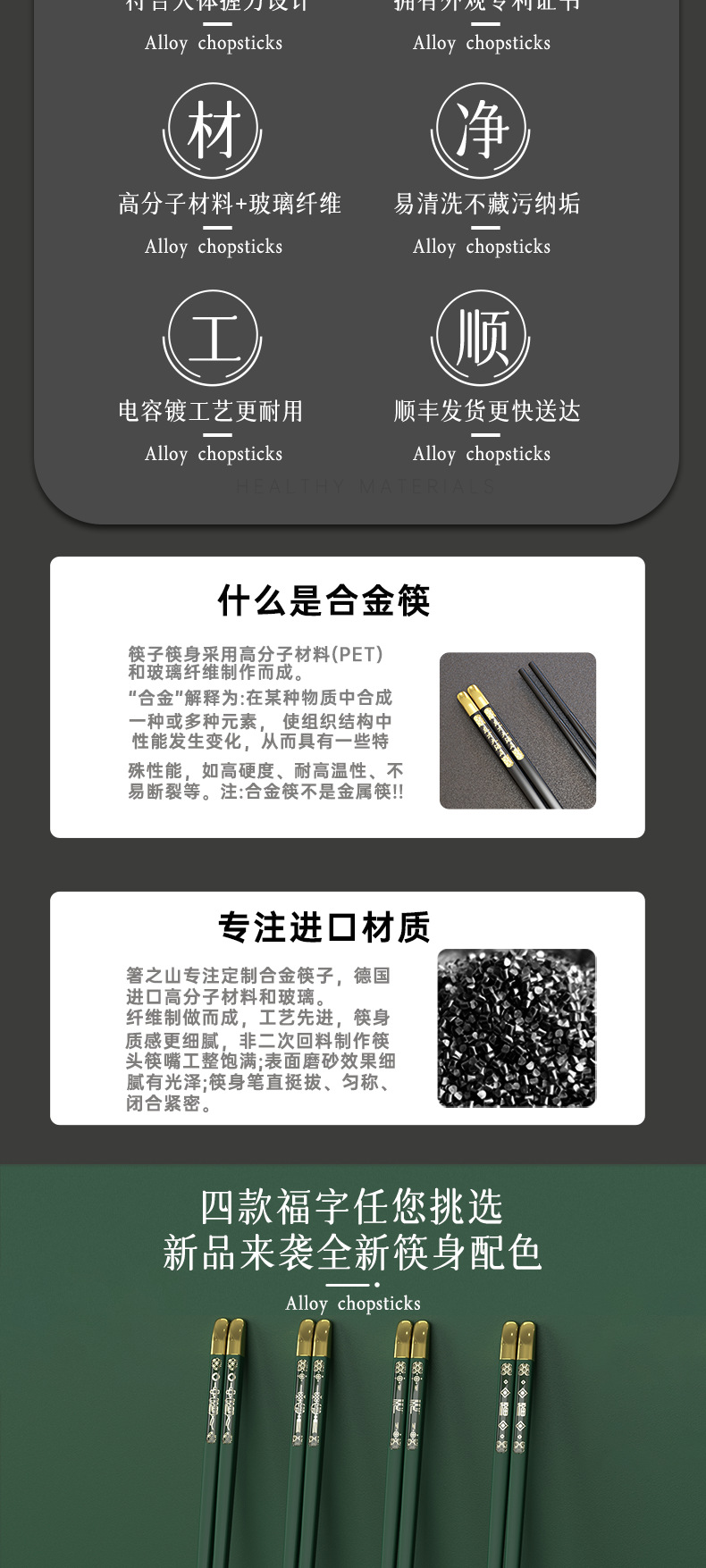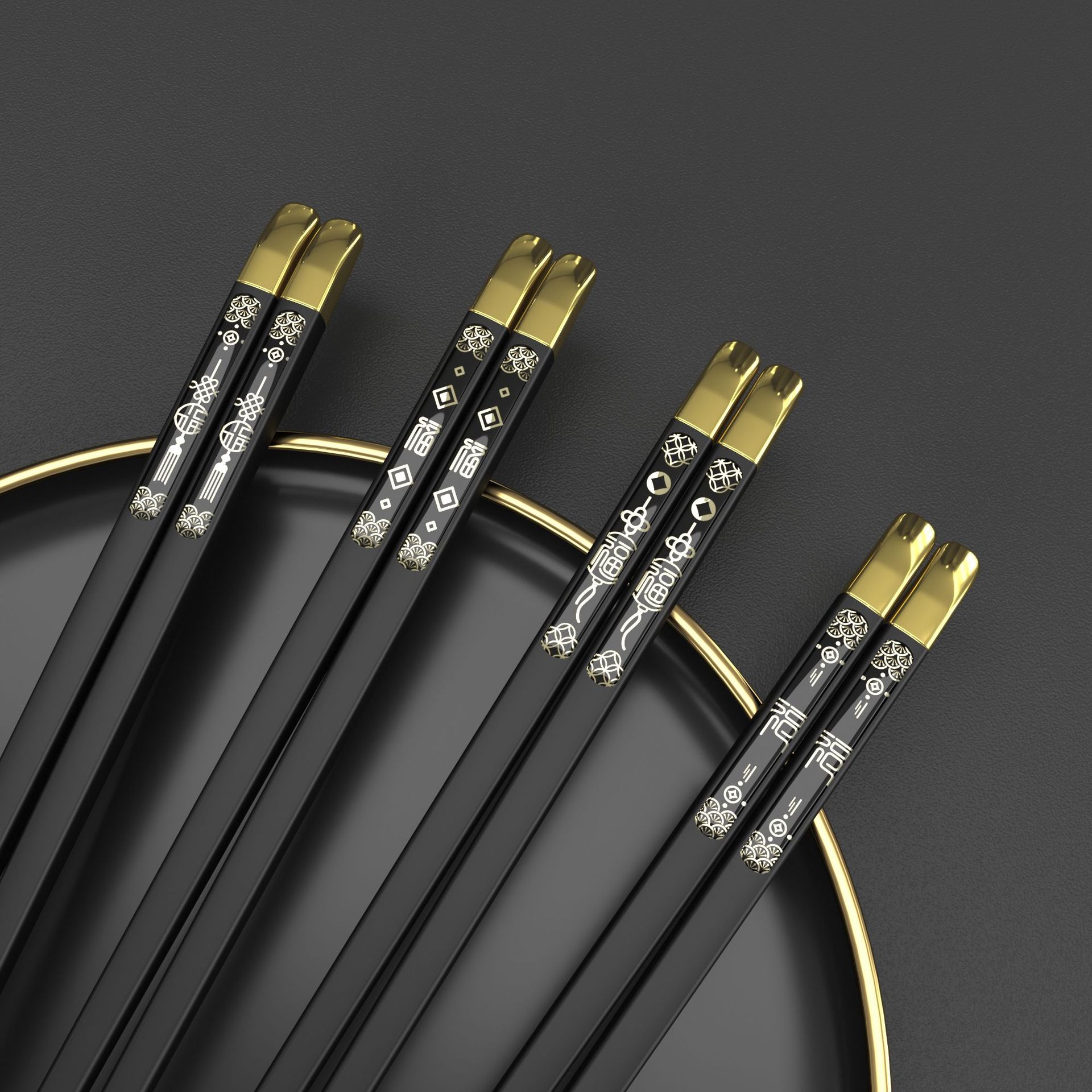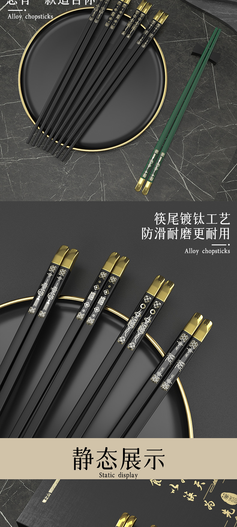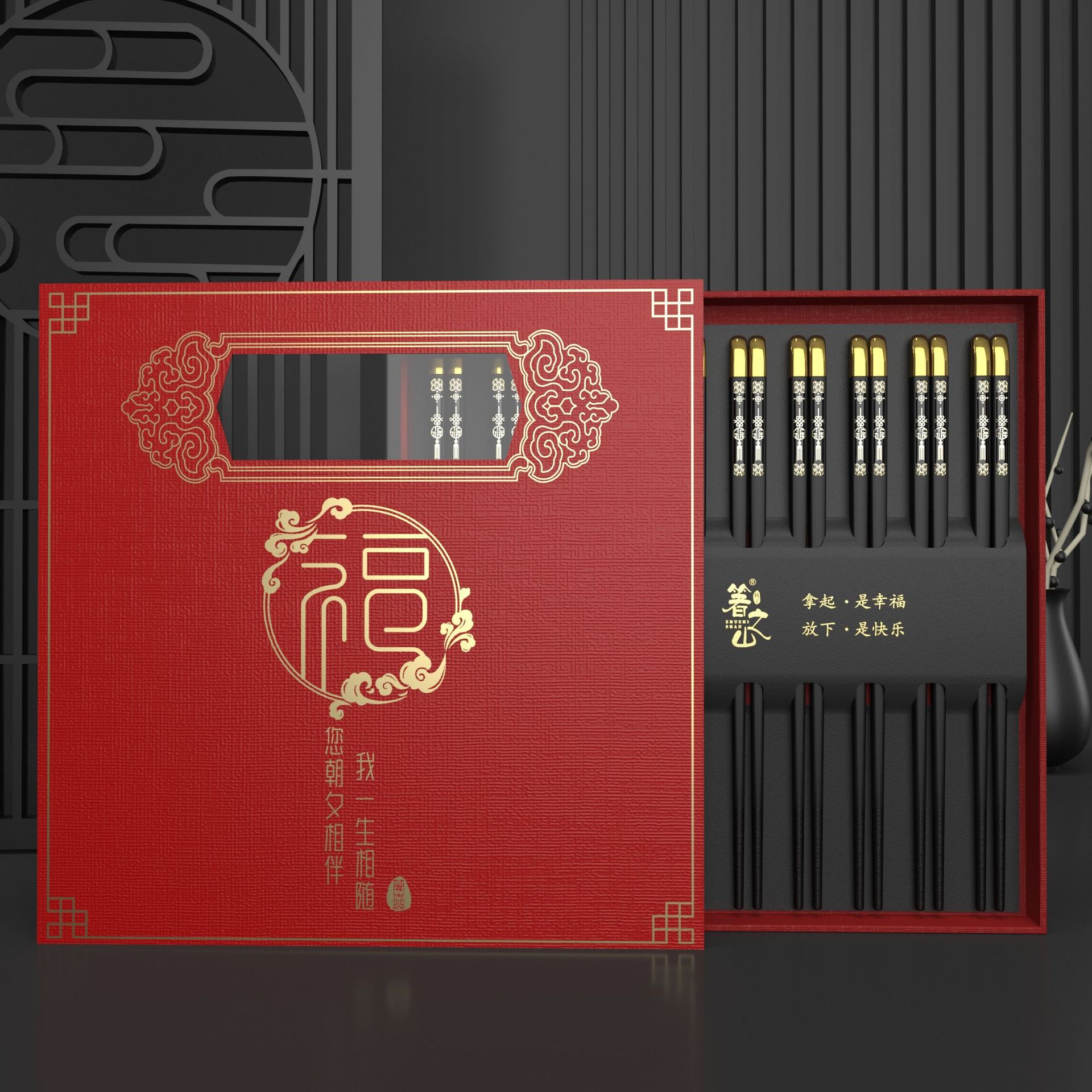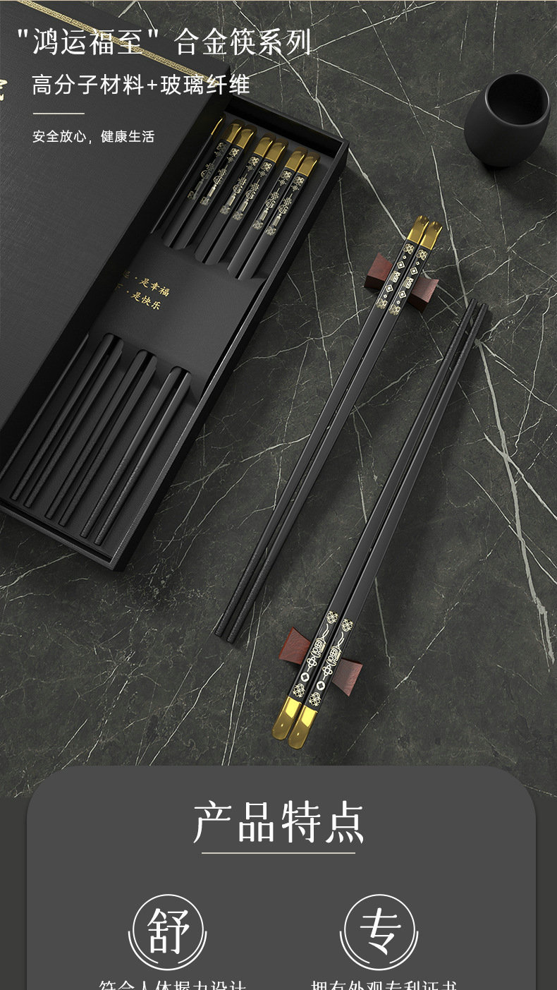 批发福筷酒店合金筷子高档家用商用礼盒装黑色餐厅筷子