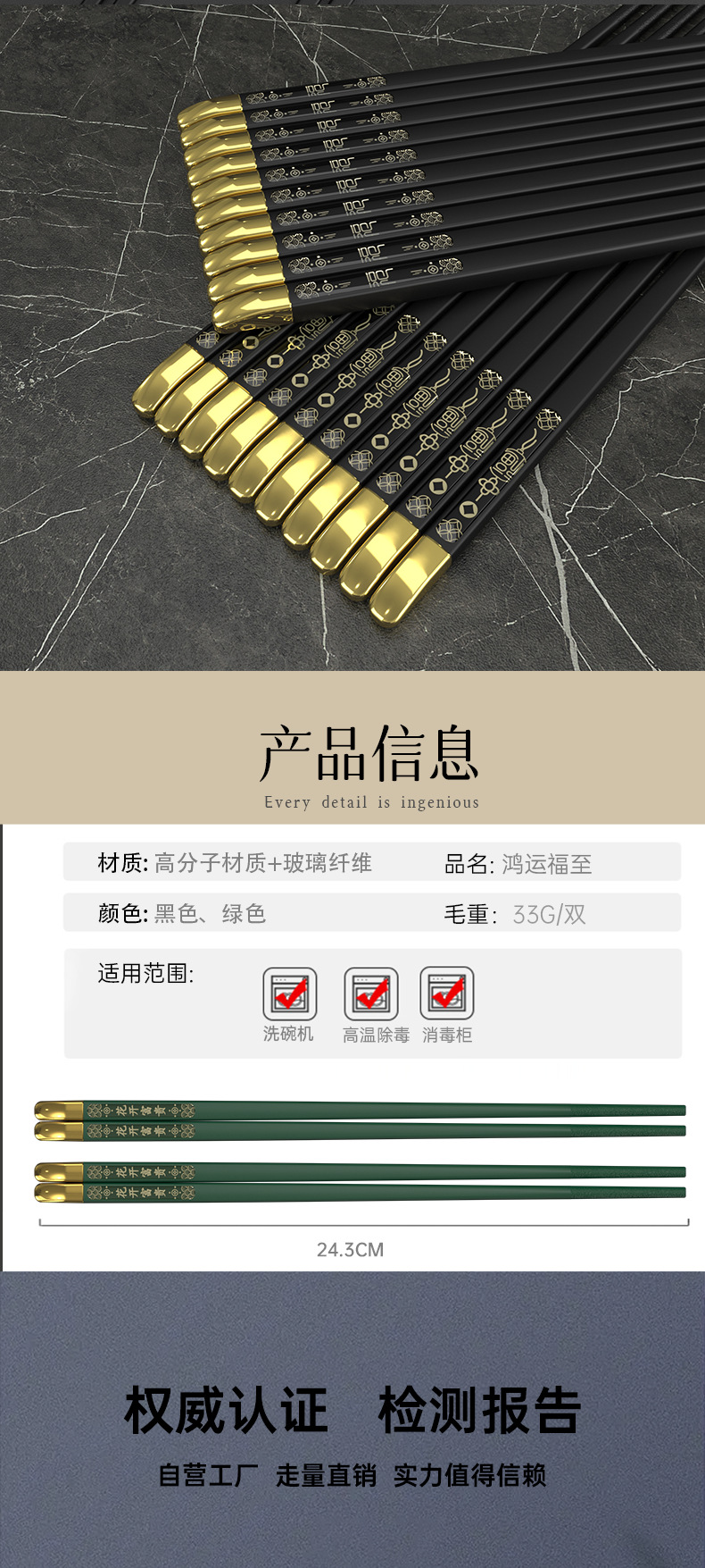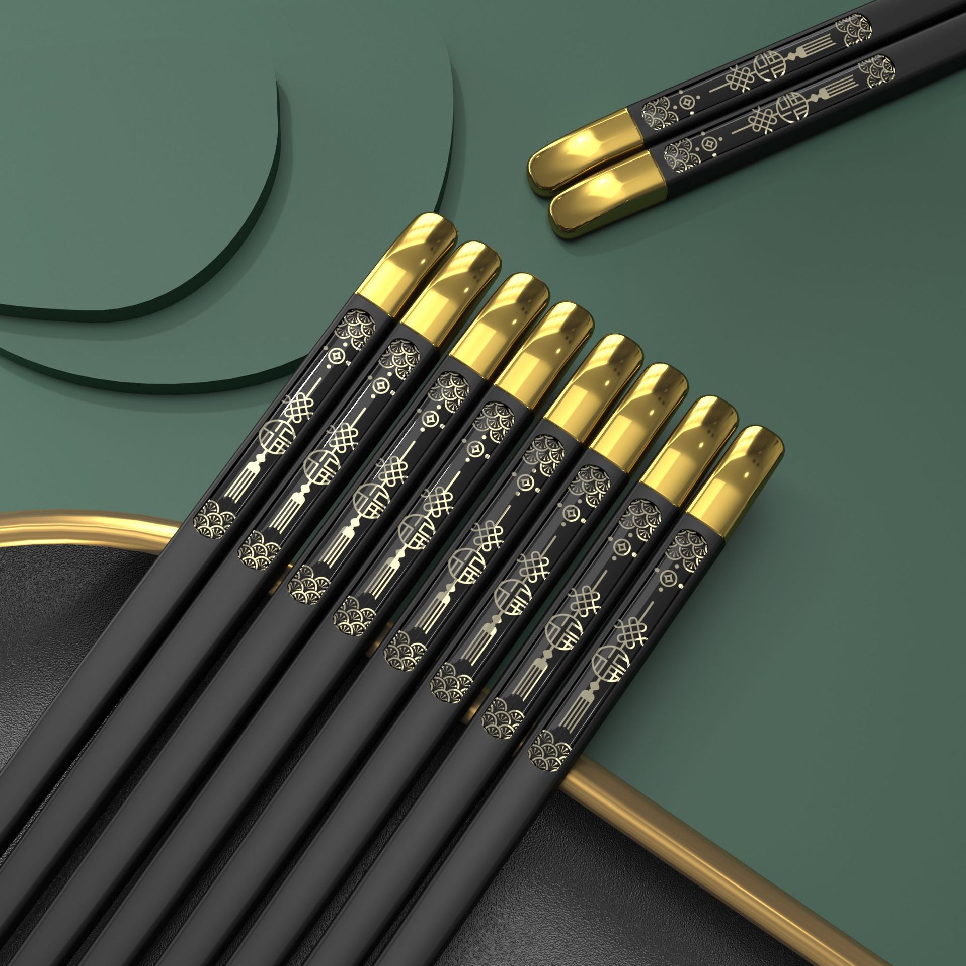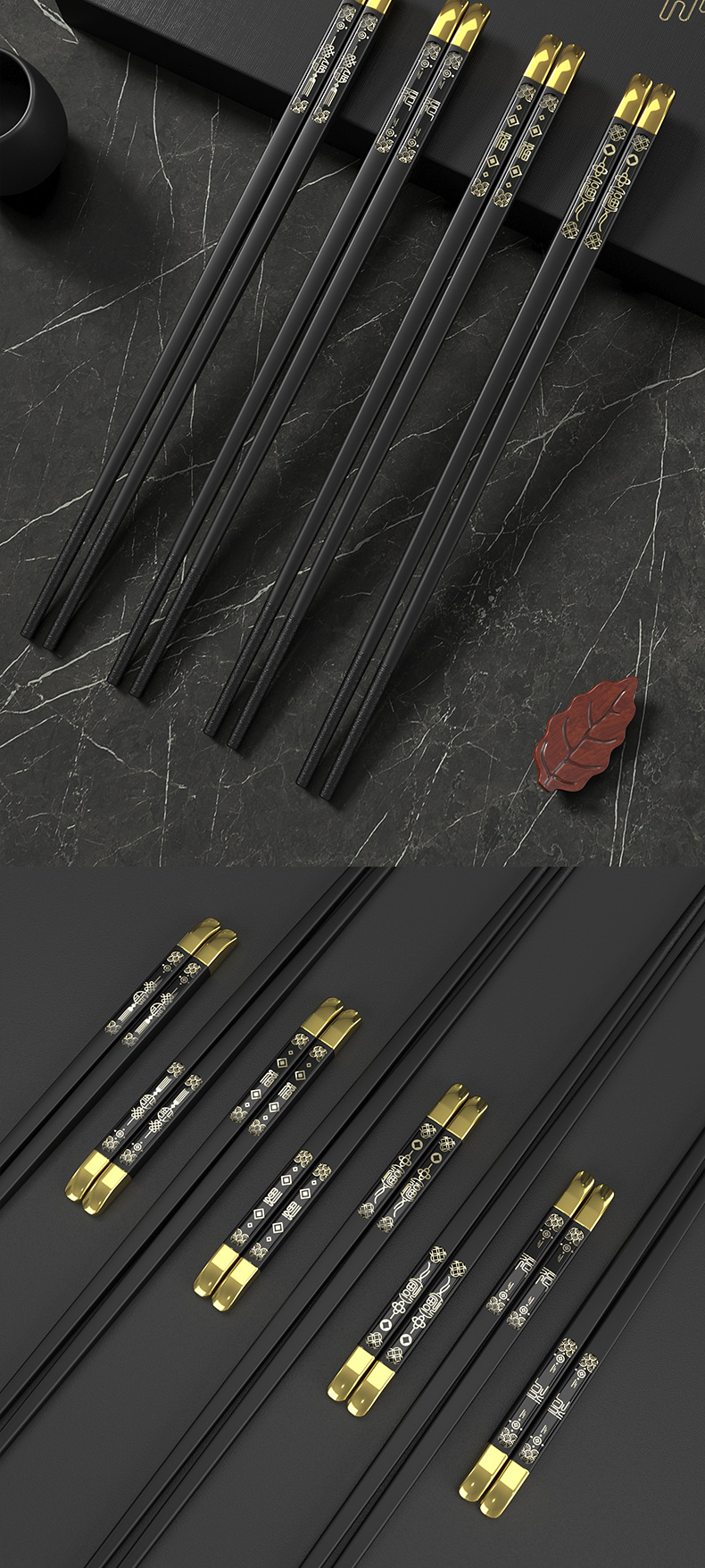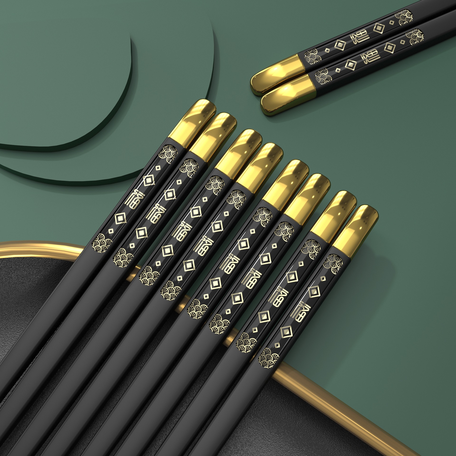 批发福筷酒店合金筷子高档家用商用礼盒装黑色餐厅筷子