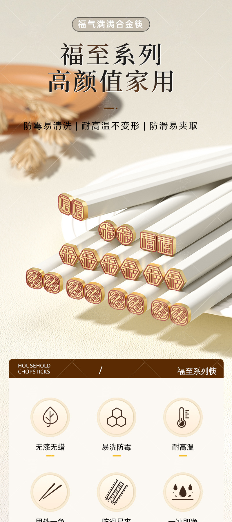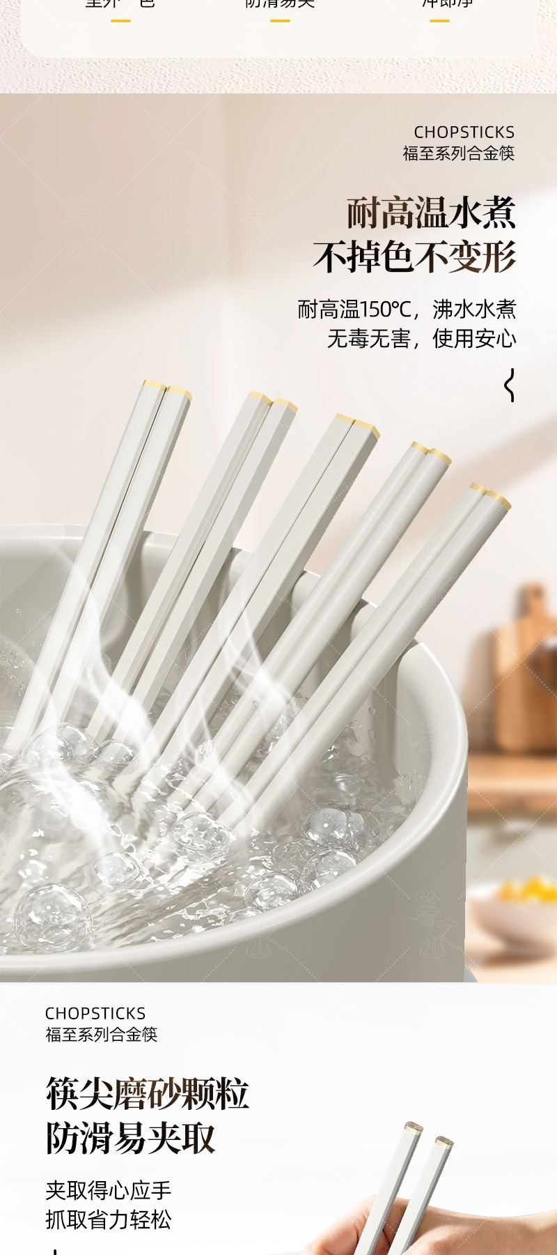 家用合金筷子简约防霉防滑耐高温家用一人一筷高档不变形高温餐具