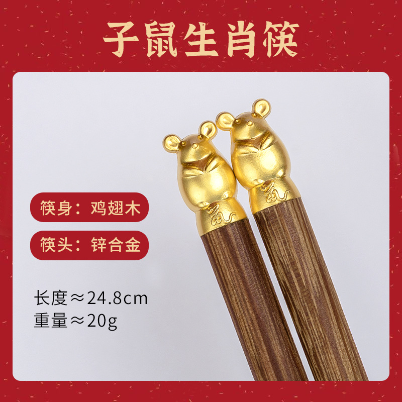 鸡翅木筷子十二生肖筷国潮家用筷子乔迁本命年筷子儿童筷礼盒套装