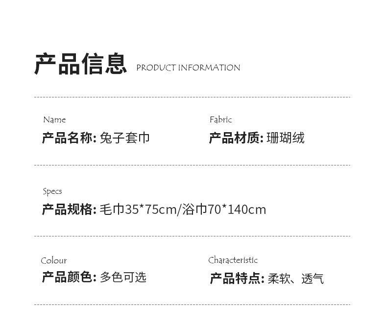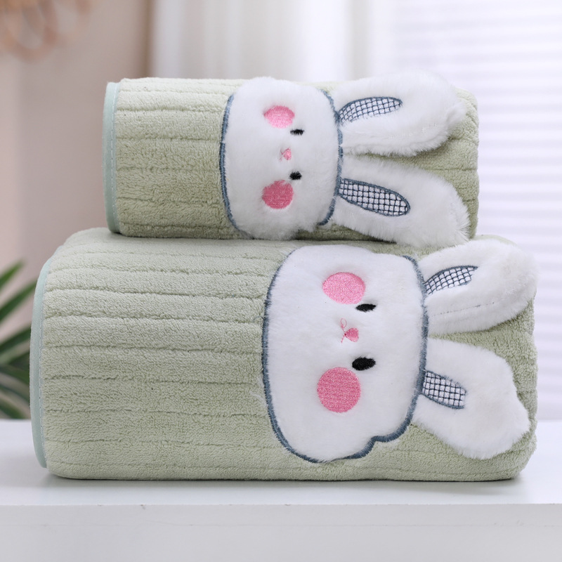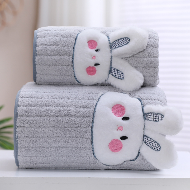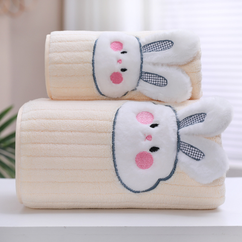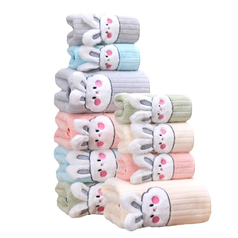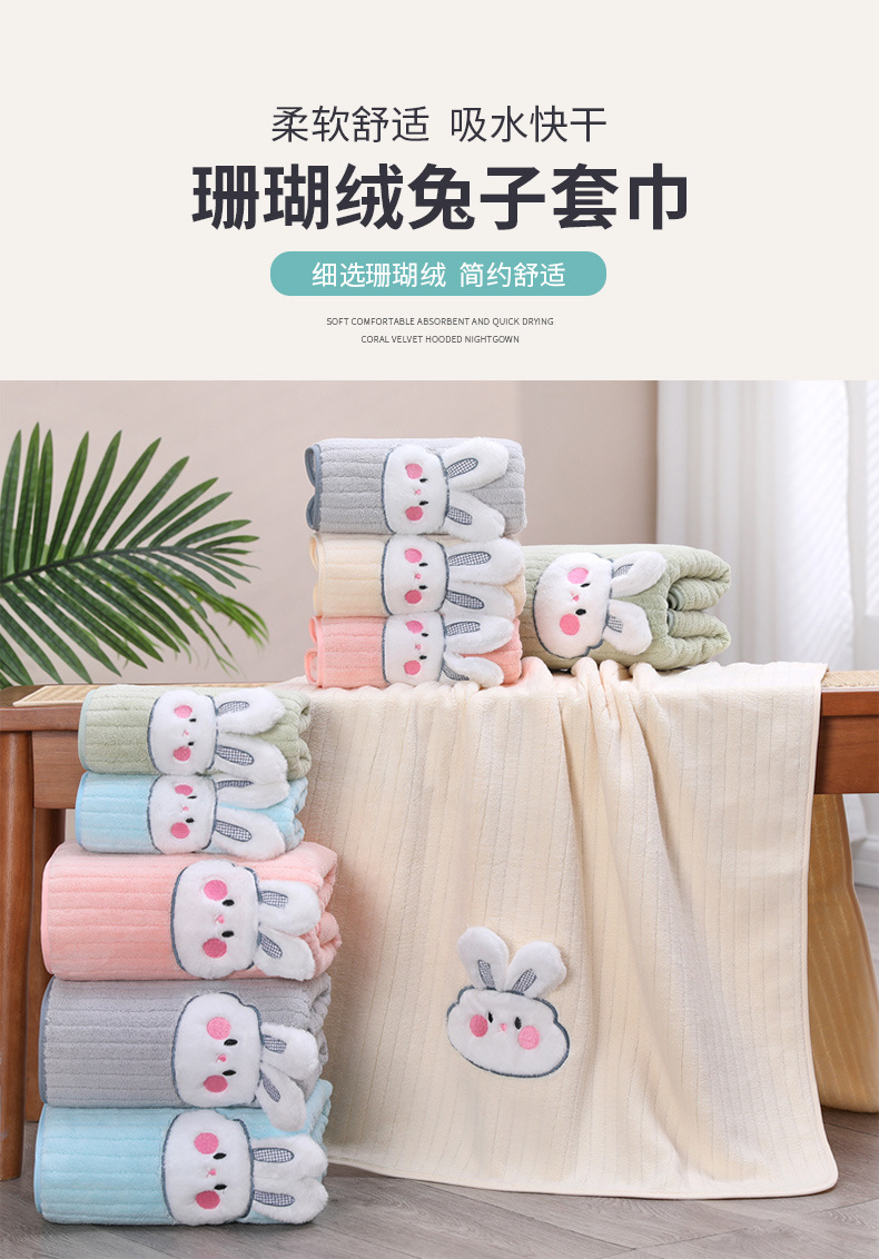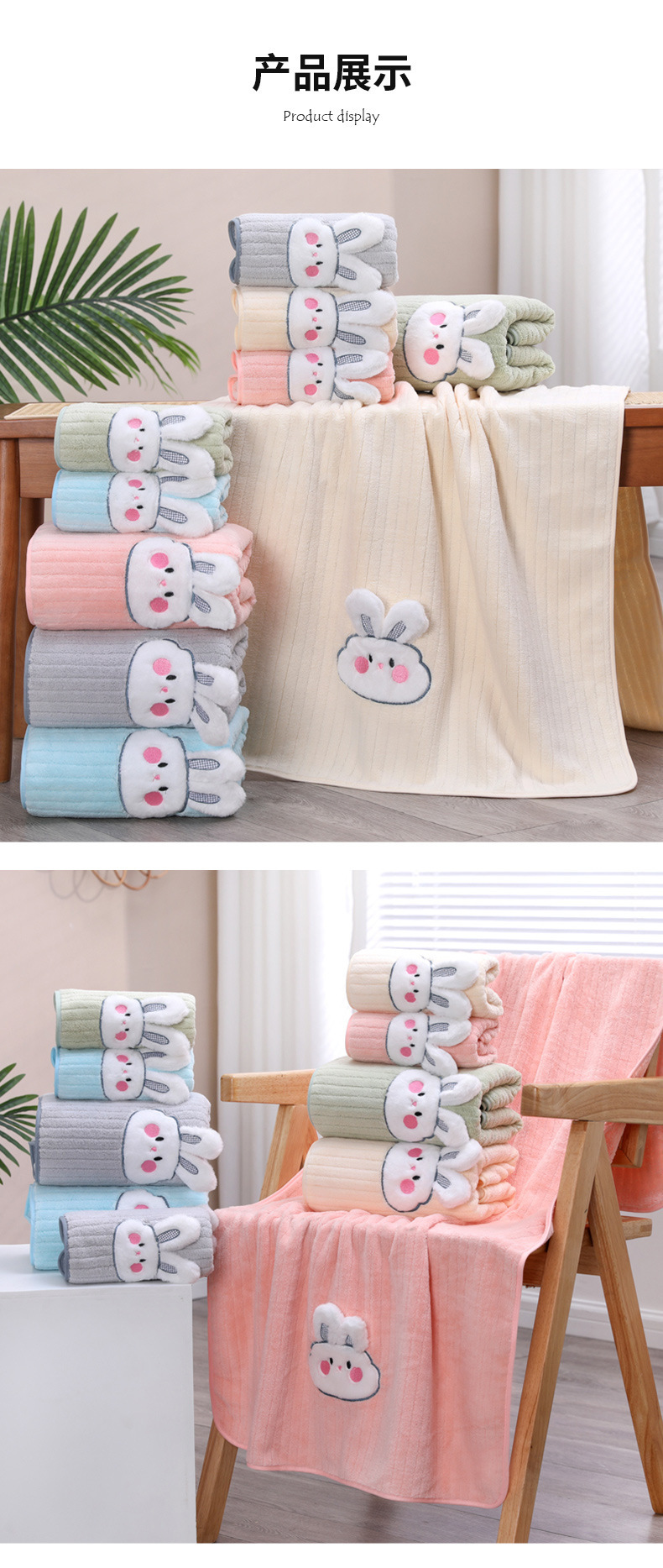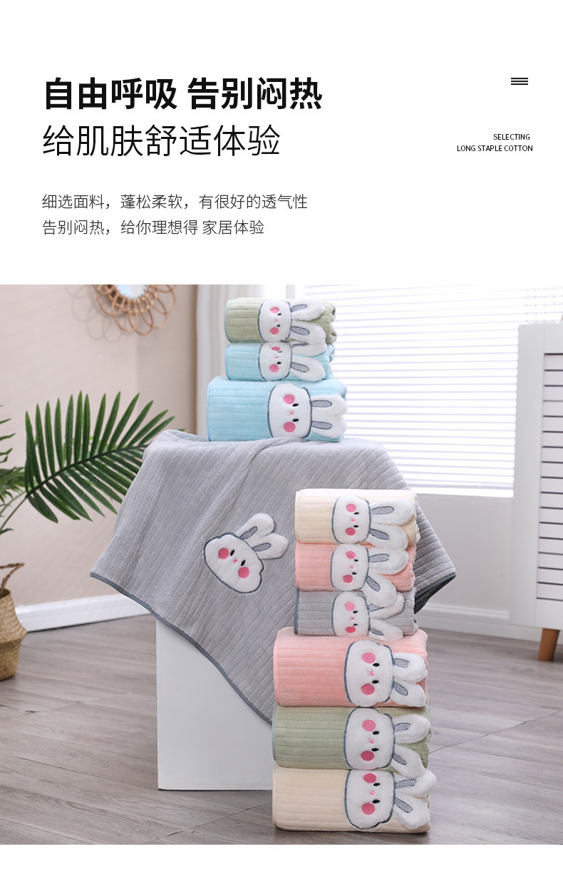 跨境爆款卡通兔子大浴巾毛巾浴巾套装可爱强吸水情侣家用快干浴巾