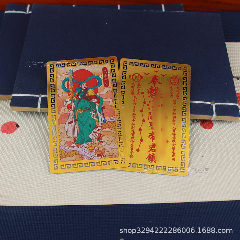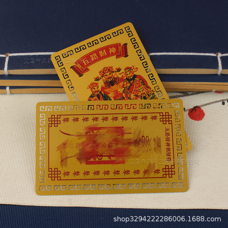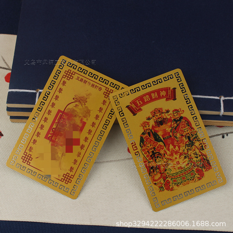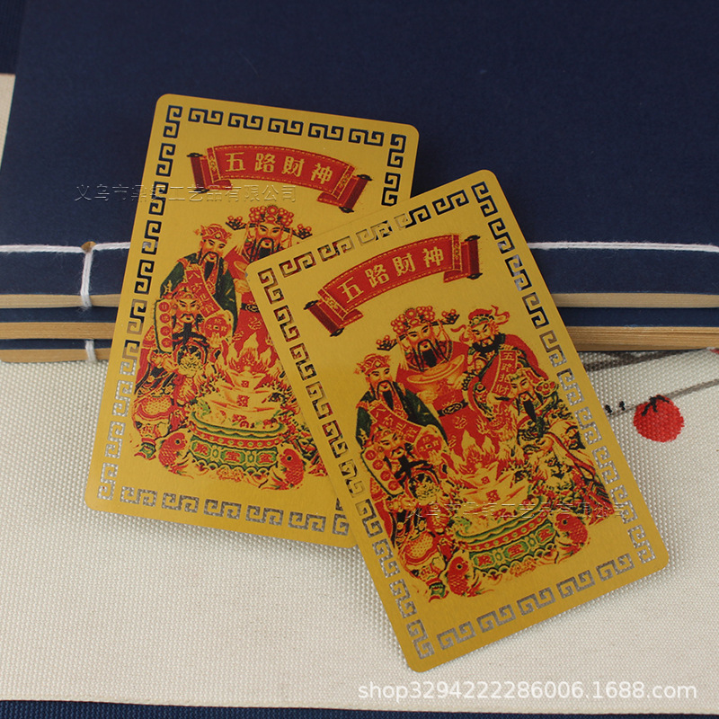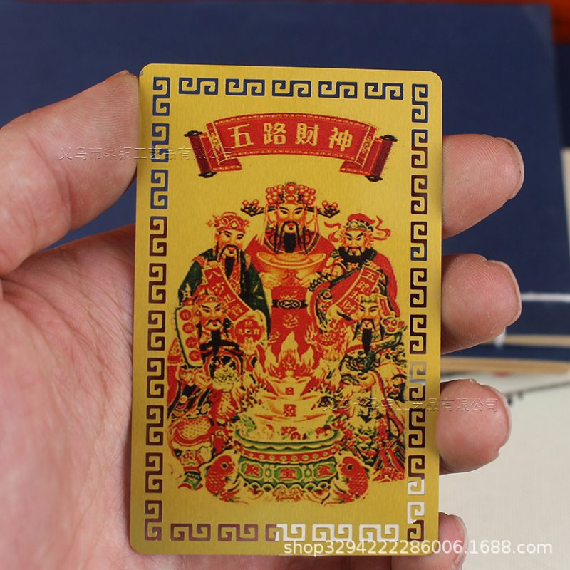 手机五路财神背面卡片随身摆件吉祥物装饰品关公金属材质配件配饰