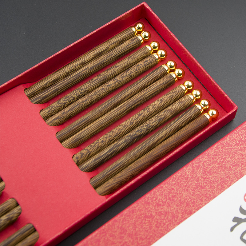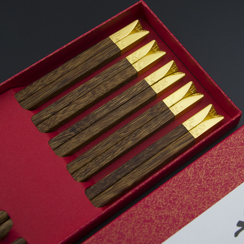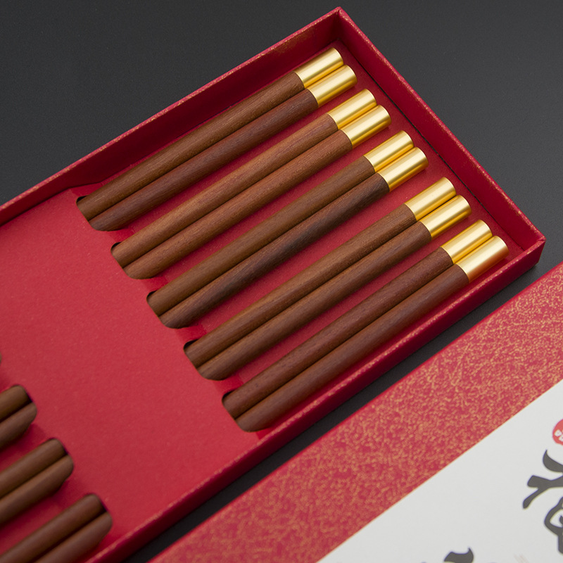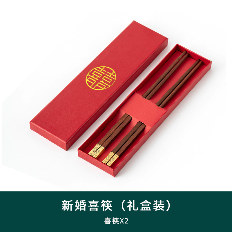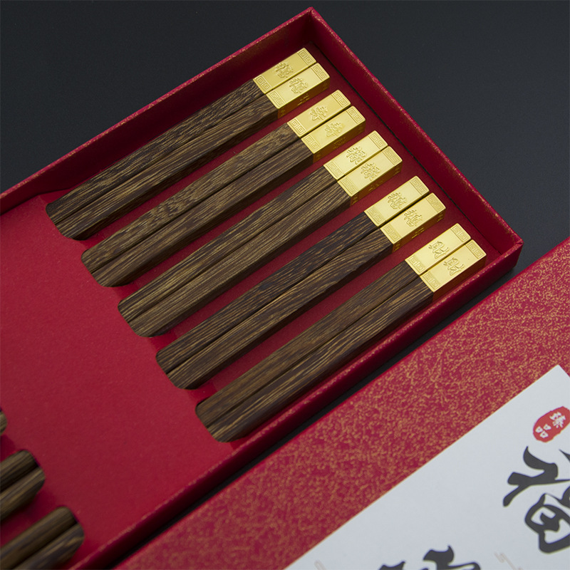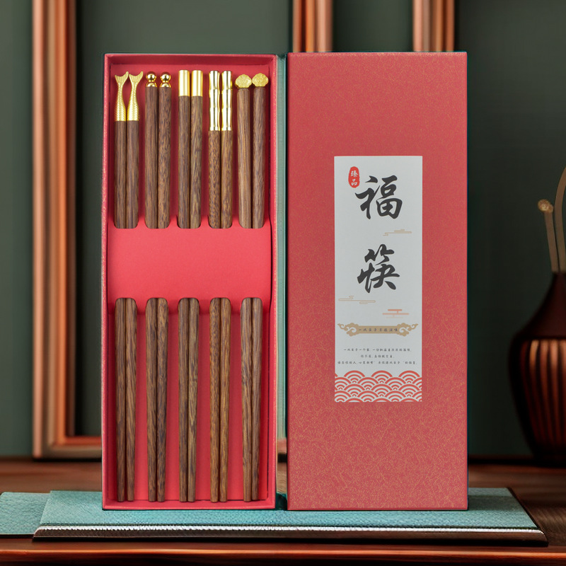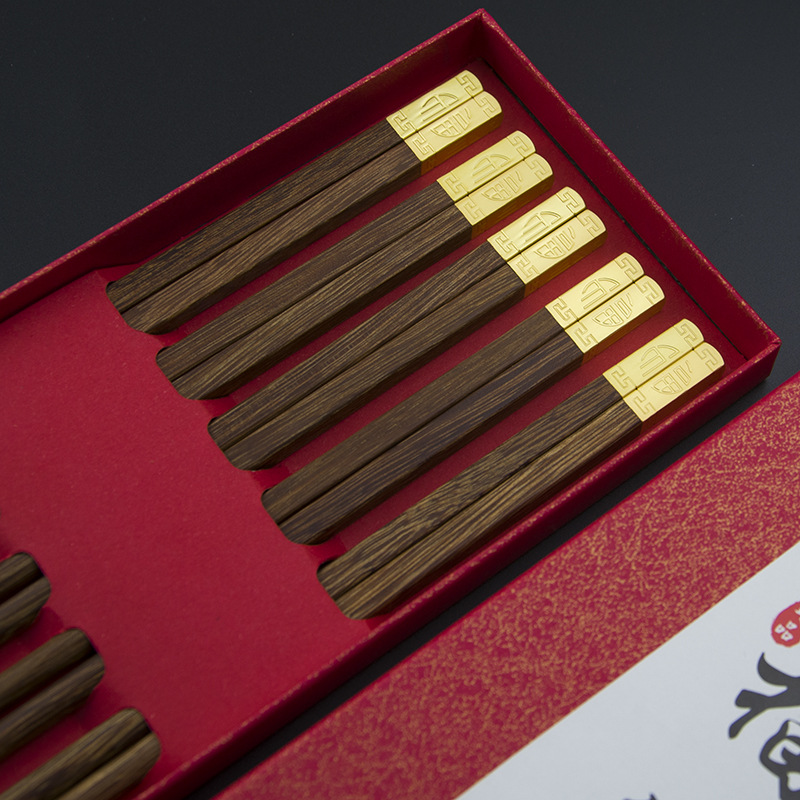 五福礼盒高档家用筷子实木鸡翅木一人一筷红木筷子家庭乔迁礼盒装