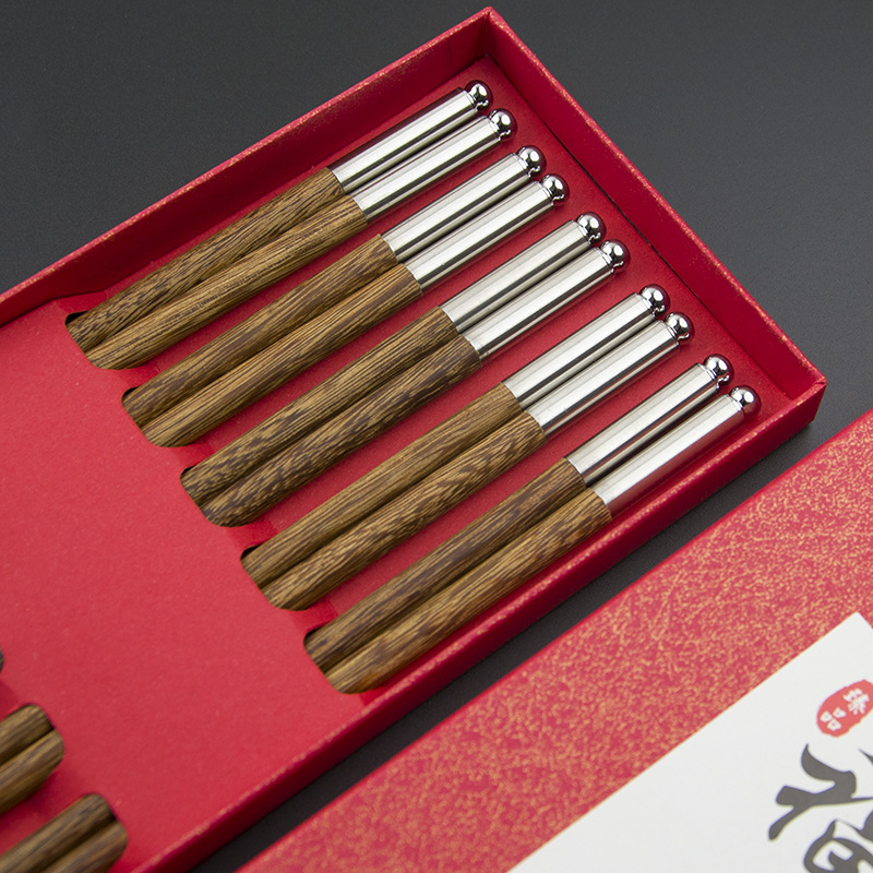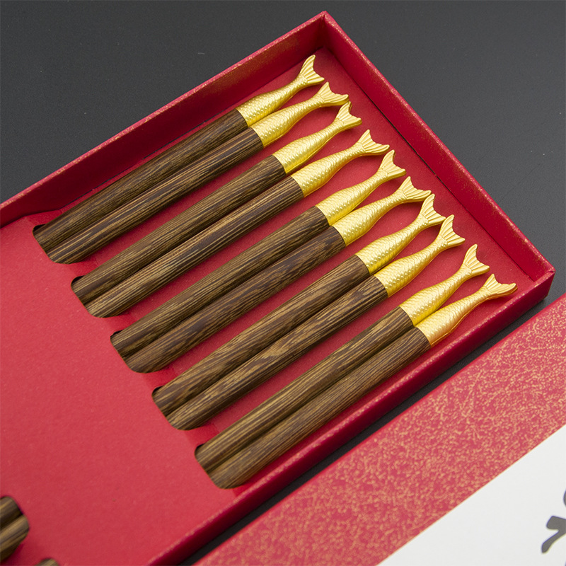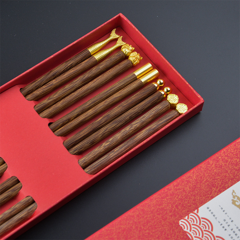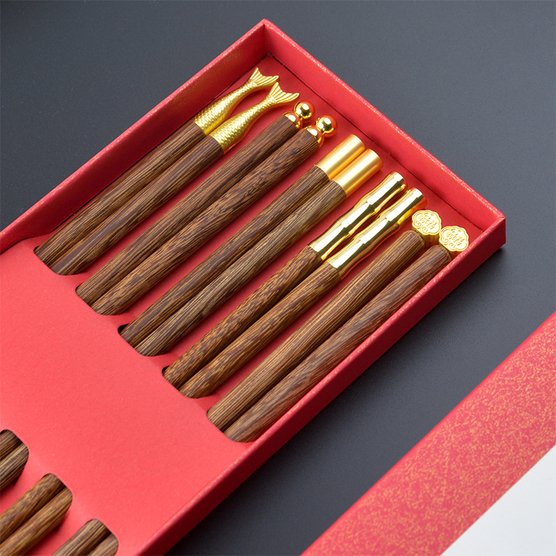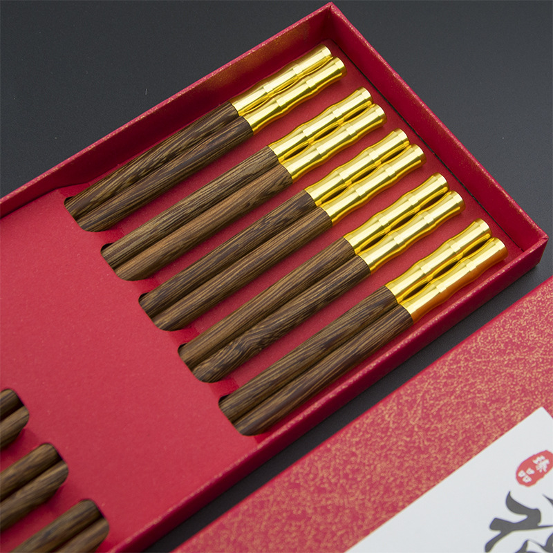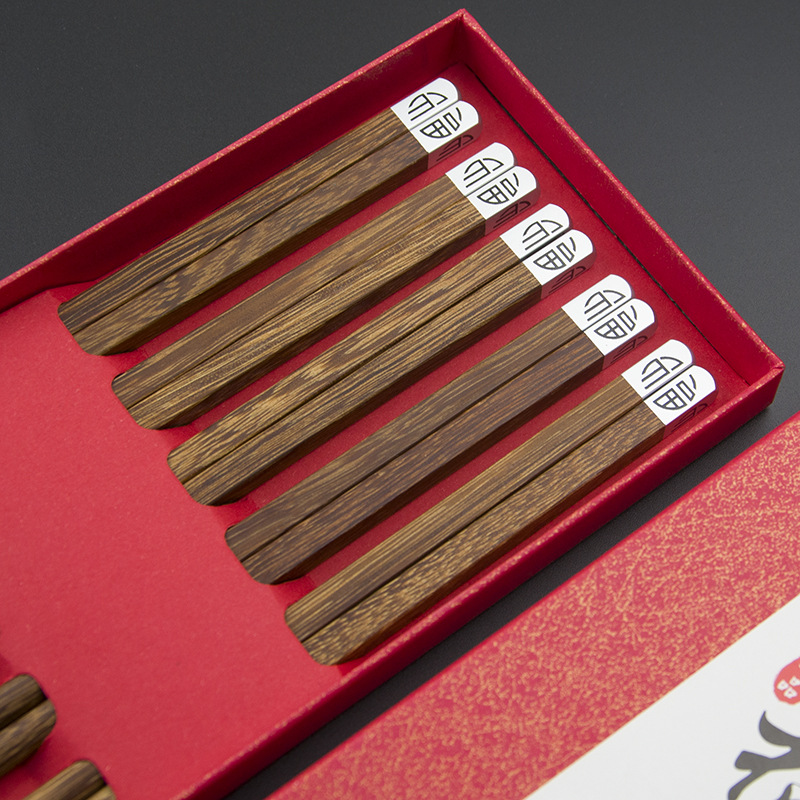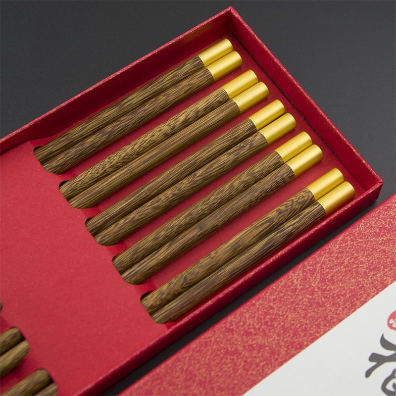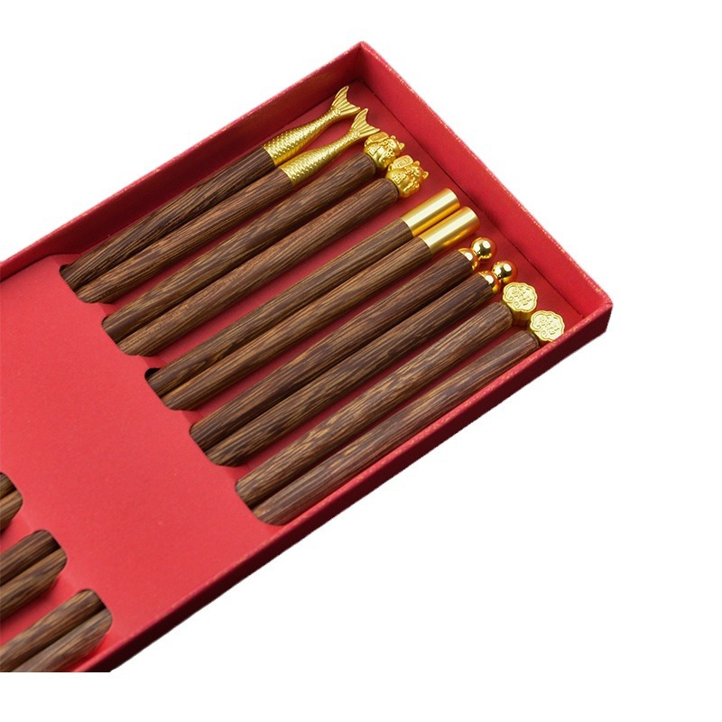 五福礼盒高档家用筷子实木鸡翅木一人一筷红木筷子家庭乔迁礼盒装