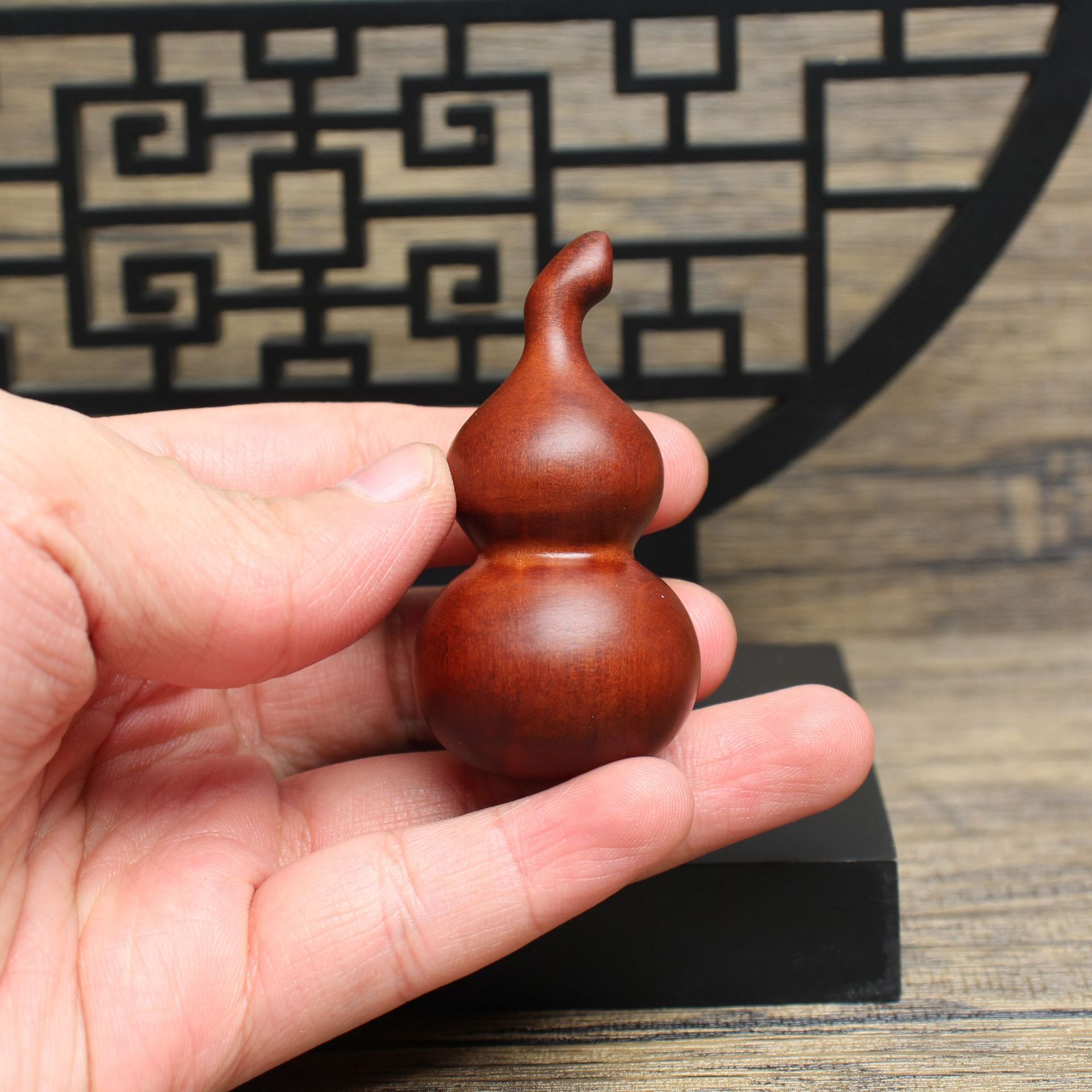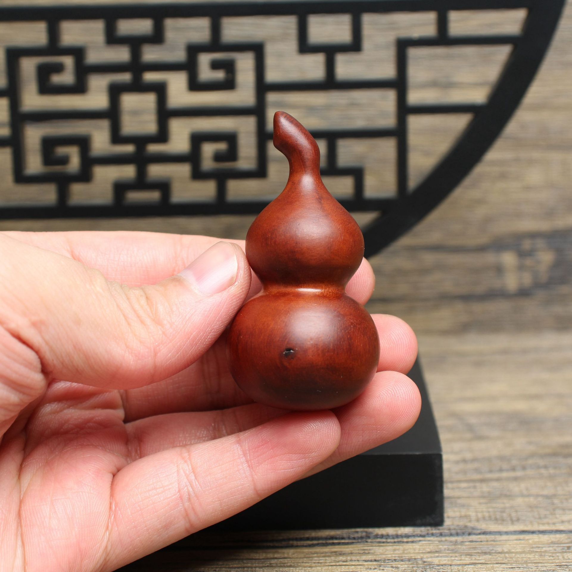 雷击枣木精工木雕葫芦手把件中国风文玩饰品福禄吊坠挂件diy配饰