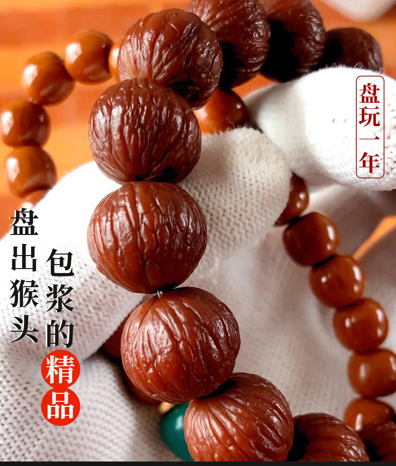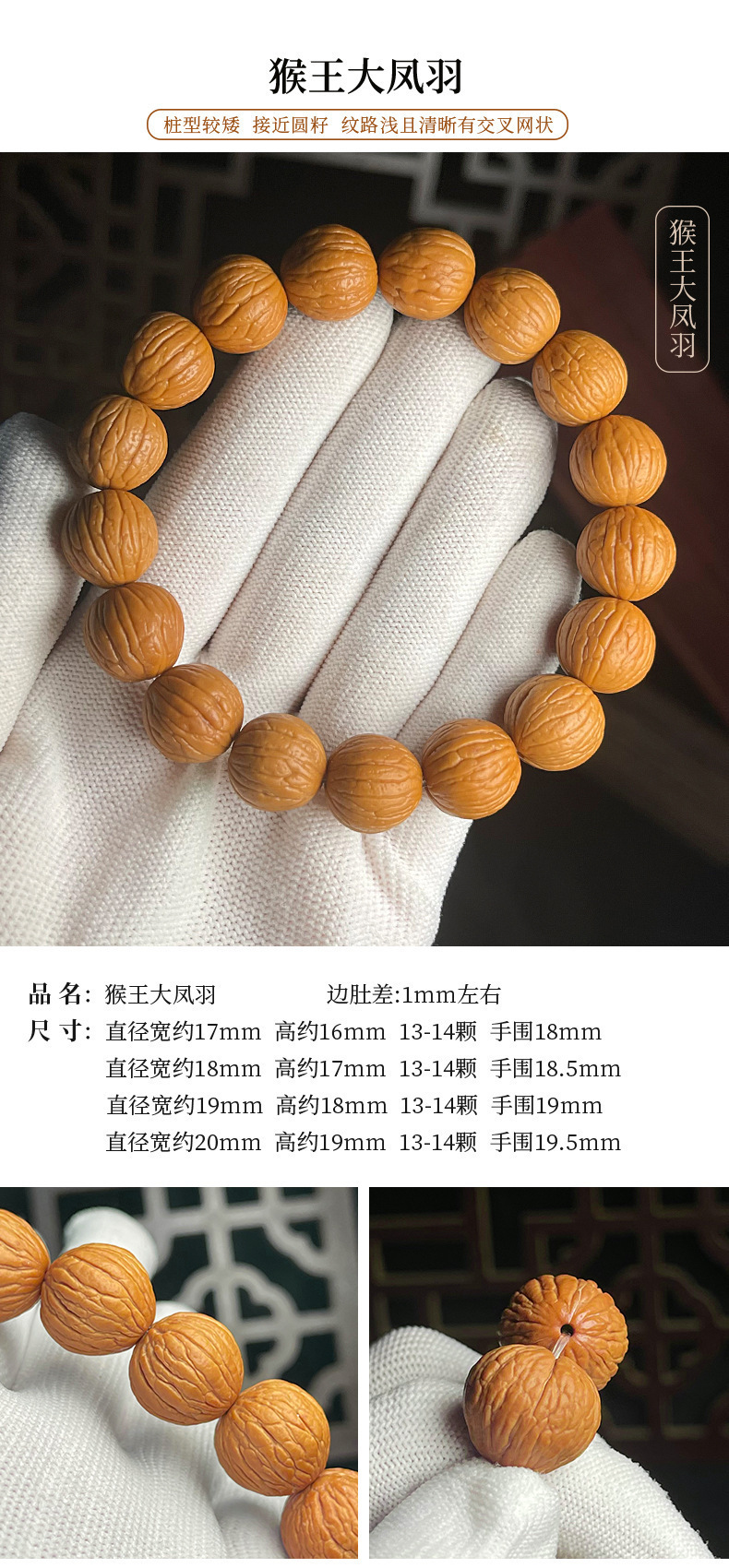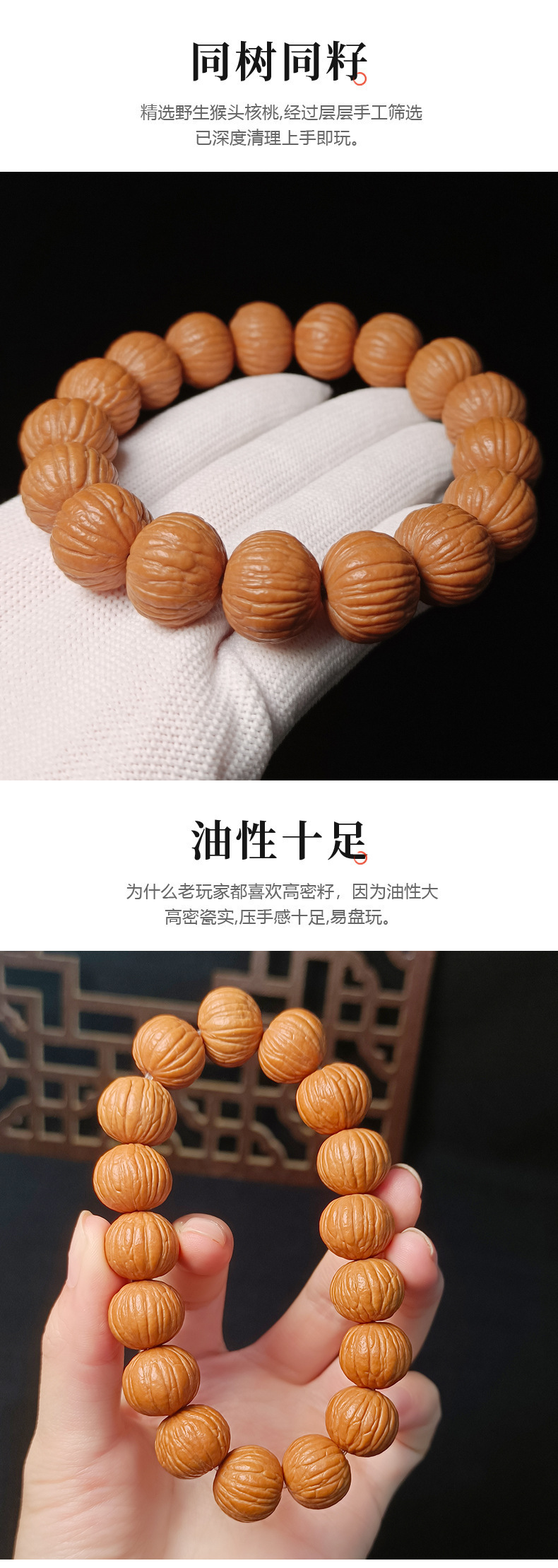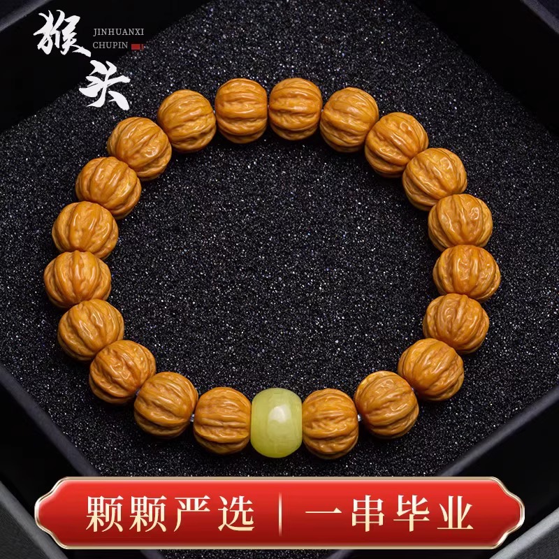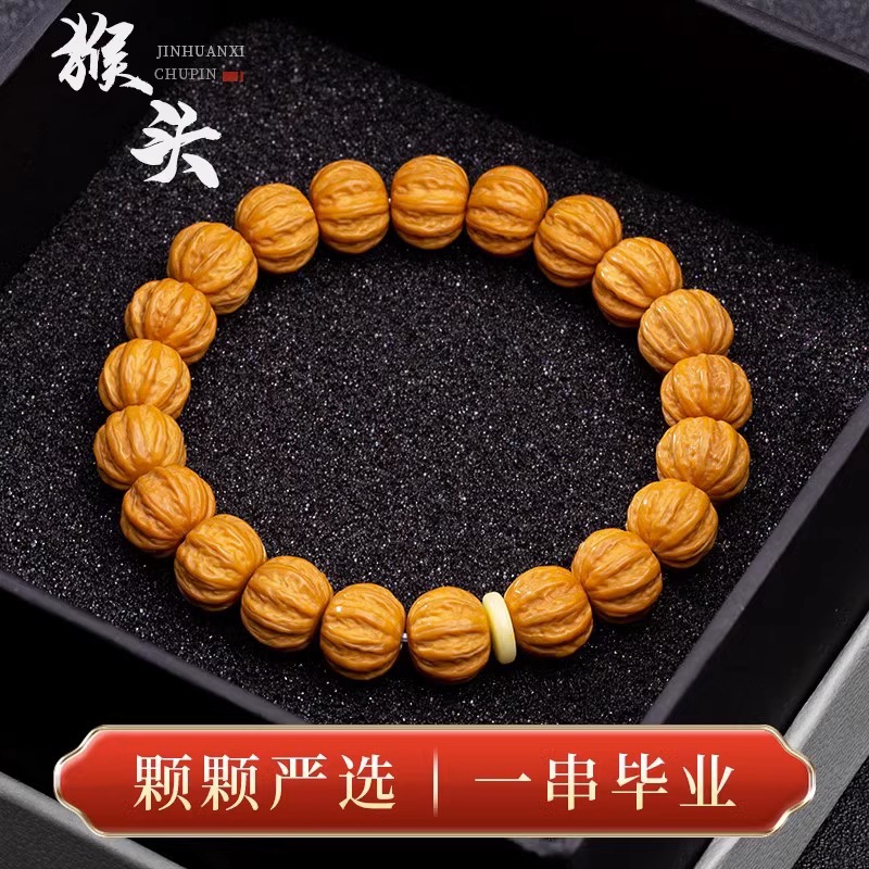 精品老型猴头小核桃手串凤羽鲨鱼背京八棱猴头文玩佛珠手链男批发