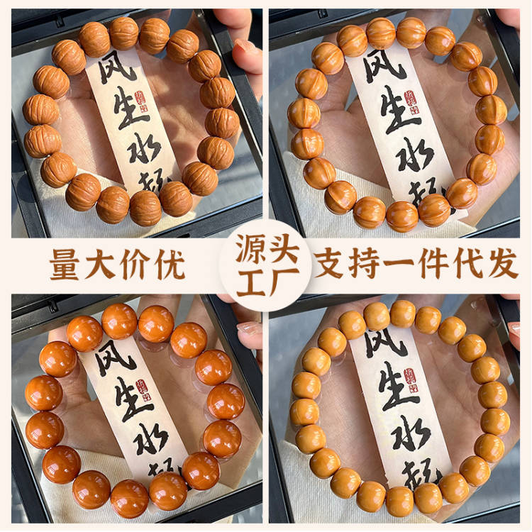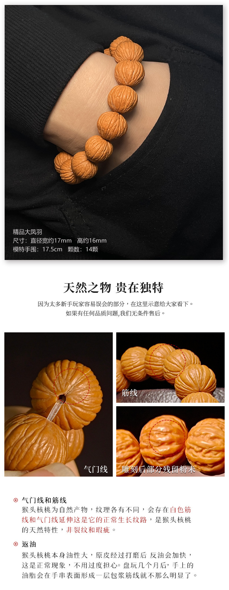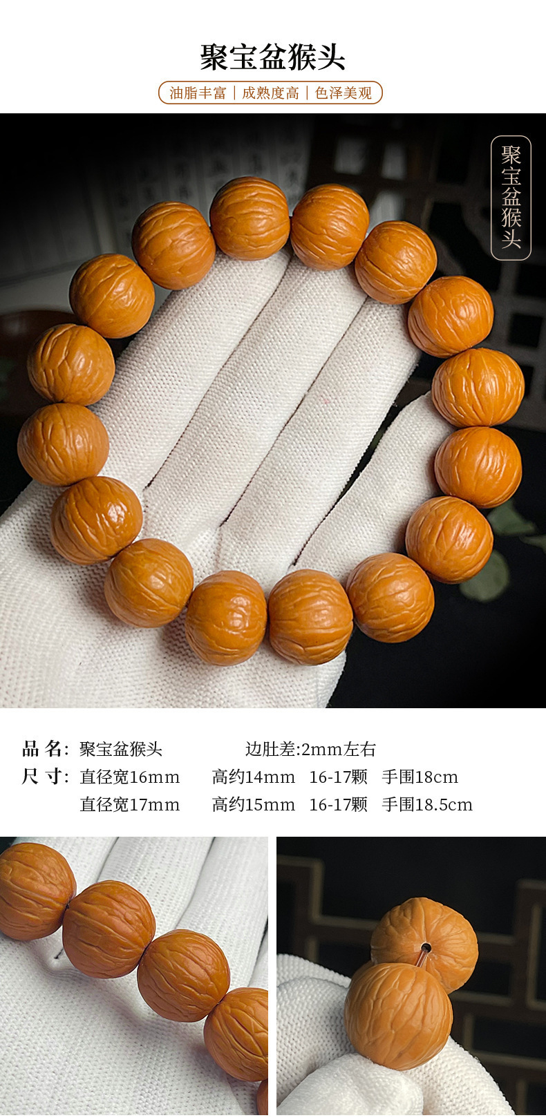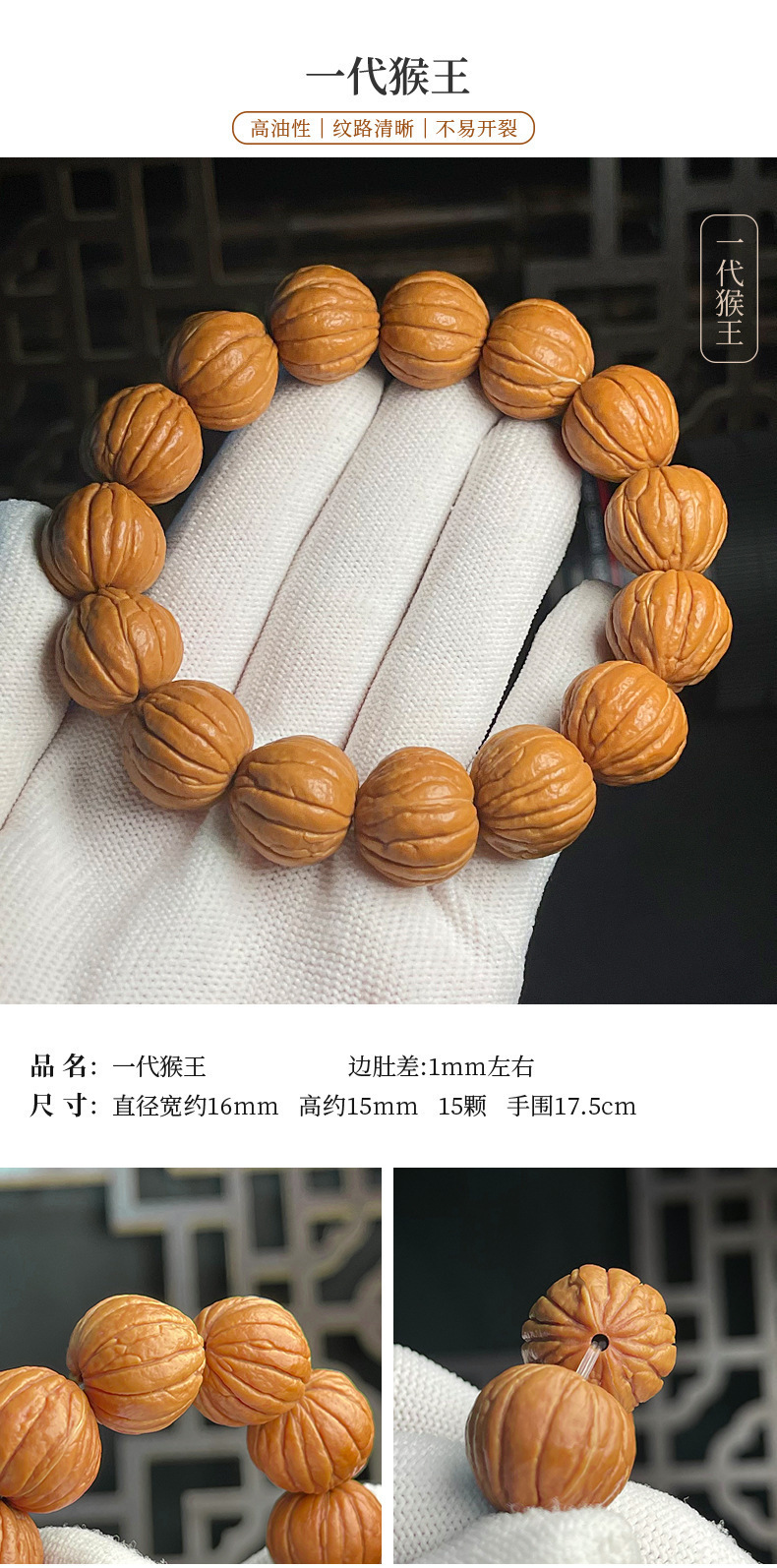精品老型猴头小核桃手串凤羽鲨鱼背京八棱猴头文玩佛珠手链男批发
