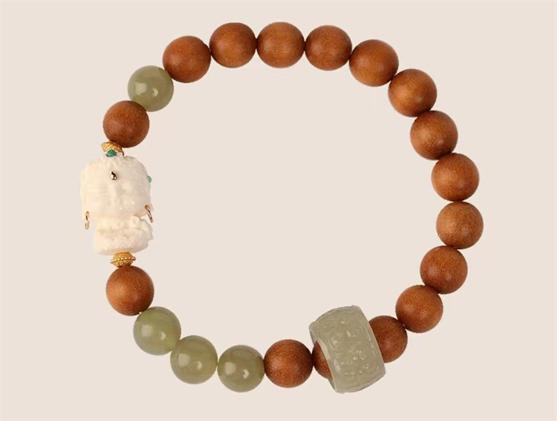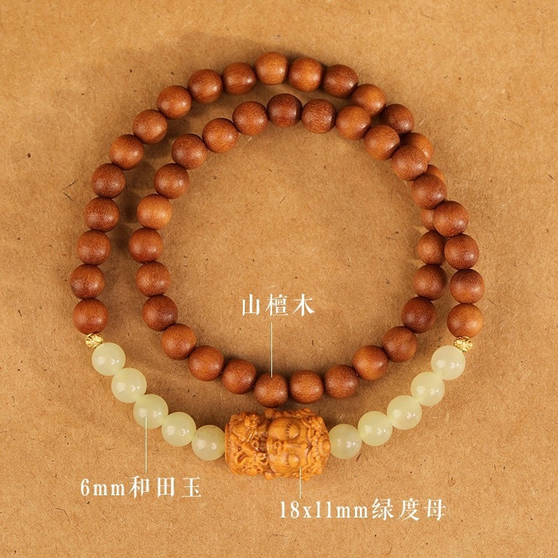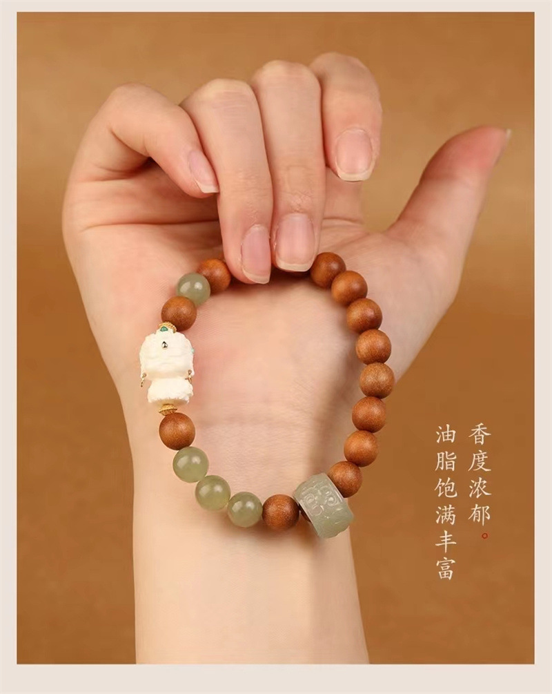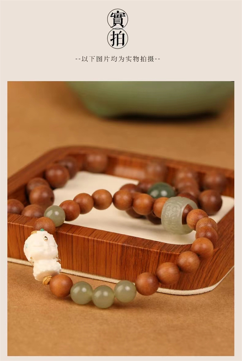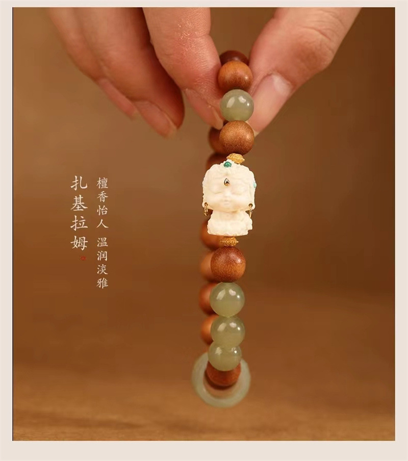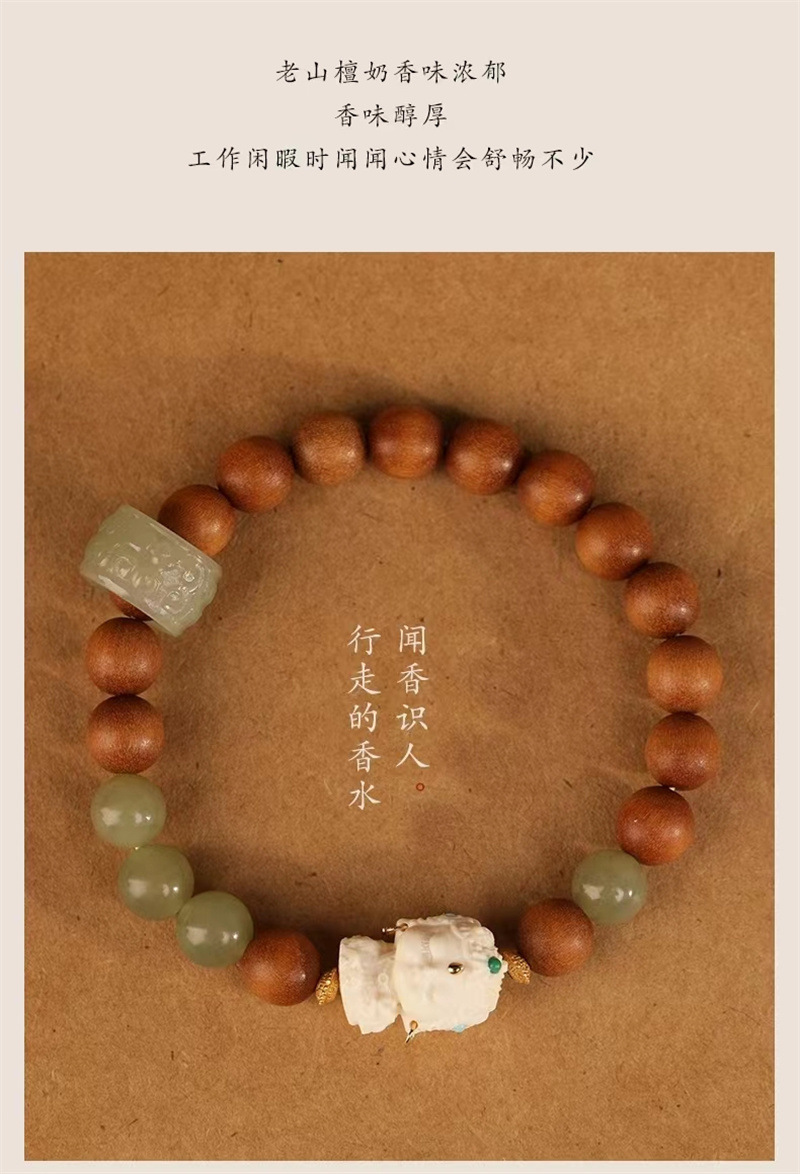 高档猛犸象牙度母天然和田玉手串女款清香老山檀香木手链文玩念珠
