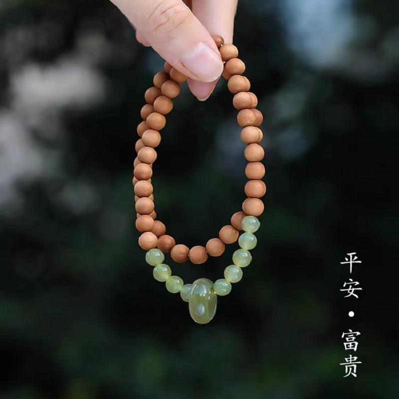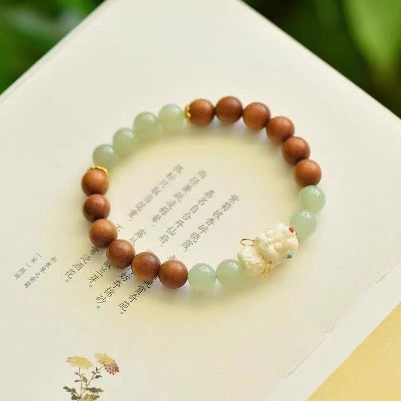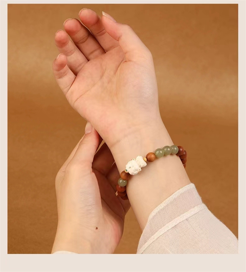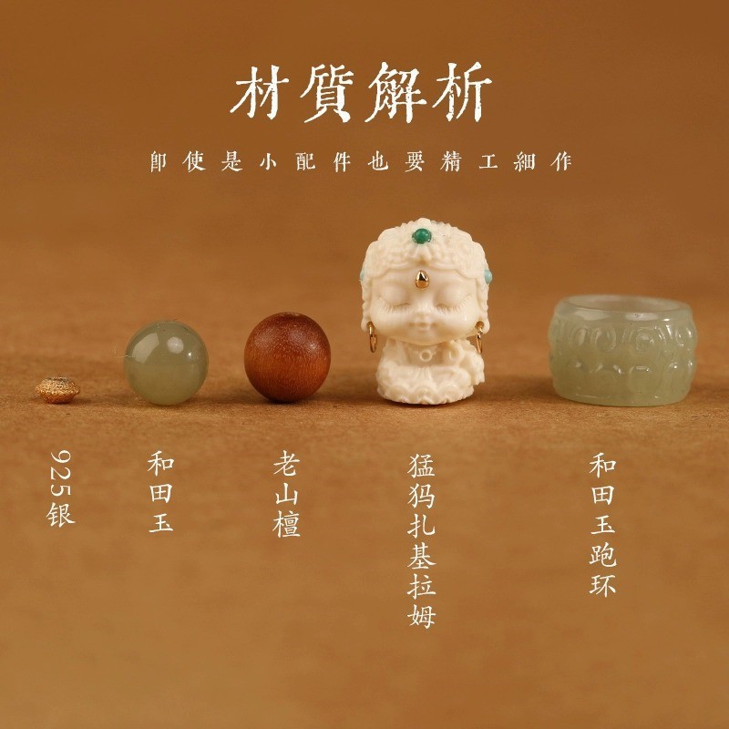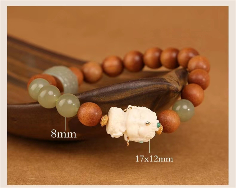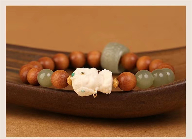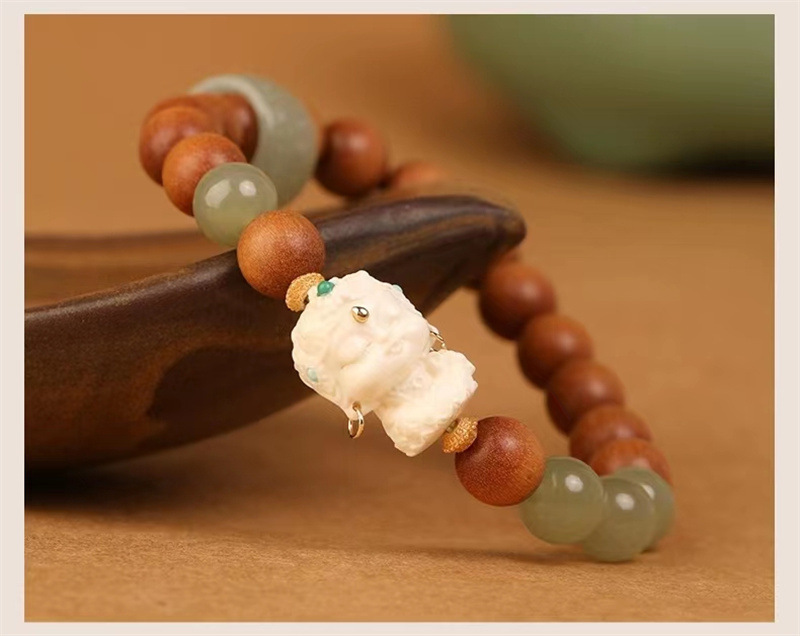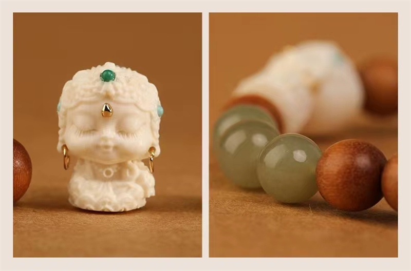 高档猛犸象牙度母天然和田玉手串女款清香老山檀香木手链文玩念珠