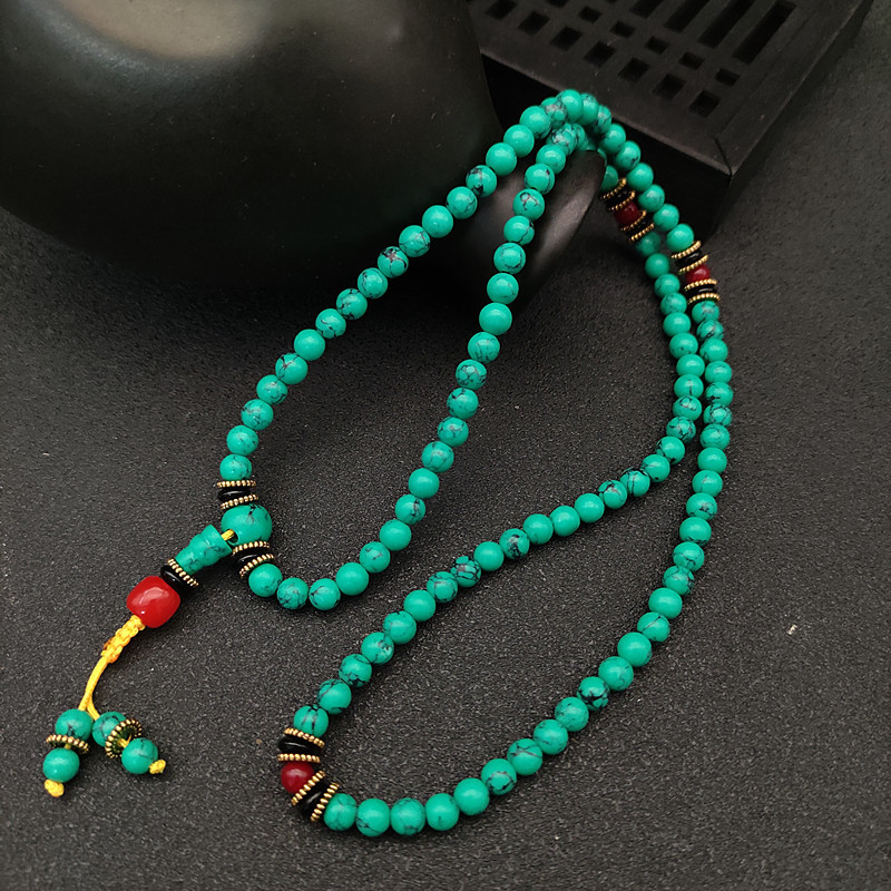 民族风绿松石佛珠手串藏式优化绿松石108颗佛珠手链男女饰品批发