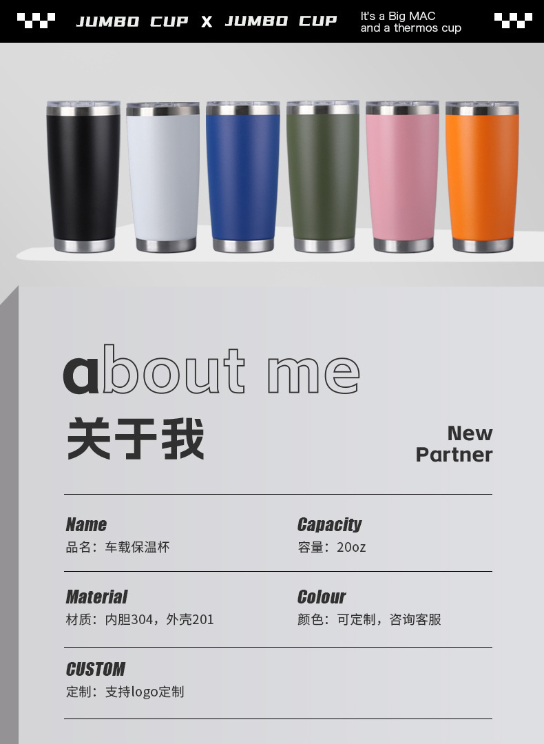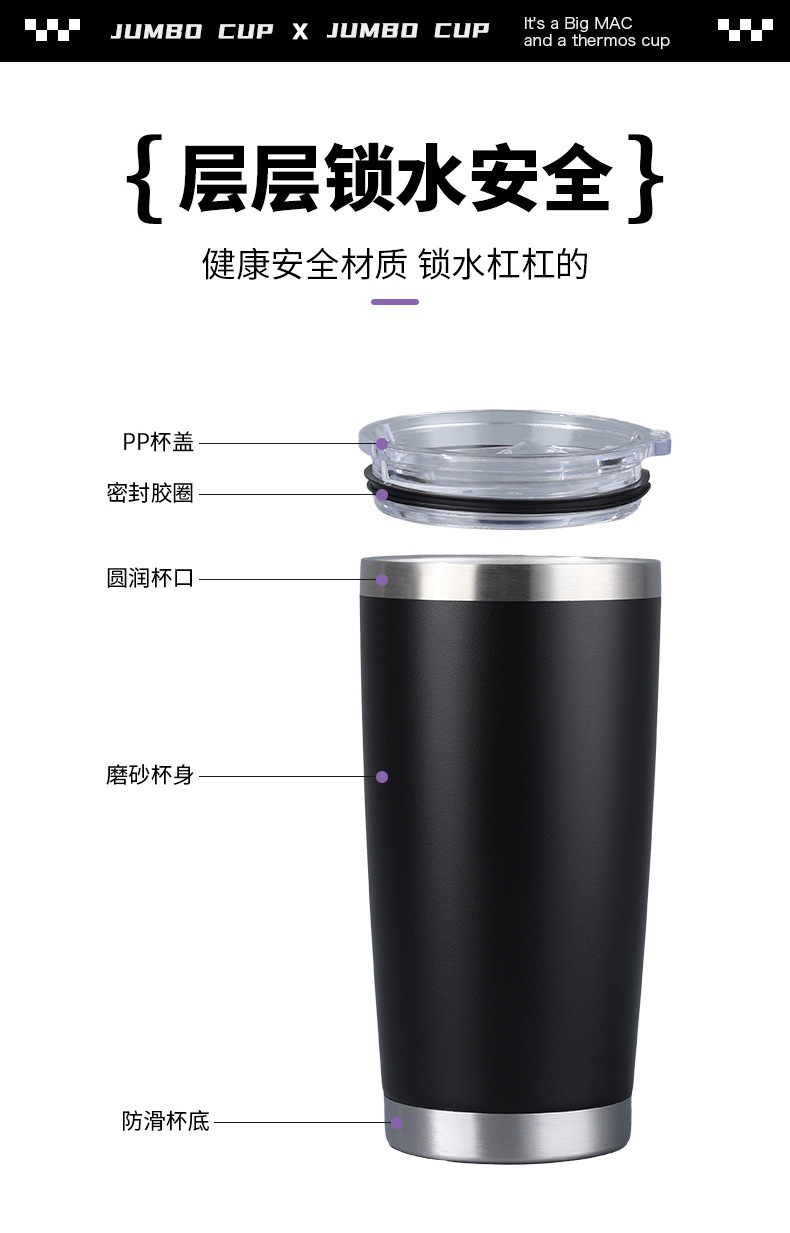 跨境20oz汽车杯304不锈钢双层真空保温保冷杯车载喷塑啤酒冰霸杯
