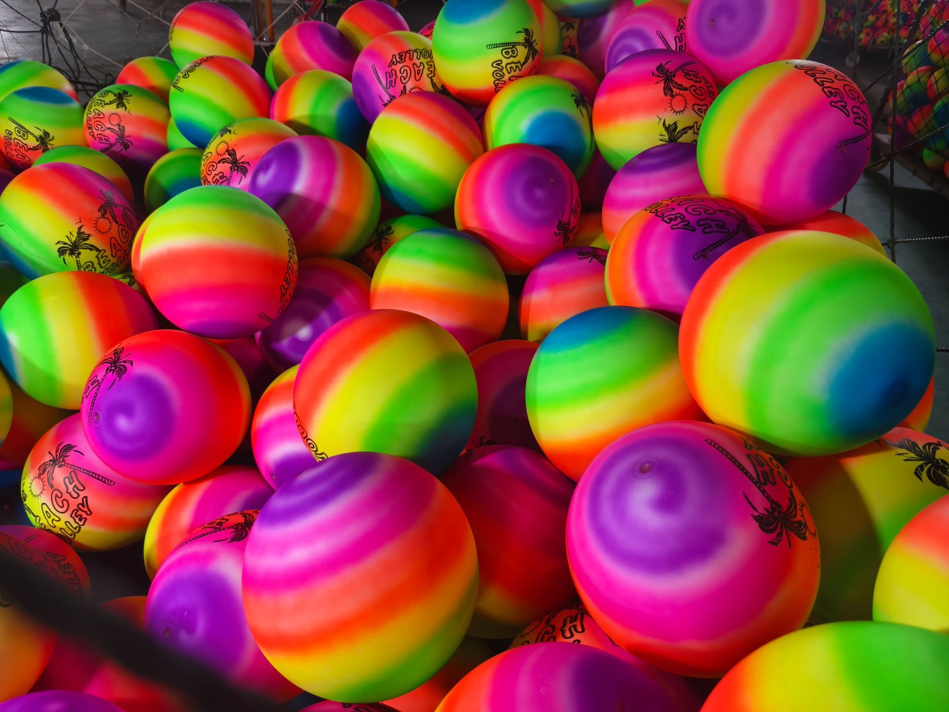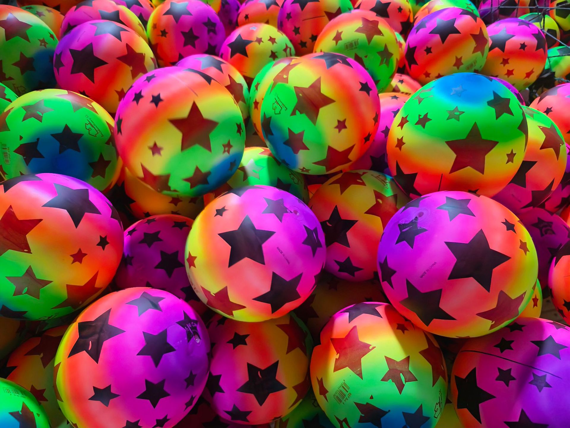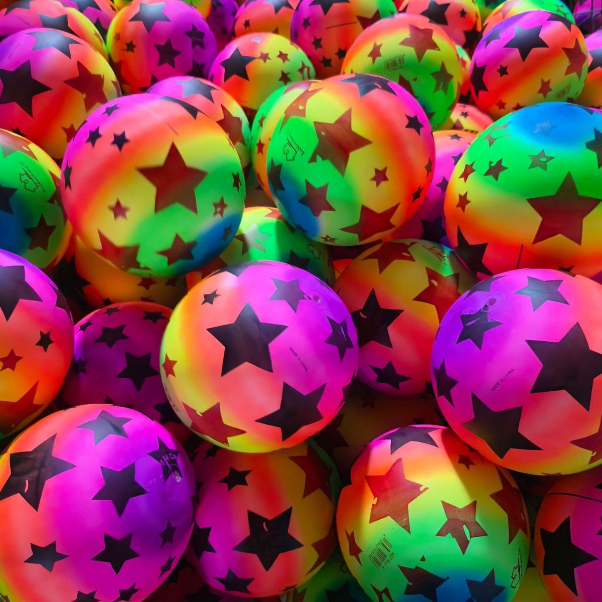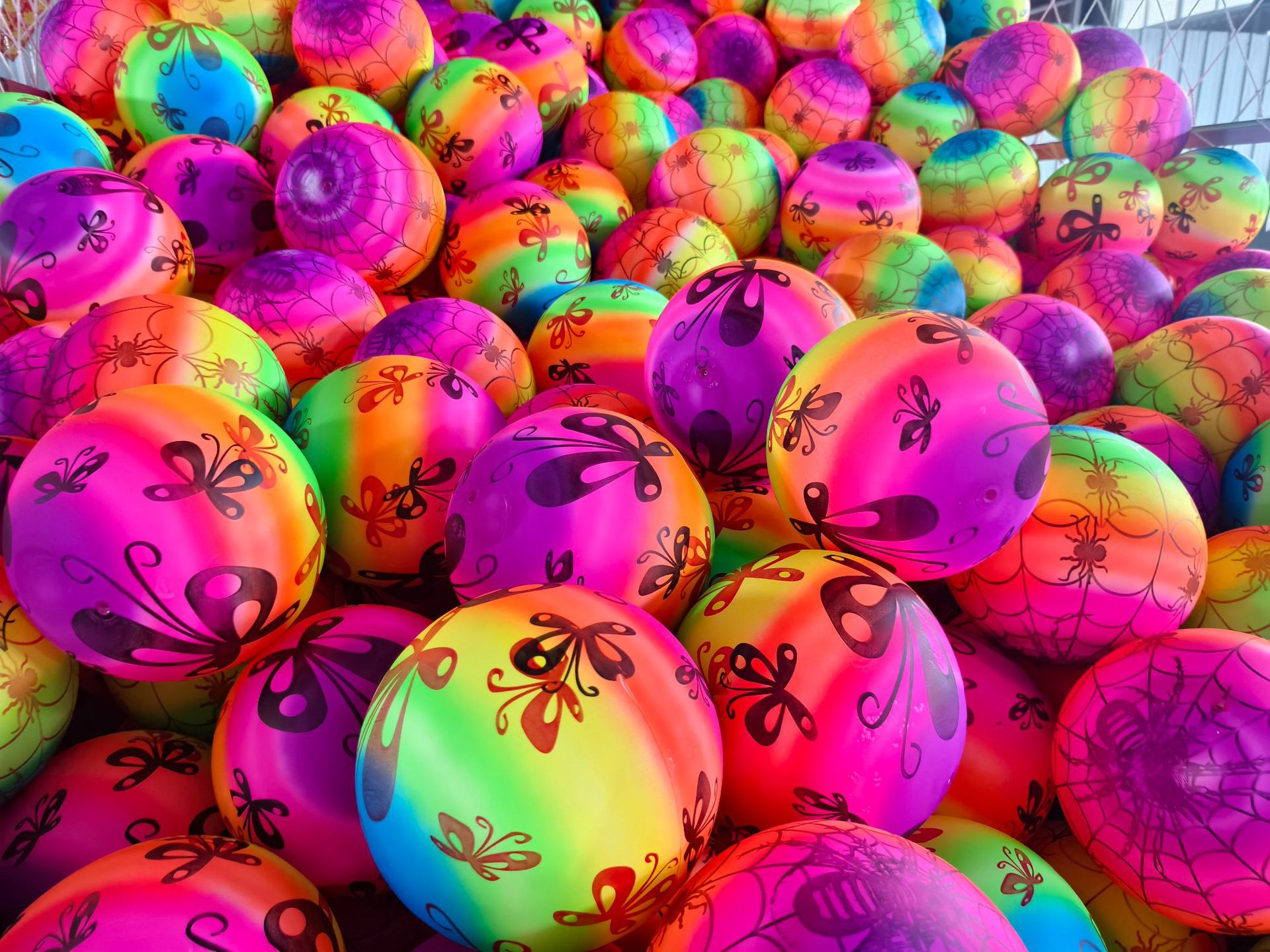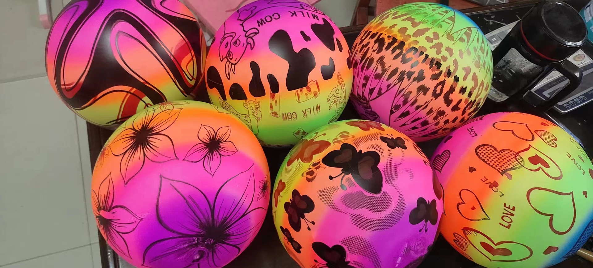 厂家直销儿童玩具彩色印花球沙滩充气拍拍皮球PVC彩虹图案8.5英寸