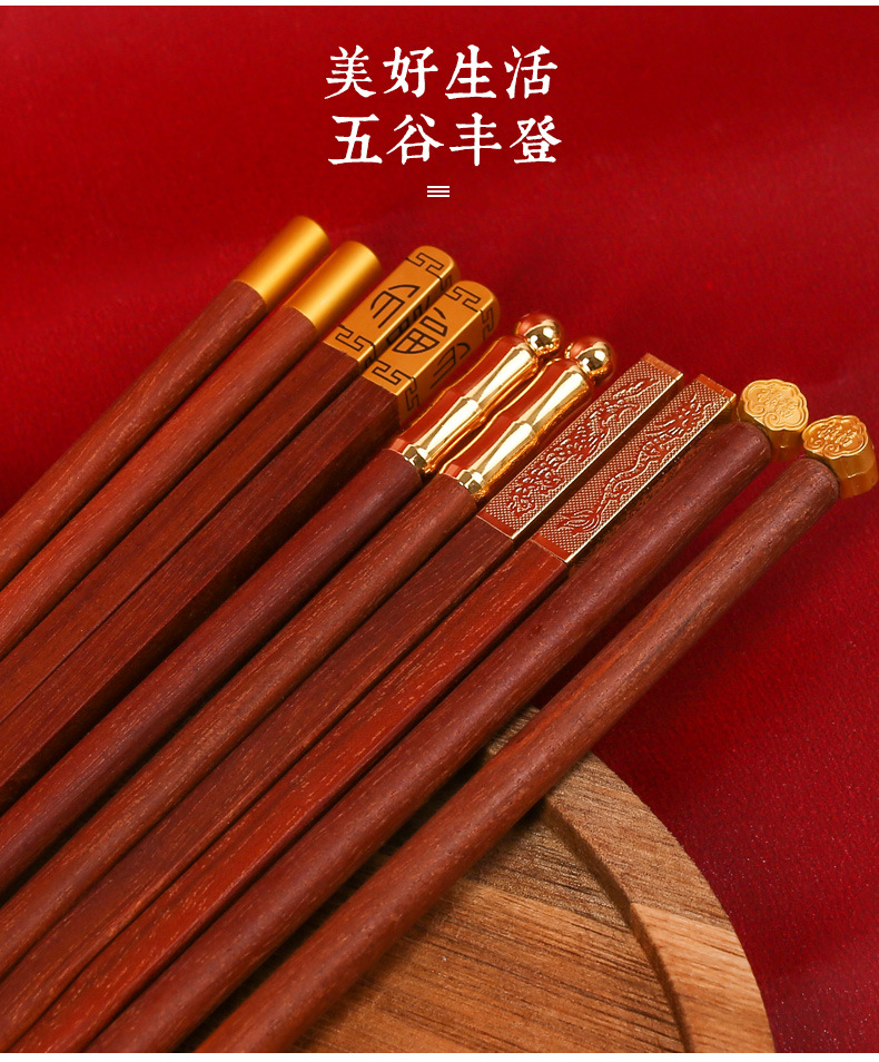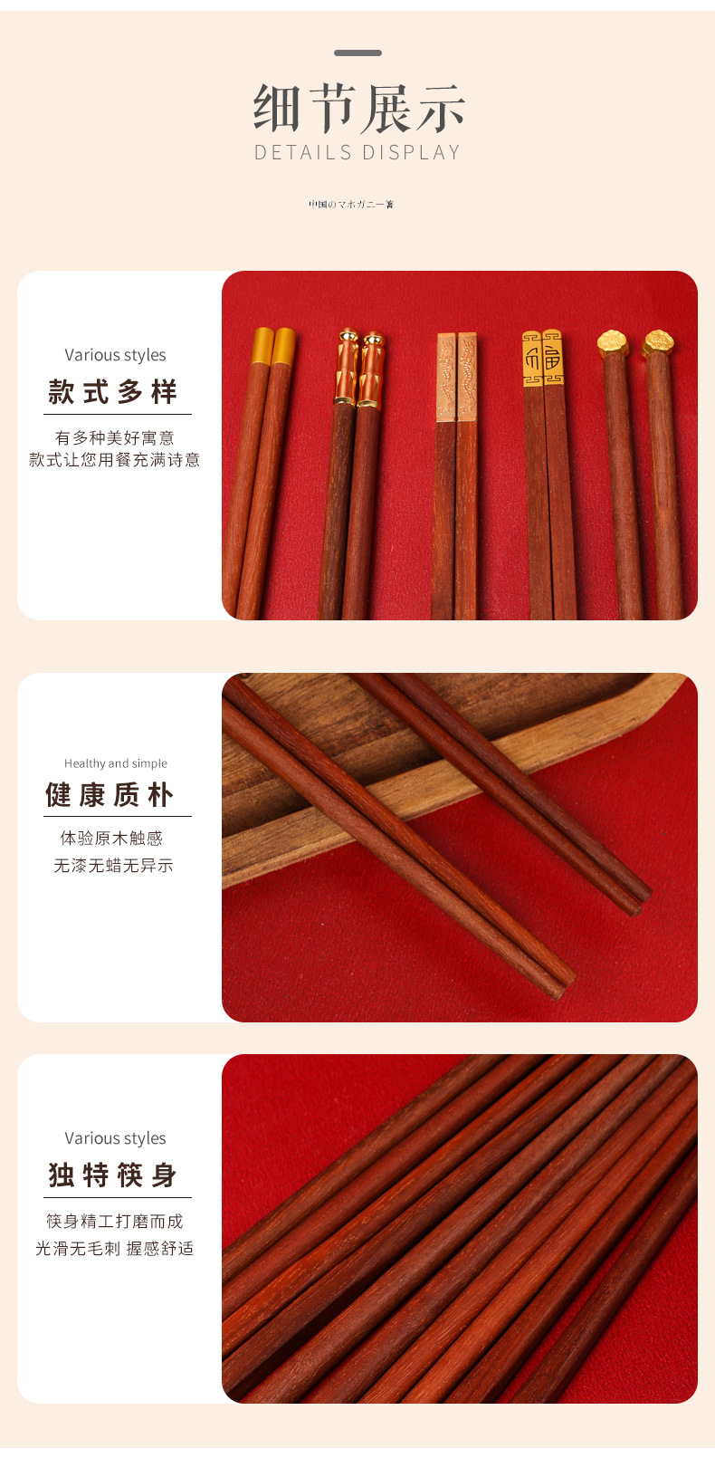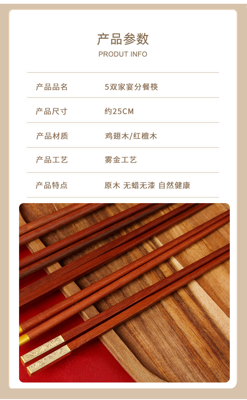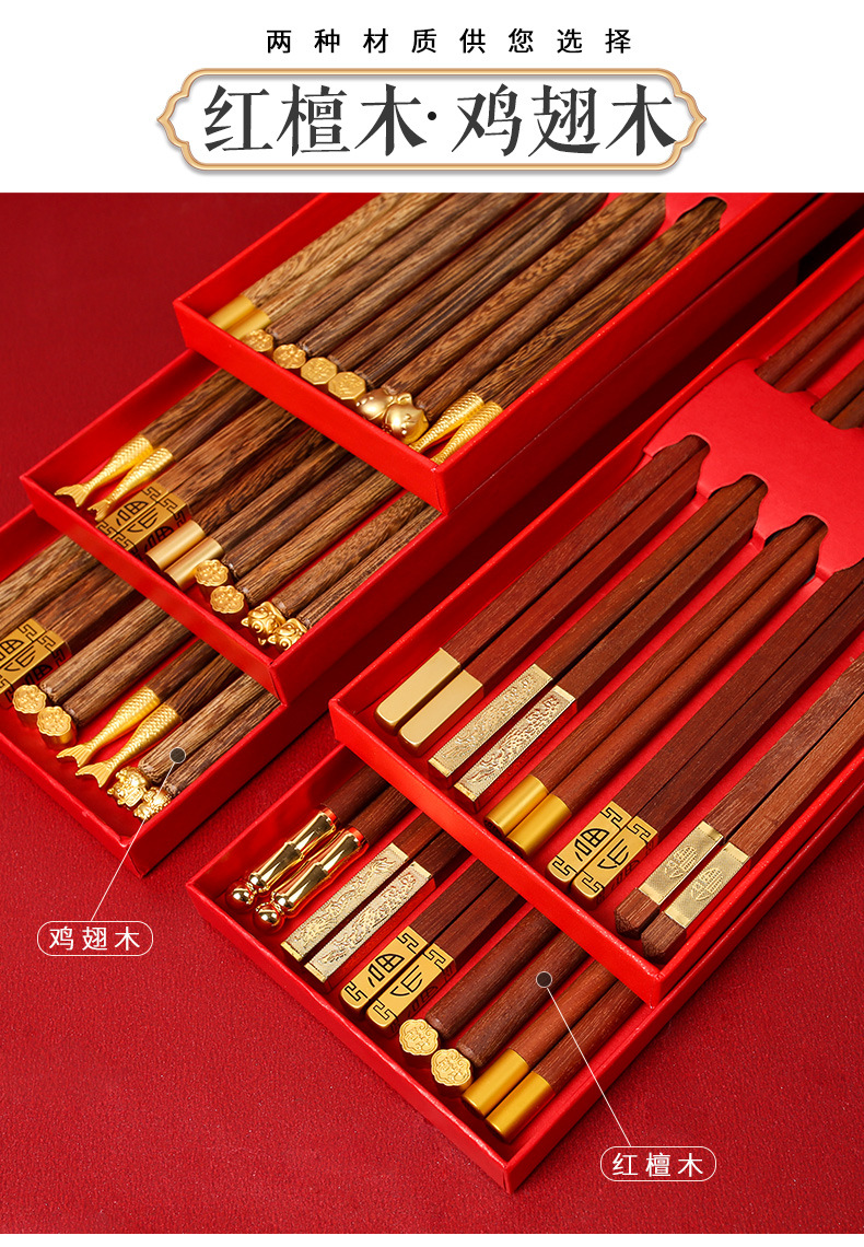 实木筷子家用鸡翅木红檀木国潮筷子礼品套装一人一筷5双盒装批发