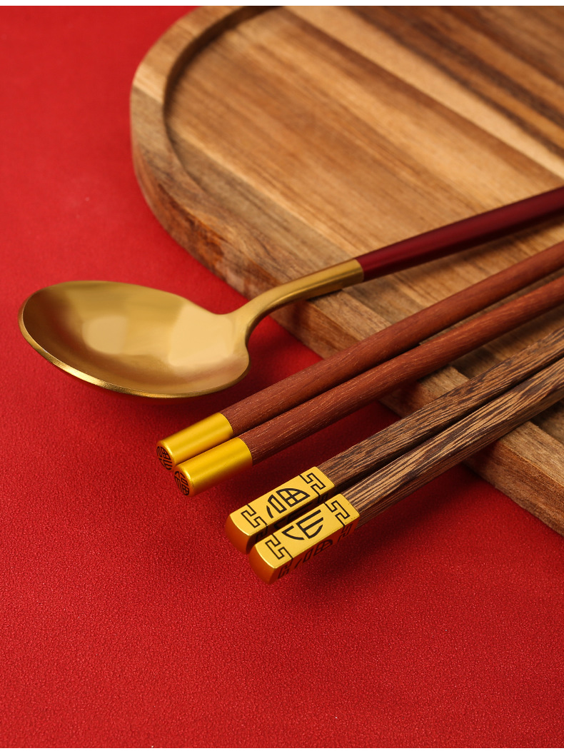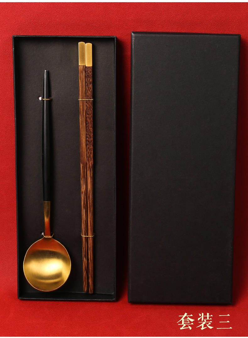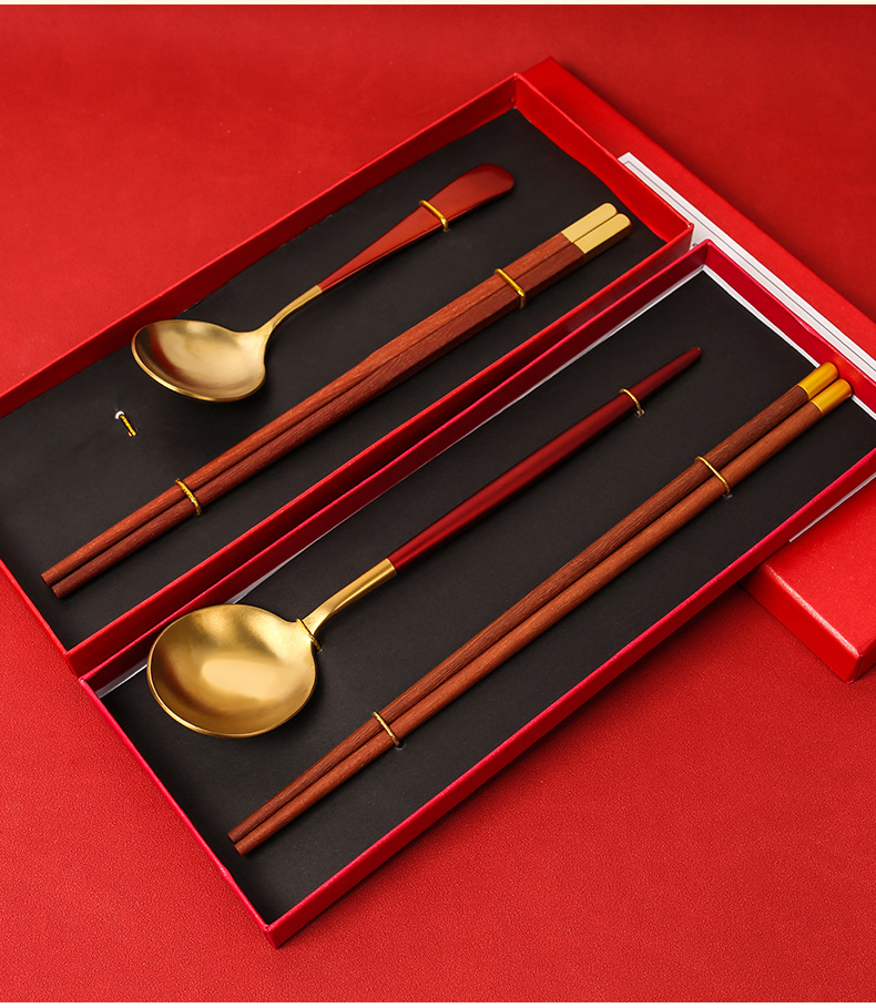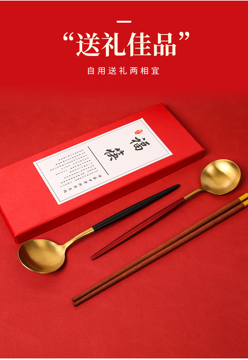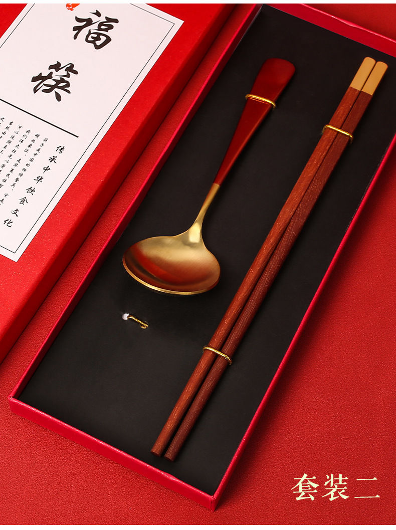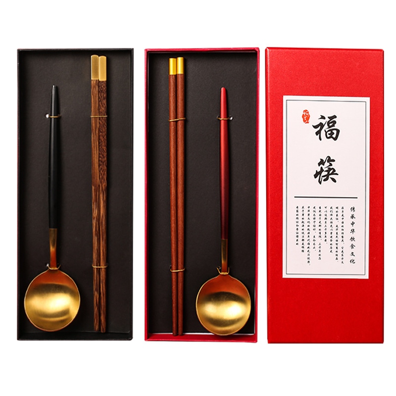 现货创意礼品套装公筷公勺批发一筷一勺套装便携餐具木筷不锈钢勺
