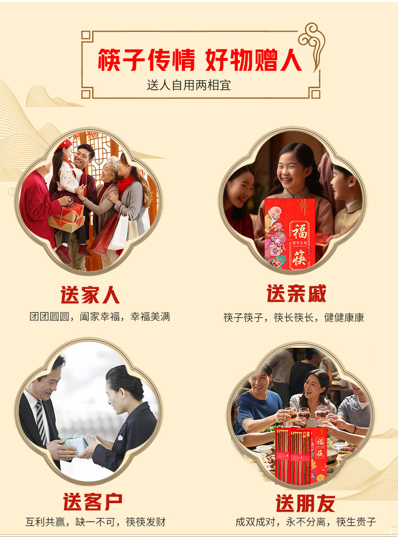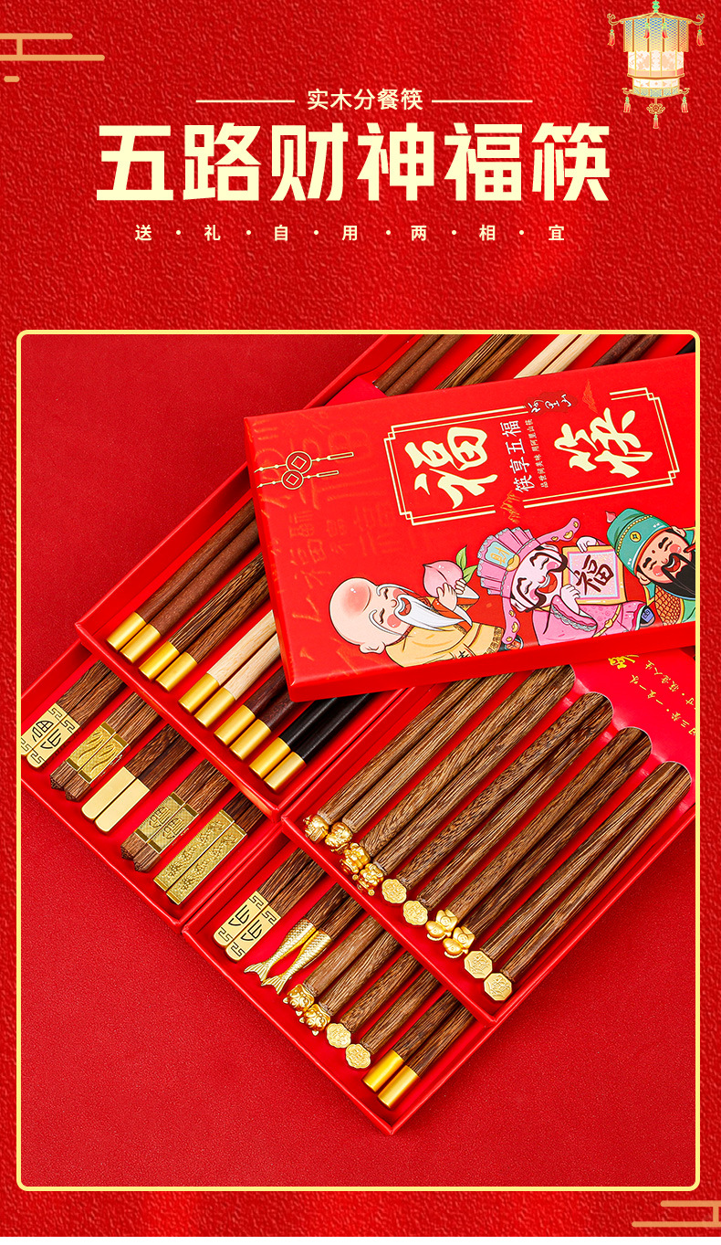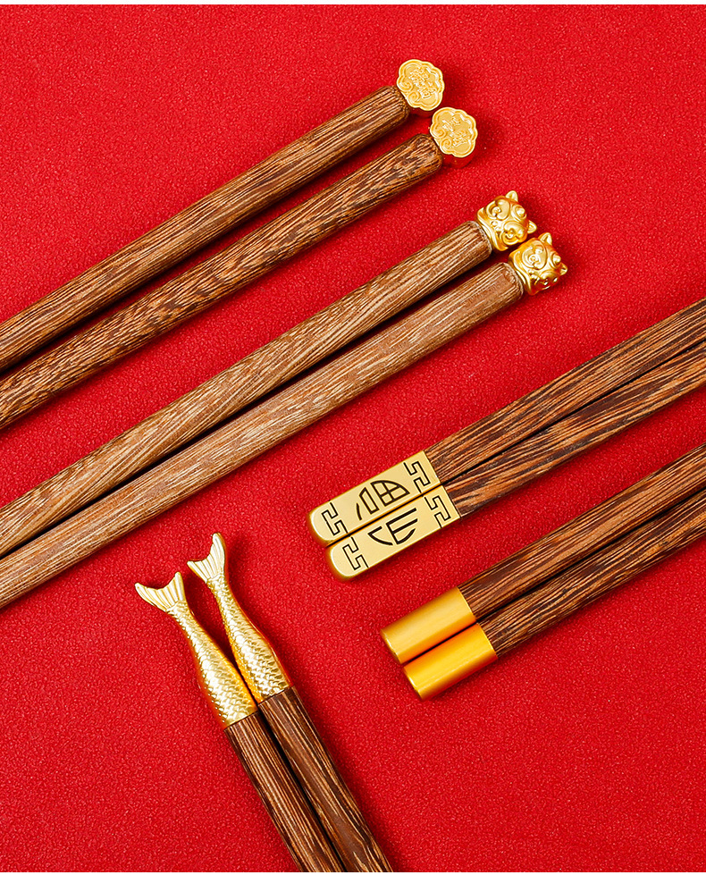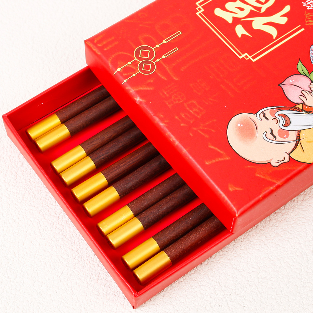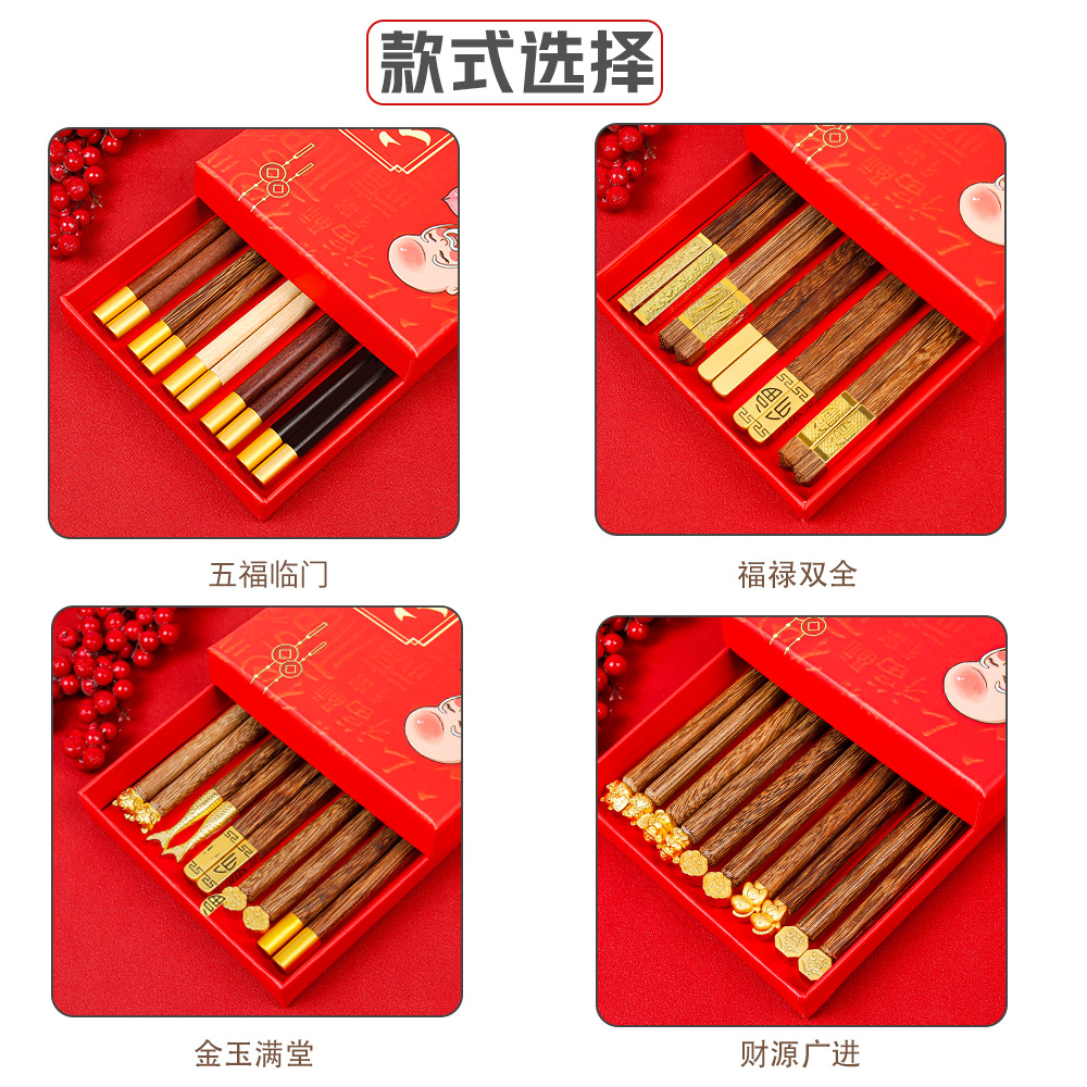 家用鸡翅木筷子防滑无漆无蜡金属头实木筷子福字盒子礼品套装批发