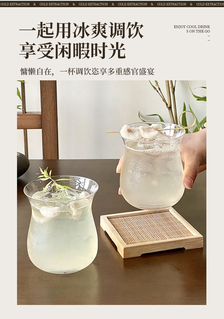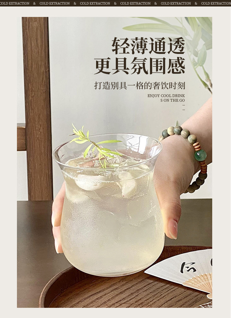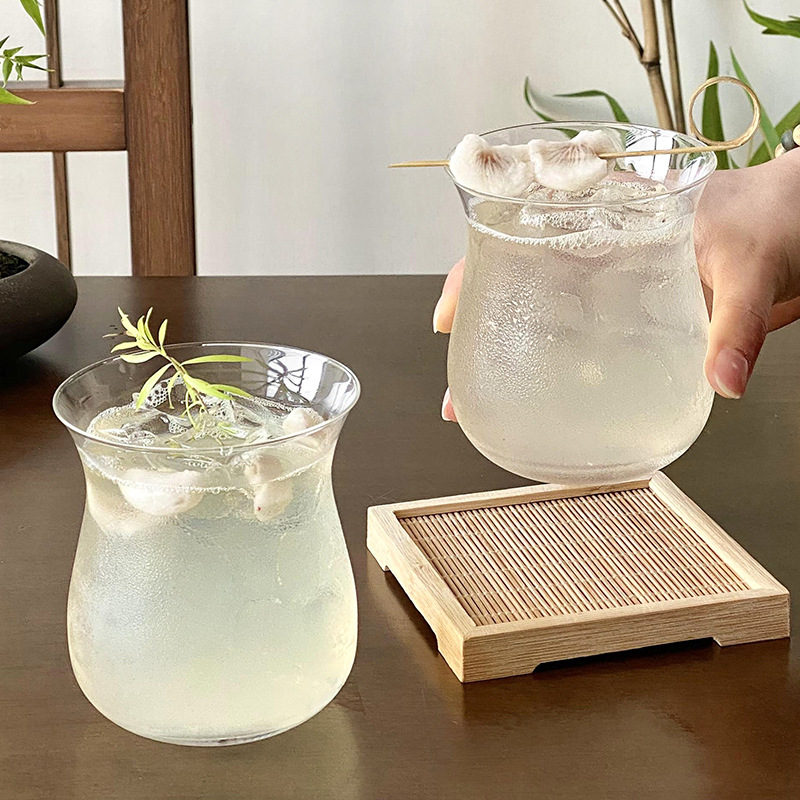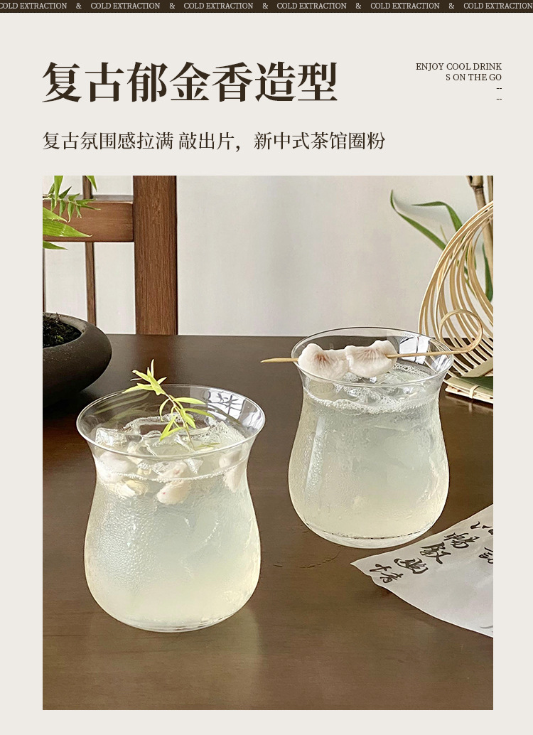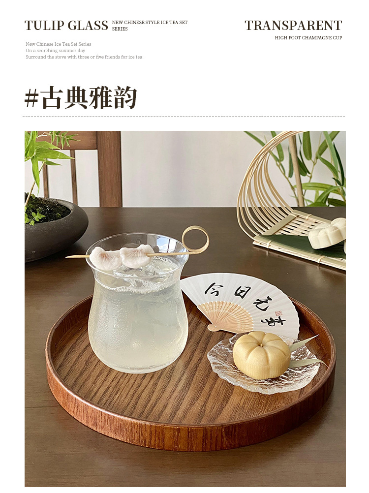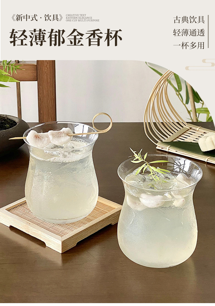新中式大肚咖啡杯郁金香玻璃杯超薄水晶杯设计感杯子国风冷饮茶杯