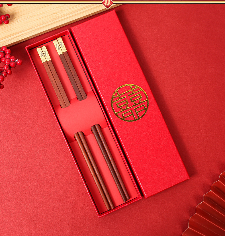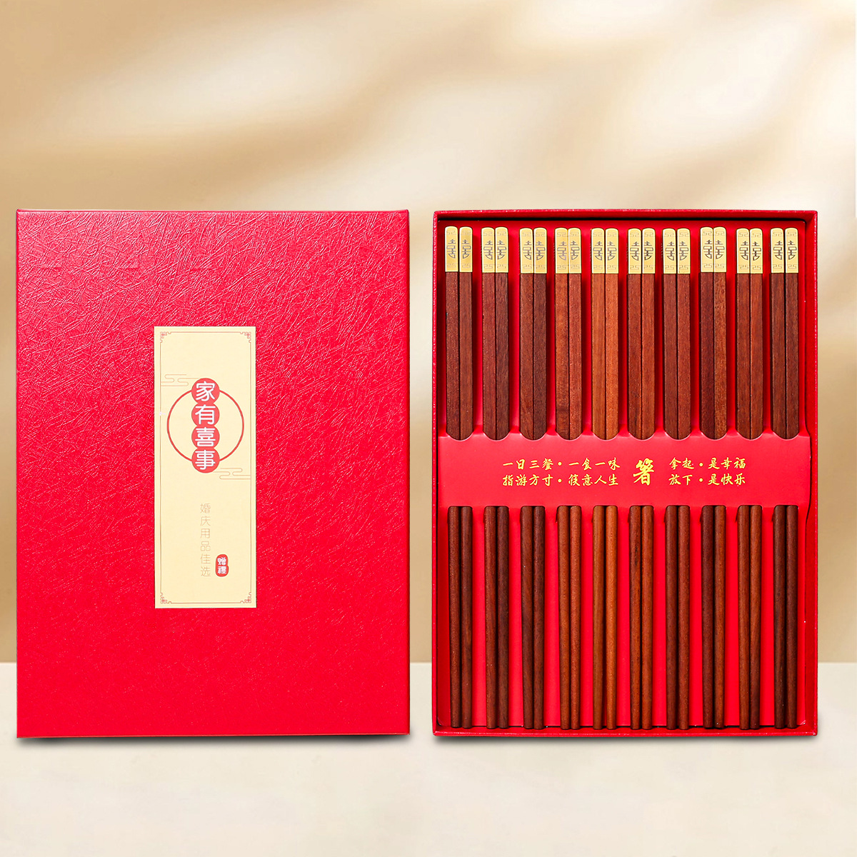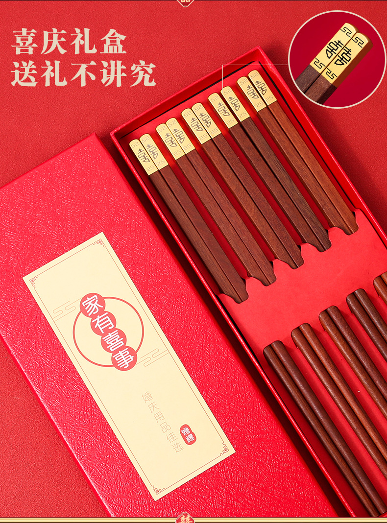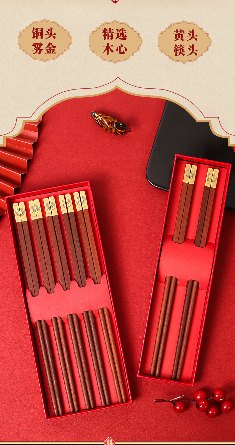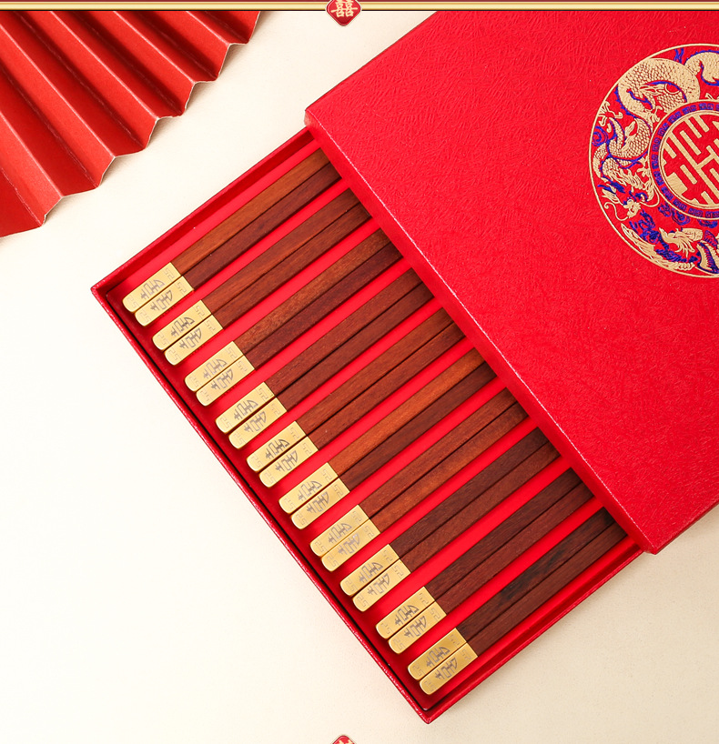 红檀木筷子喜筷批发铜头双面喜结婚喜庆筷子礼盒装婚庆伴手礼现货