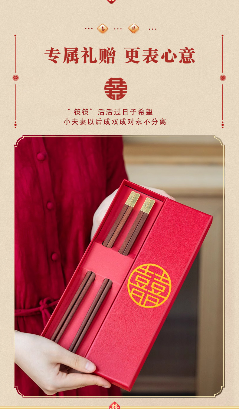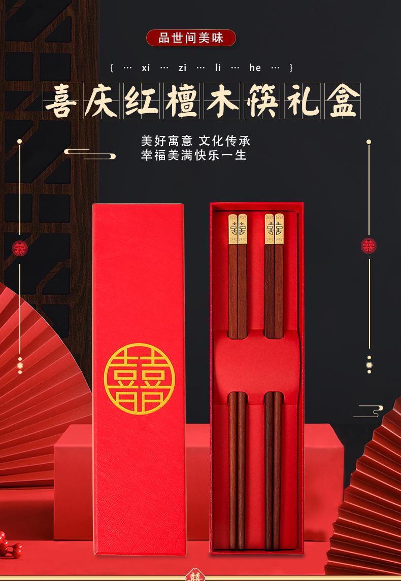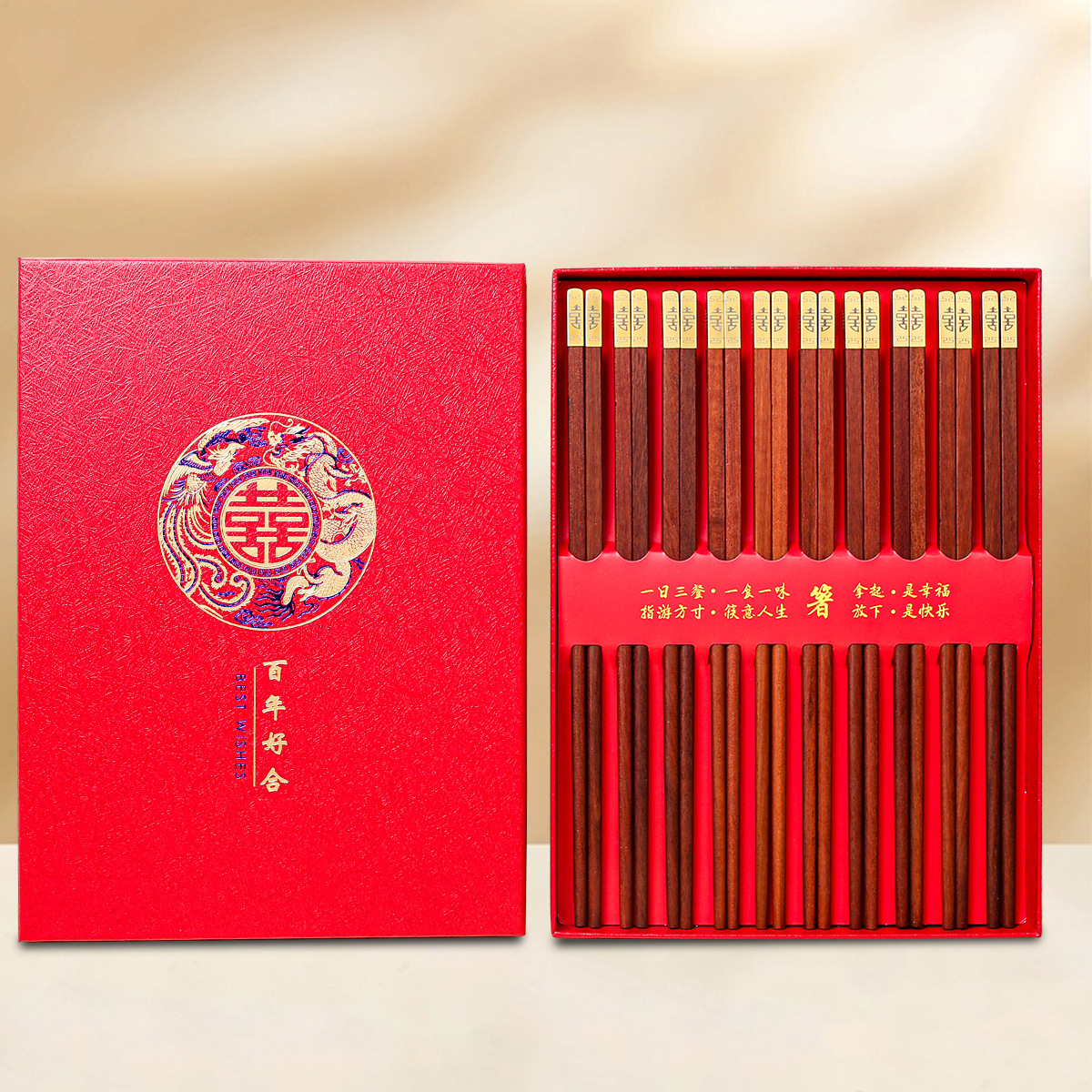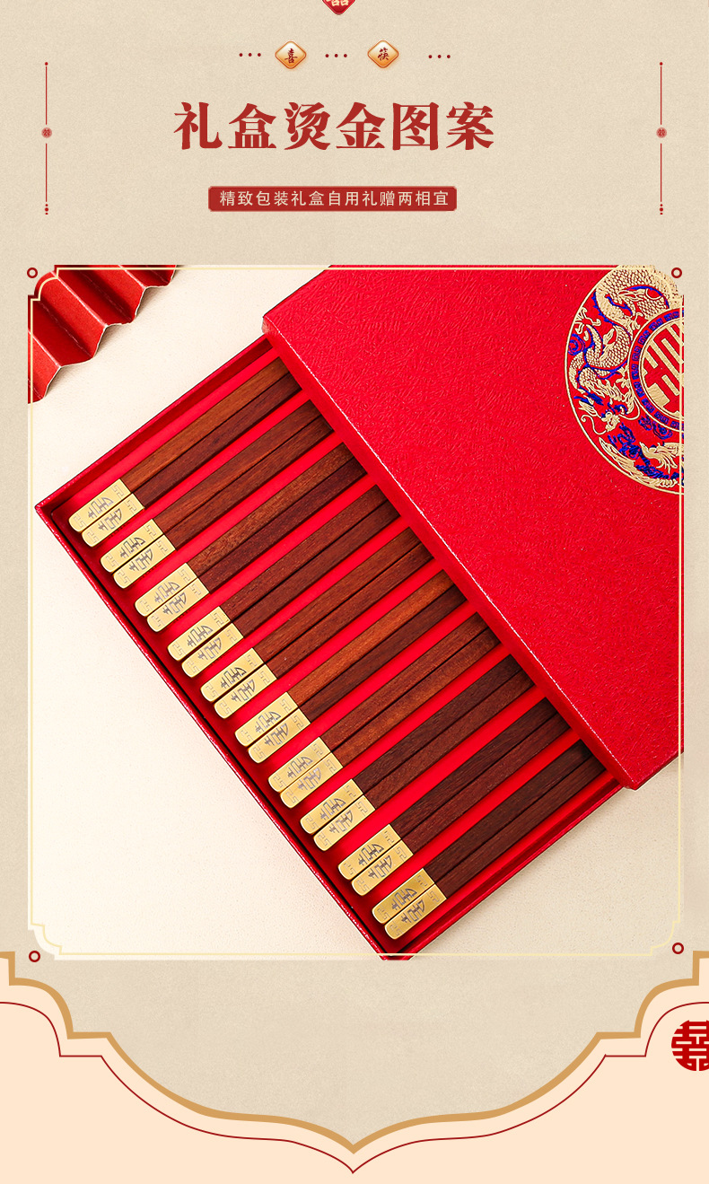 红檀木筷子喜筷批发铜头双面喜结婚喜庆筷子礼盒装婚庆伴手礼现货