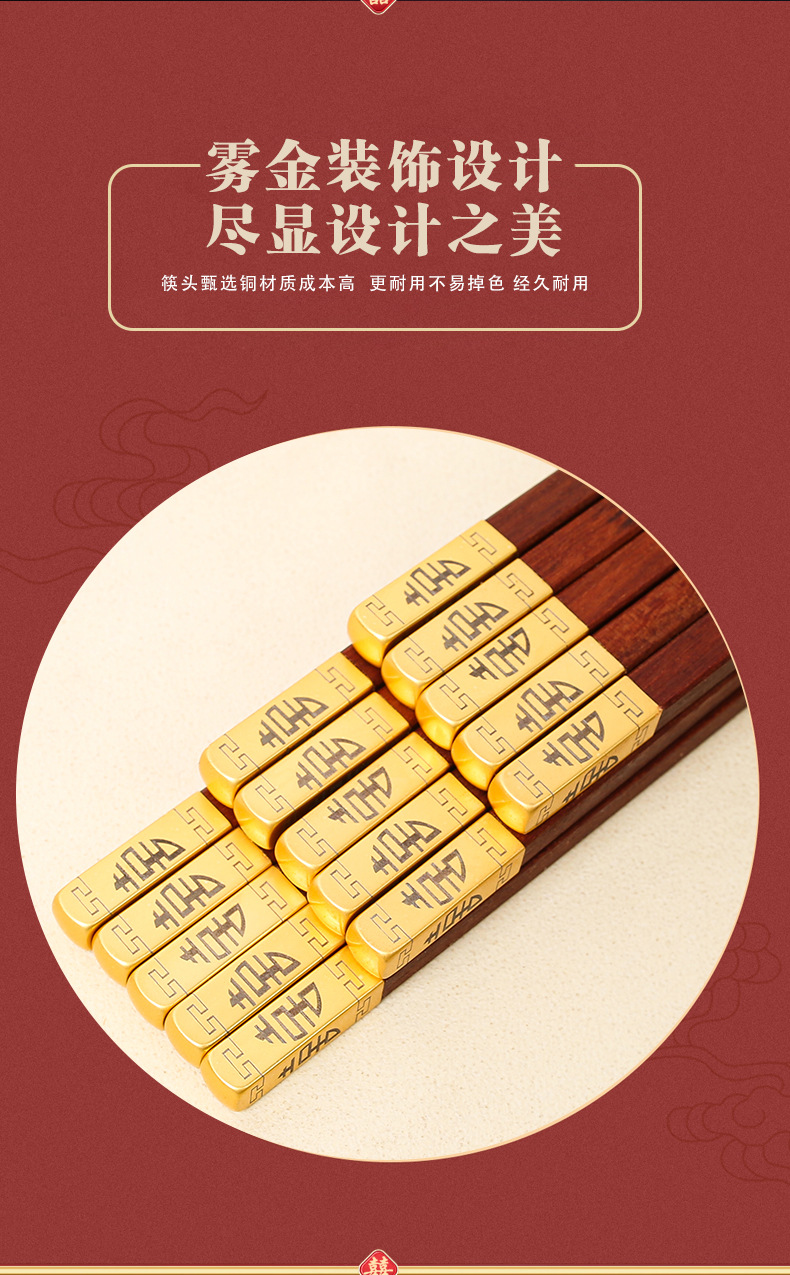 | 25cm [red sandalwood wedding chopsticks] copper head(25cm【红檀木喜筷】铜头) | USD $1.65 | 9999581 set available |