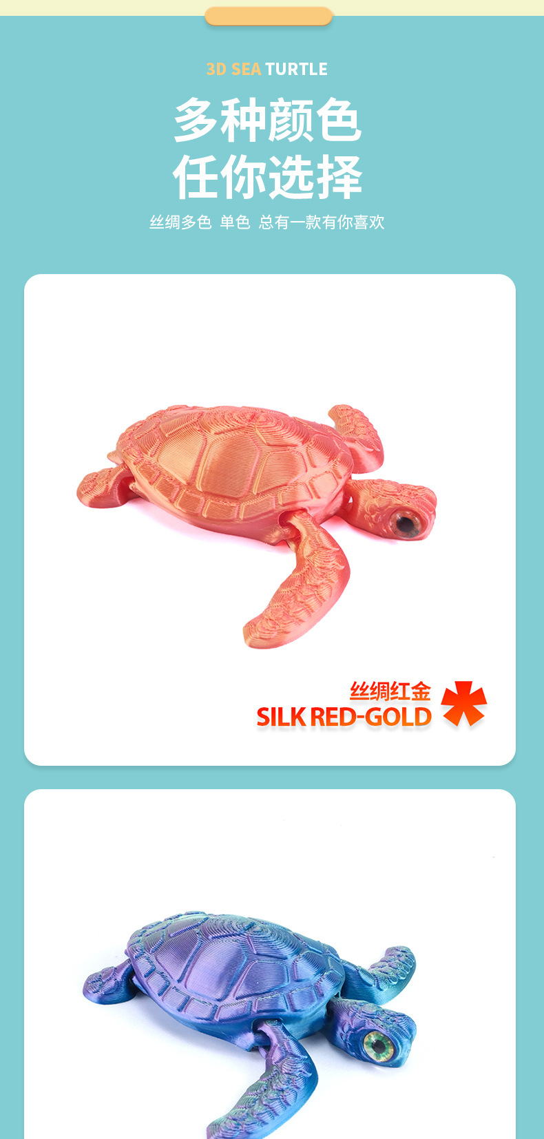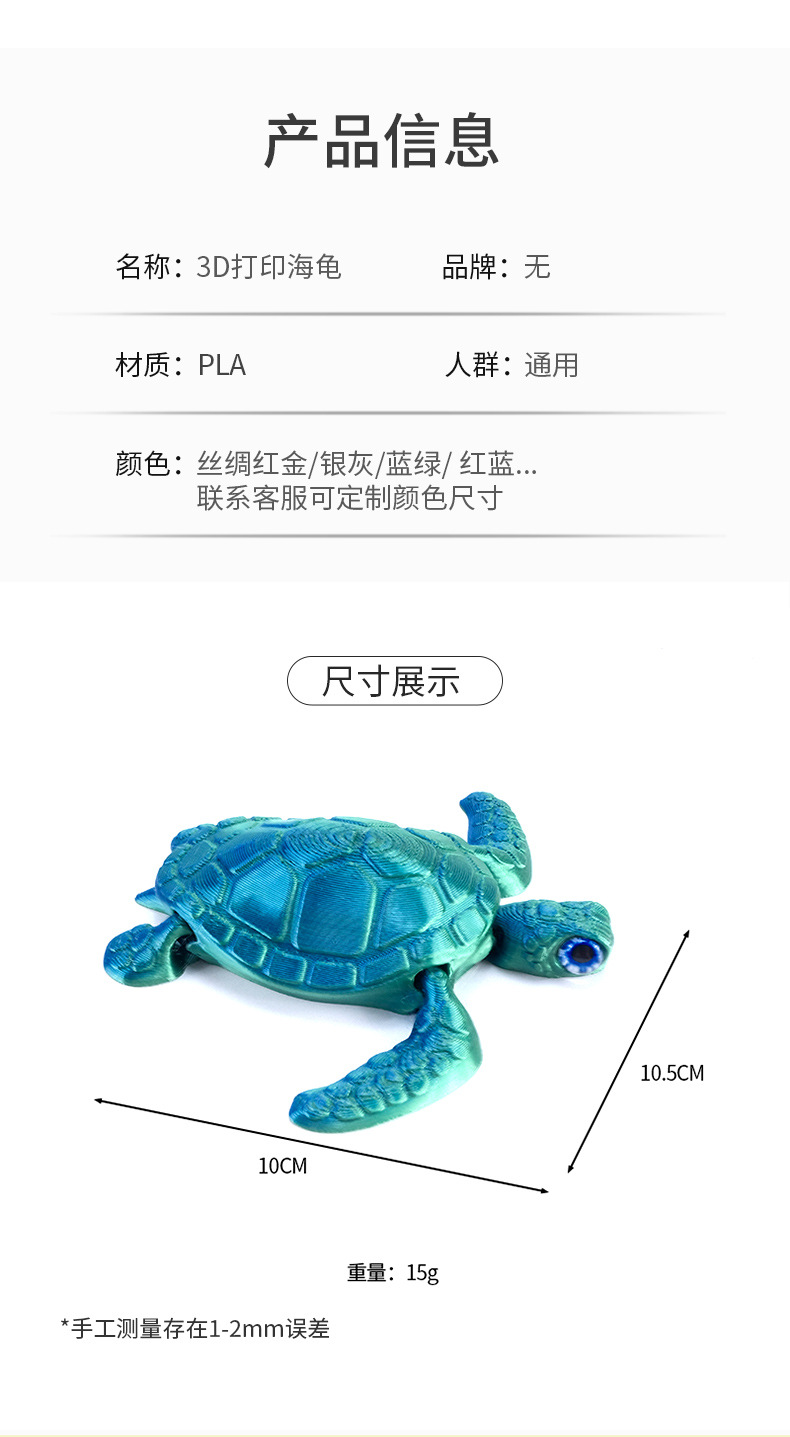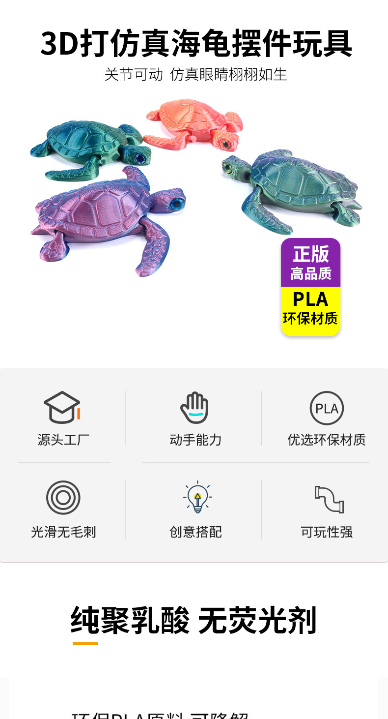 跨境仿真海龟小乌龟3D打印关节可活动摆件玩具