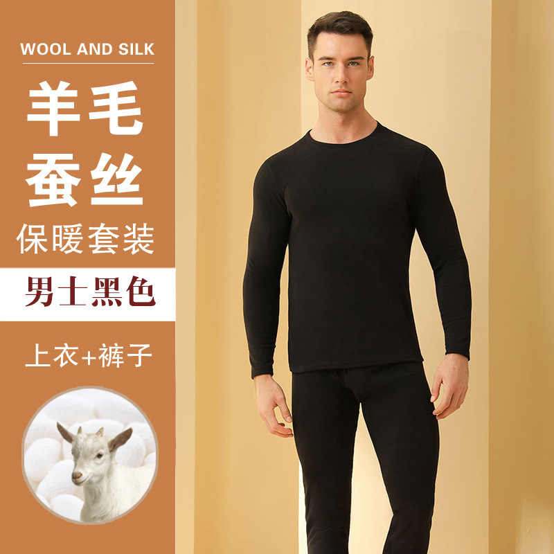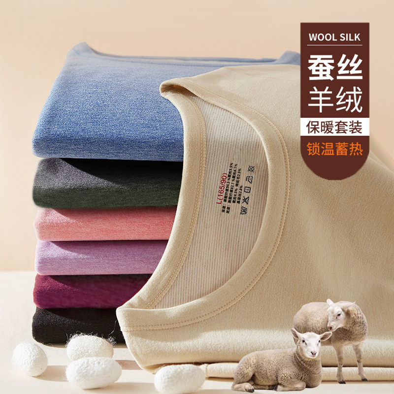 新款羊毛蚕丝保暖内衣套装女德绒加绒情侣男士秋衣秋裤羊绒打底衫
