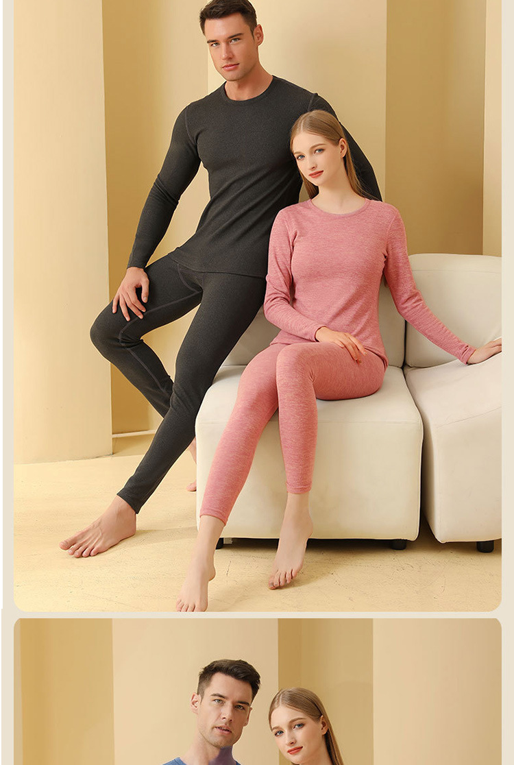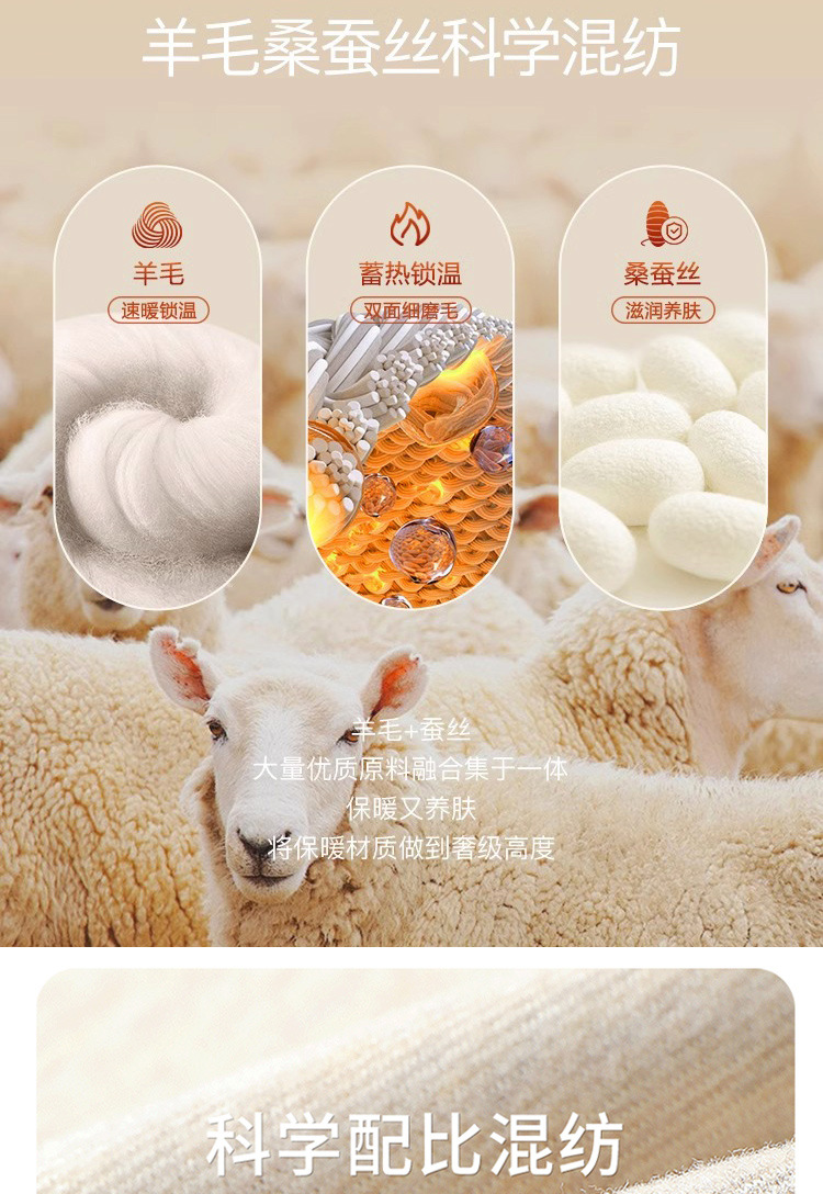 新款羊毛蚕丝保暖内衣套装女德绒加绒情侣男士秋衣秋裤羊绒打底衫