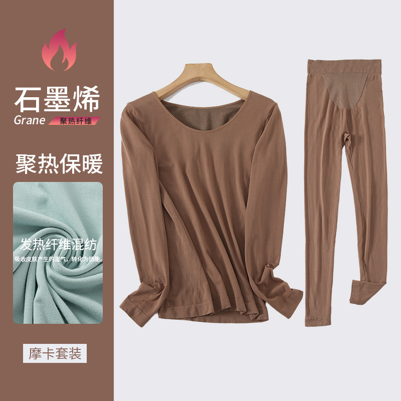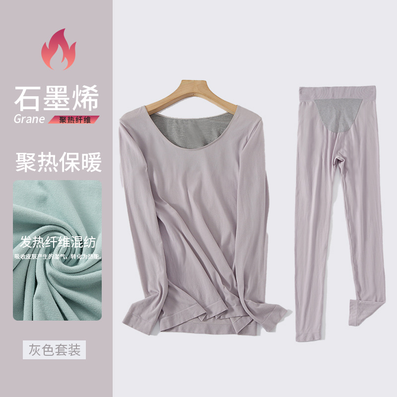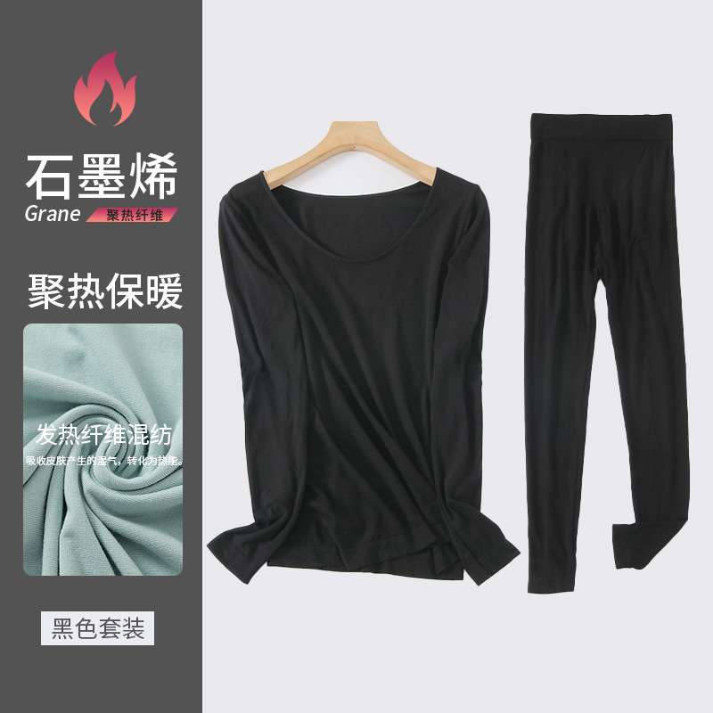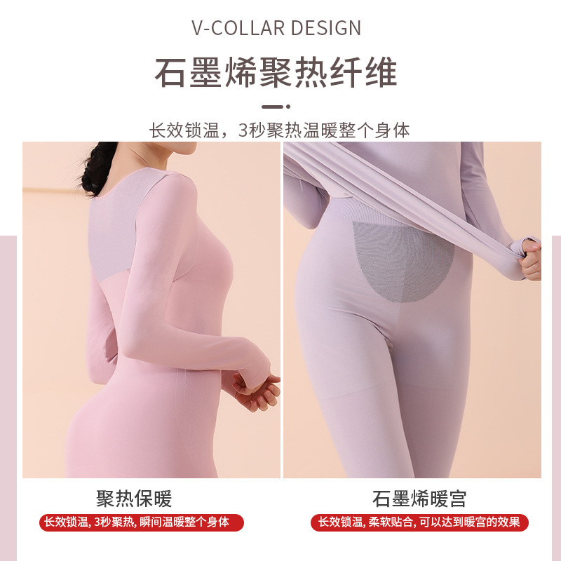 石墨烯无痕保暖内衣套装女亲肤修身打底衫圆领保暖衣套装现货批发