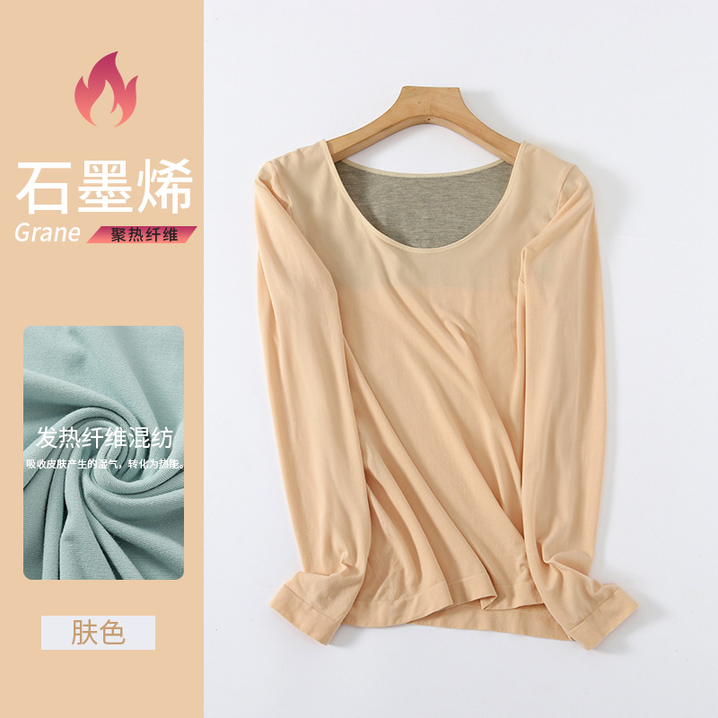 graphene seamless thermal underwear suit women‘s skin-friendly slim bottoming shirt round neck thermal clothing suit in stock wholesale