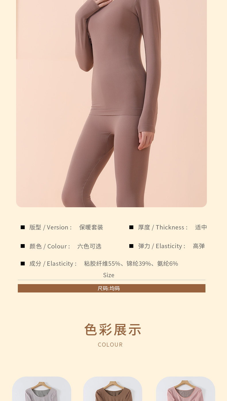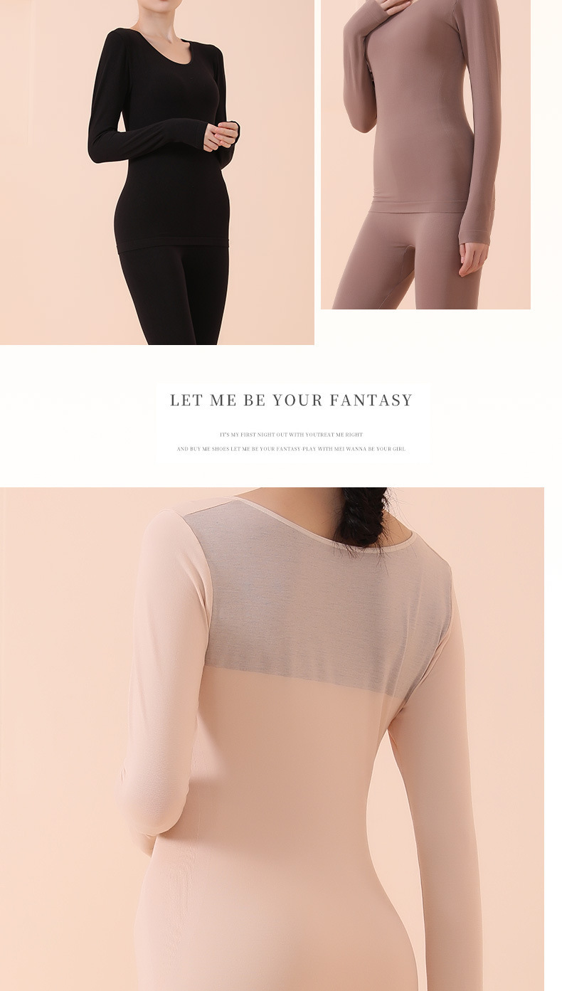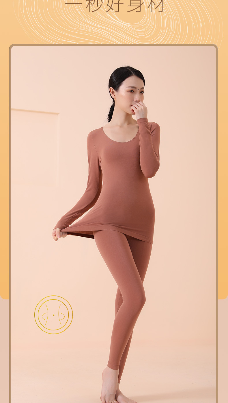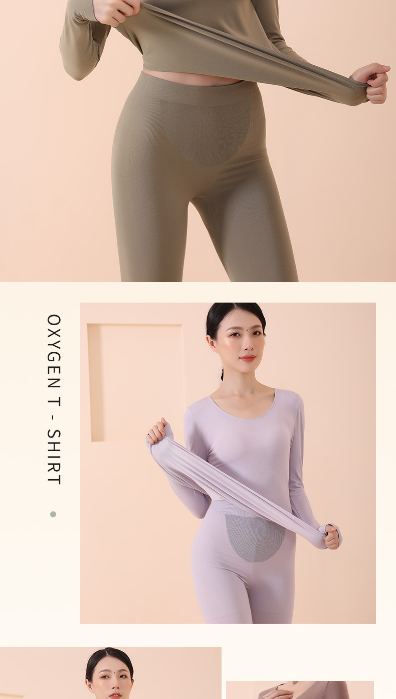 石墨烯无痕保暖内衣套装女亲肤修身打底衫圆领保暖衣套装现货批发