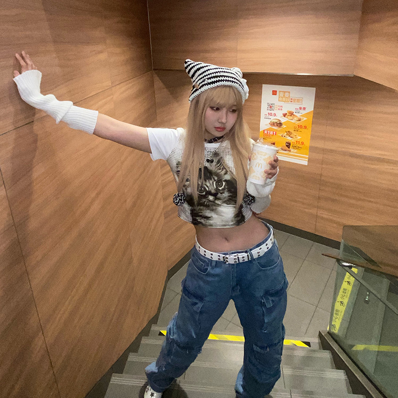 亚比风手工可爱五星猫咪耳朵条纹恶魔保暖套头帽针织球球毛线帽女