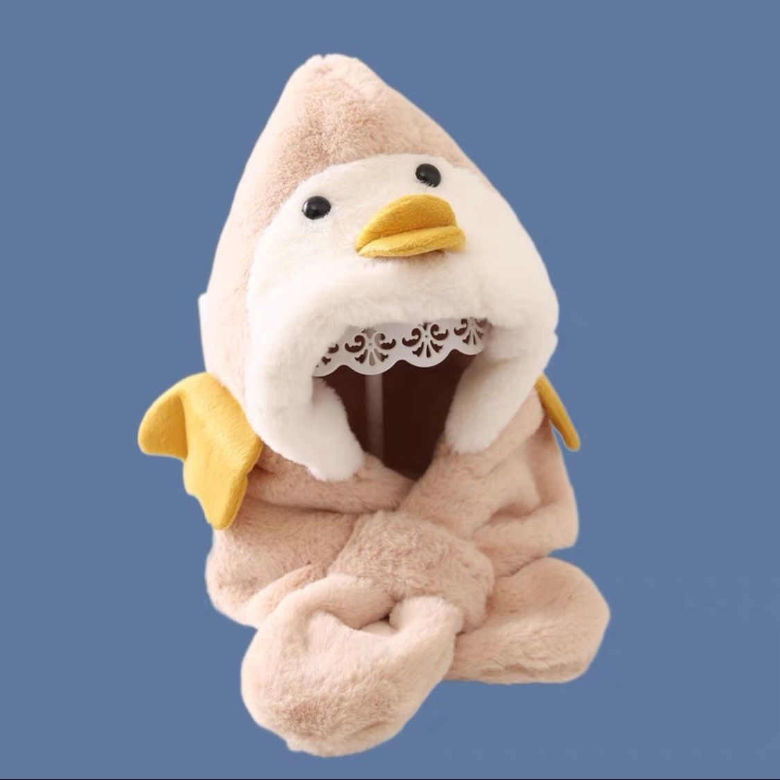 秋冬儿童围巾一体宝宝毛绒可爱男女童围脖护耳帽冬季加绒婴儿