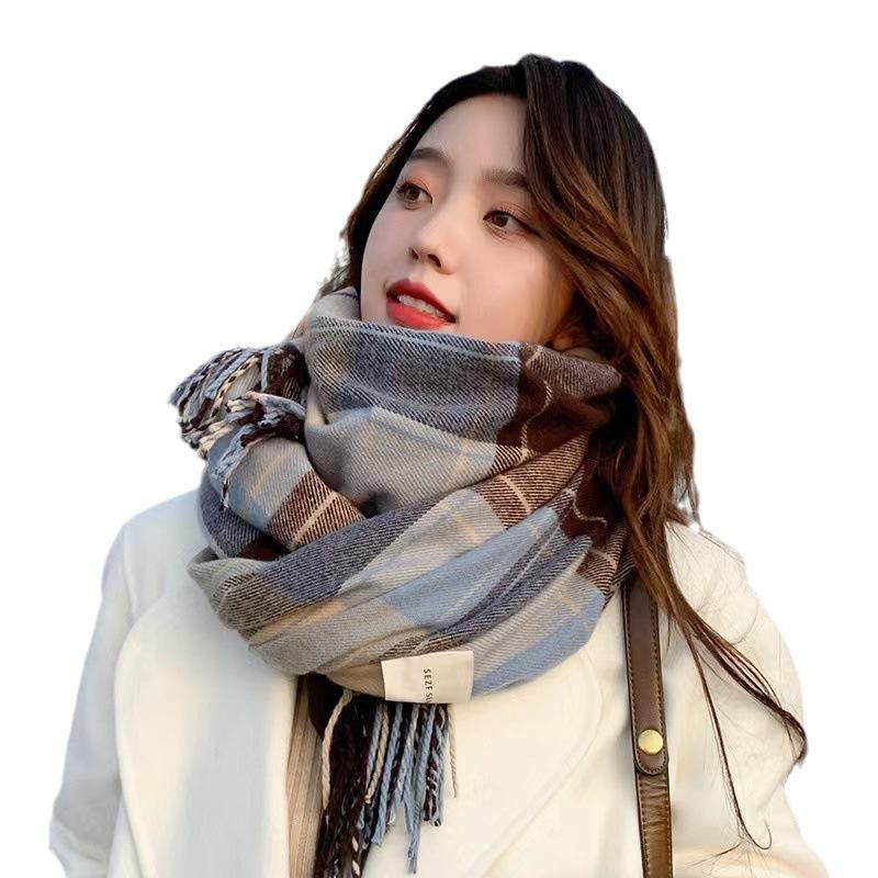 2024新款秋冬围巾时尚百搭韩版格子加厚男女学生围脖情侣保暖披肩