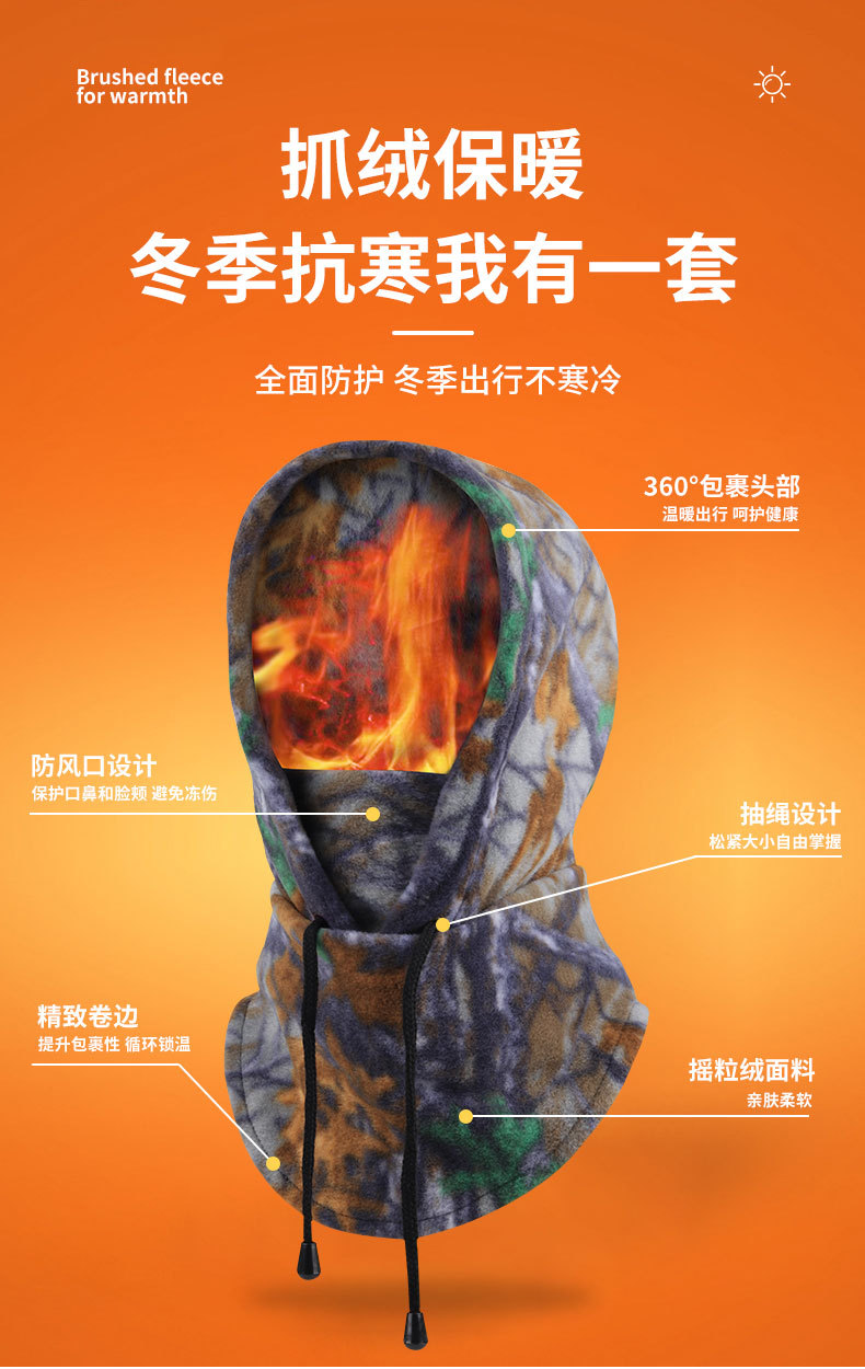 跨境骑行帽防风帽户外运动围脖防寒加厚滑雪头套CS面罩迷彩抓绒帽