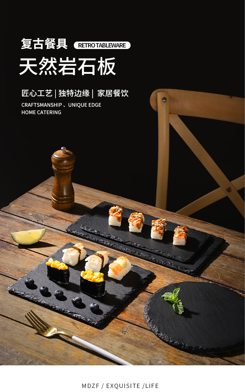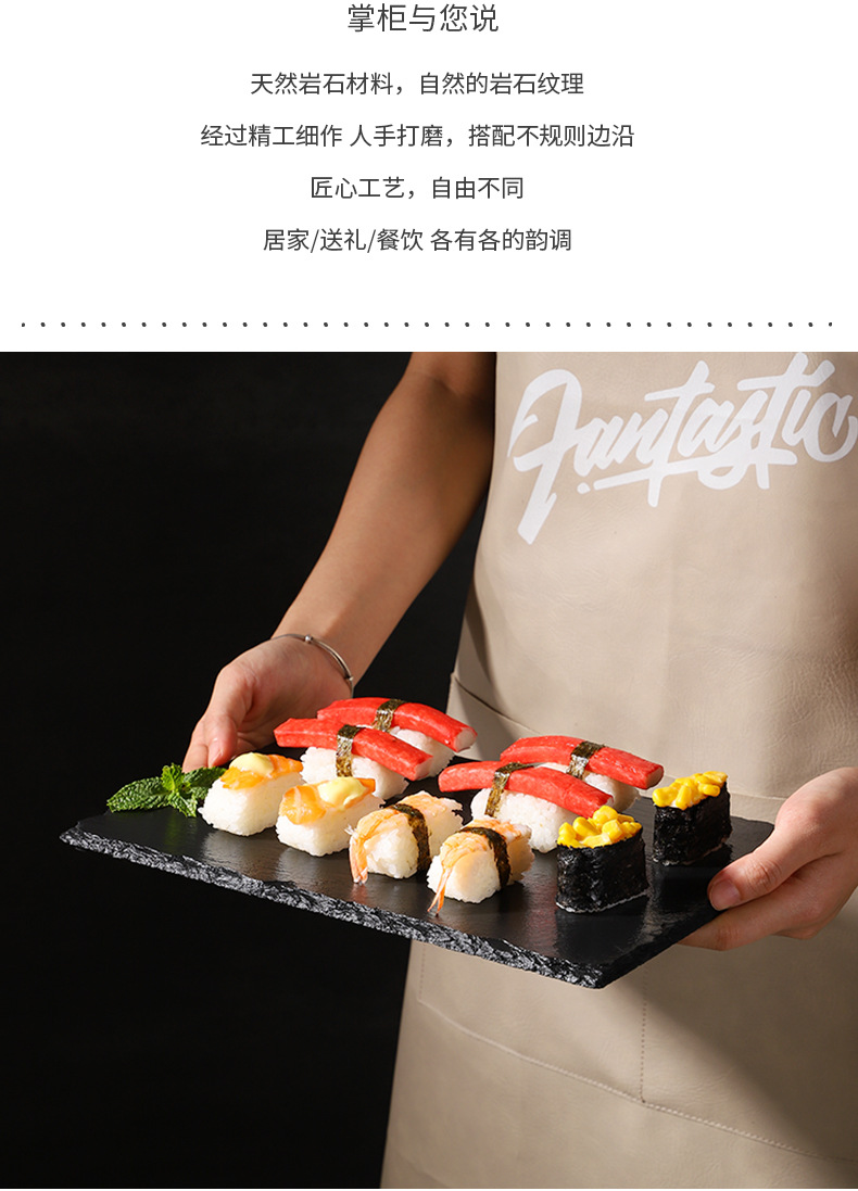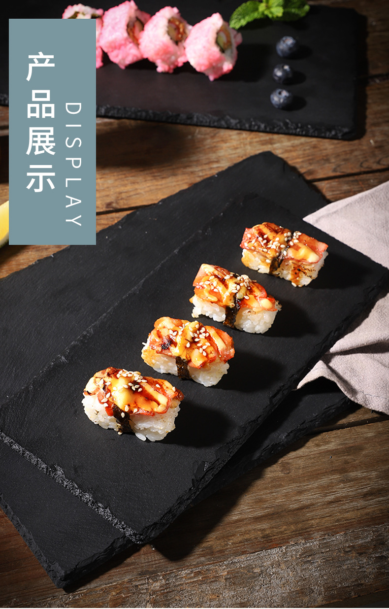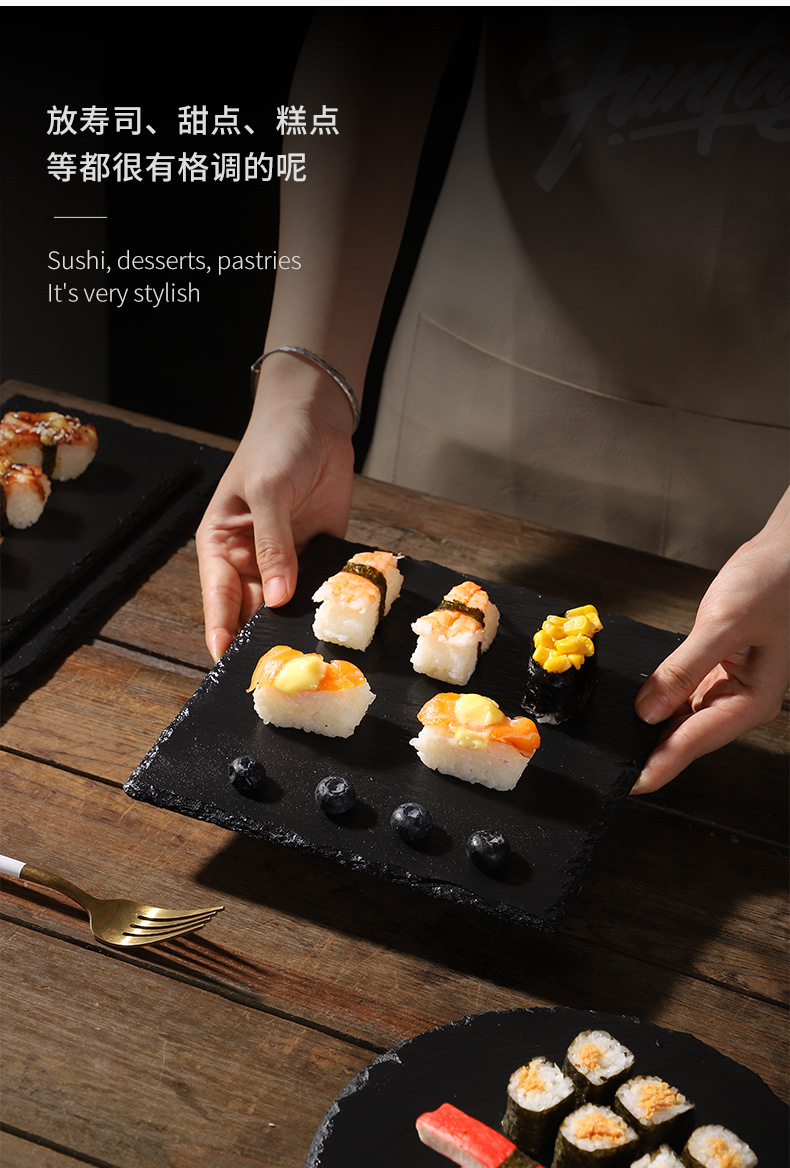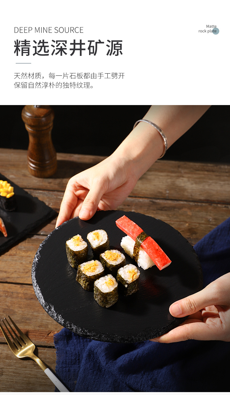 日式石板餐盘甜点寿司摆盘岩石板托盘石盘西餐牛排餐具黑色石头盘