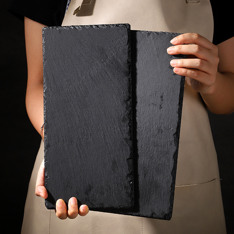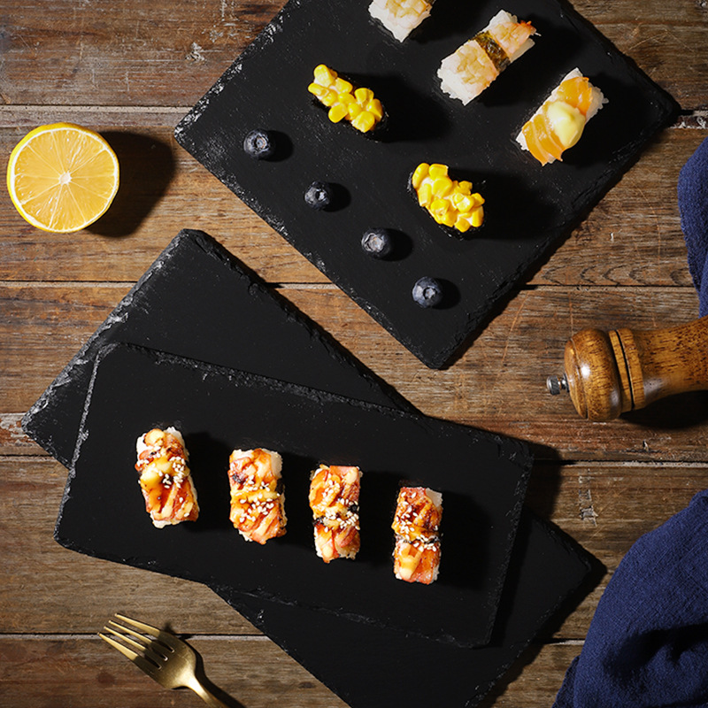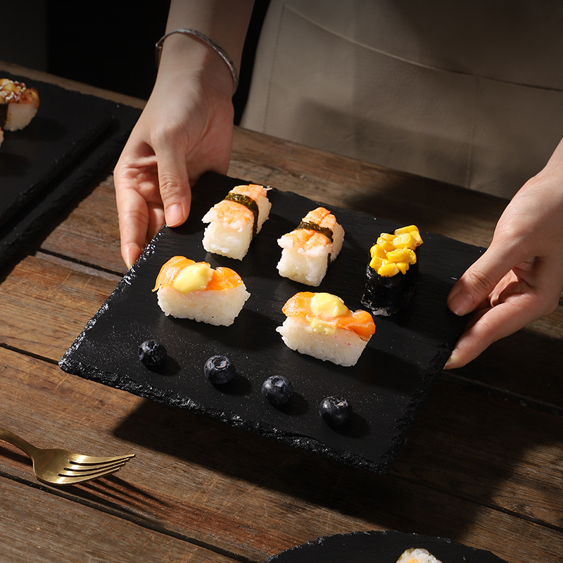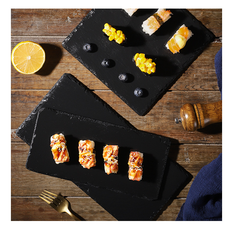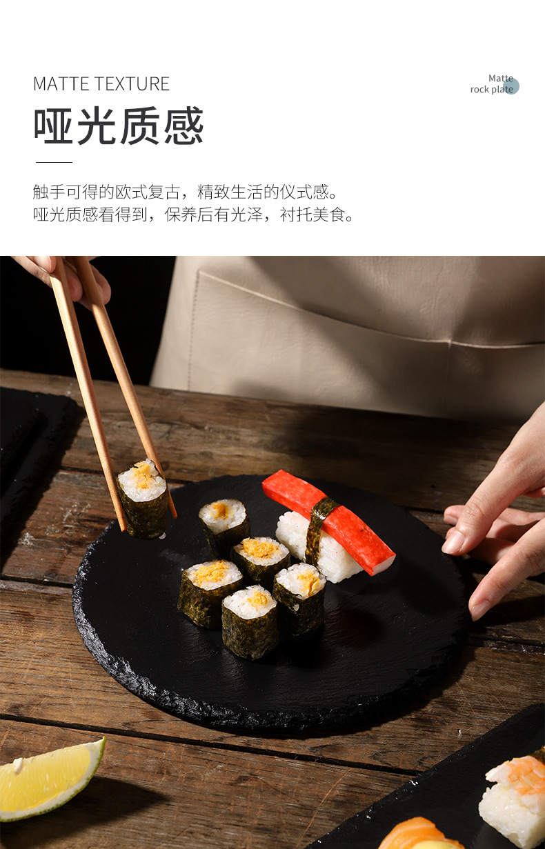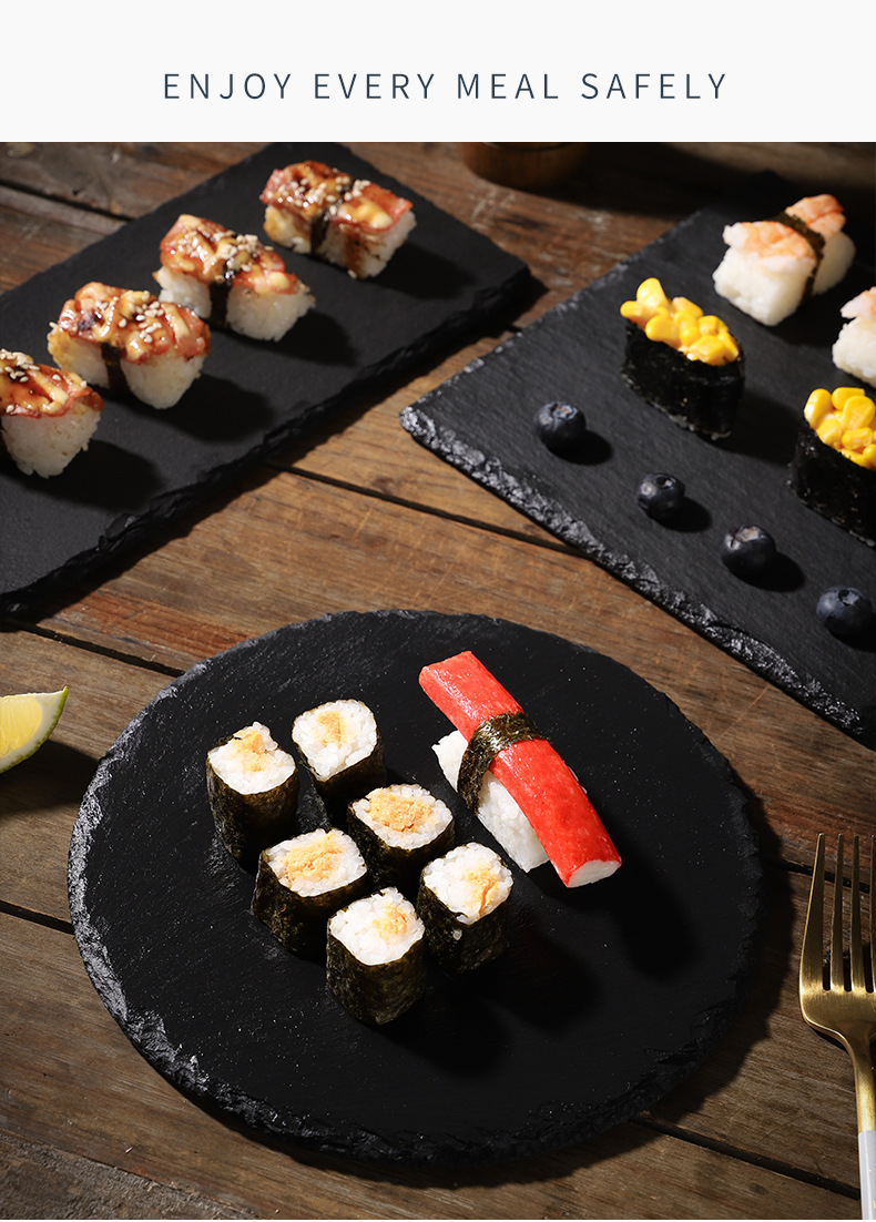 日式石板餐盘甜点寿司摆盘岩石板托盘石盘西餐牛排餐具黑色石头盘
