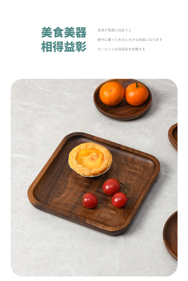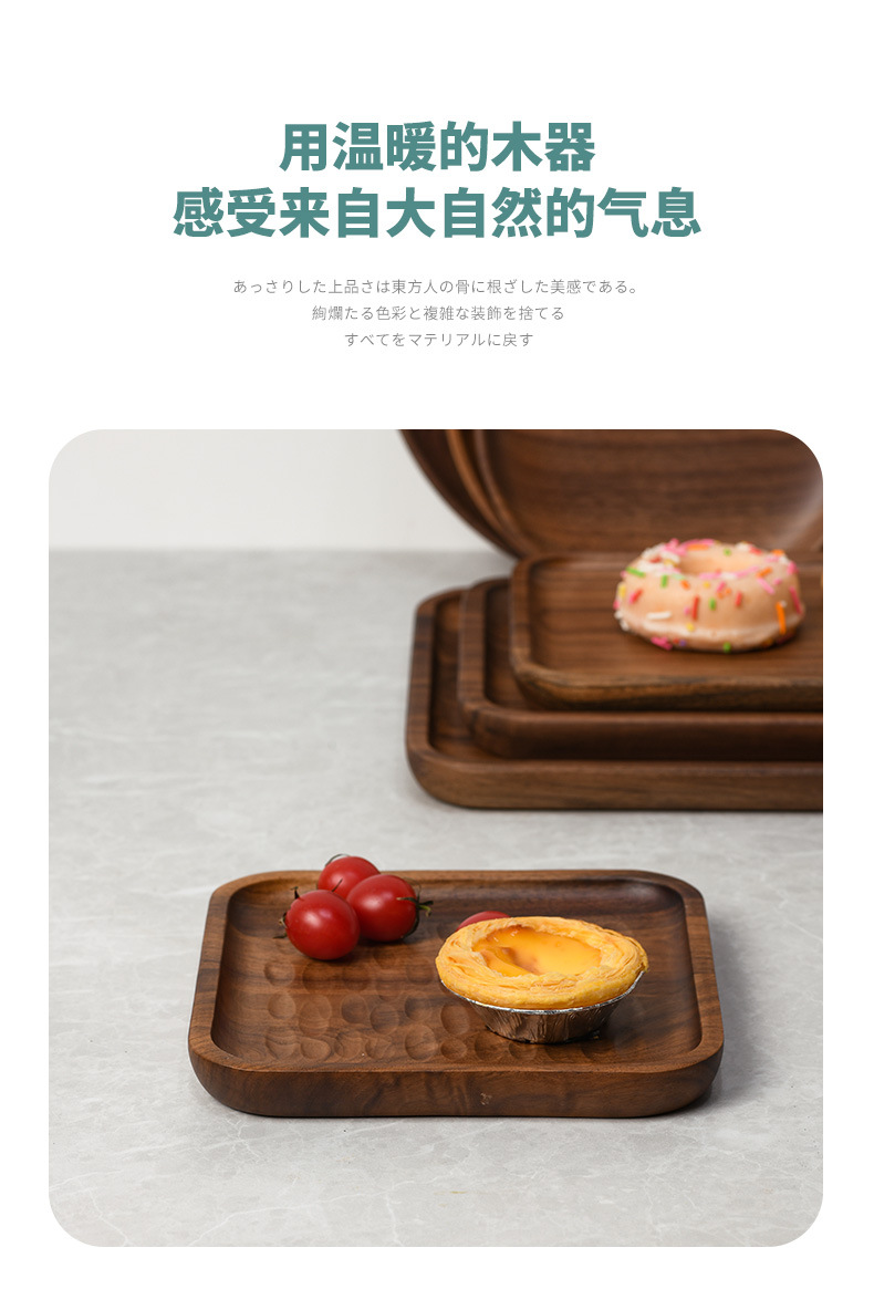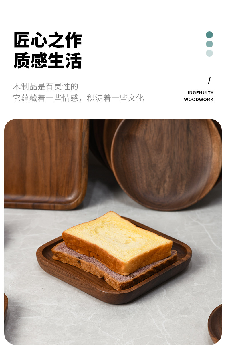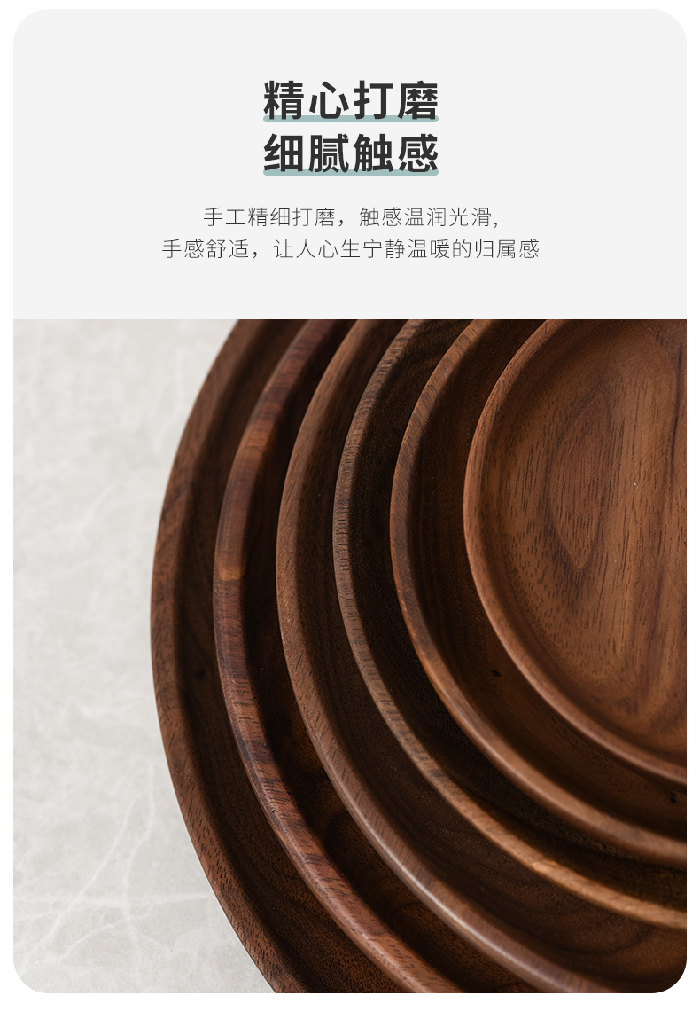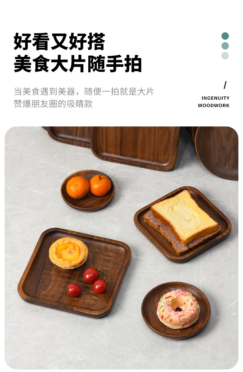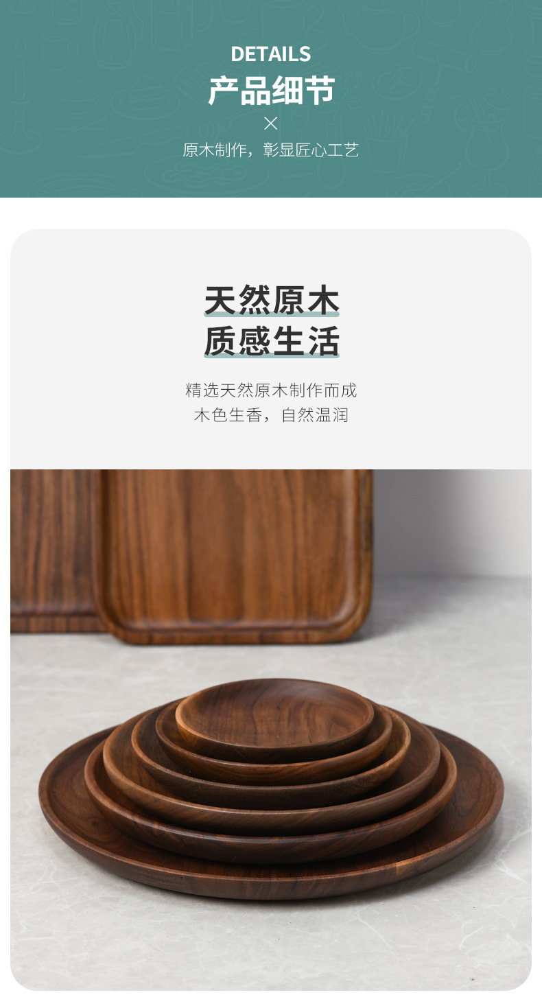 批发logo日式整木点心盘黑胡桃木碟子寿司盘圆形迷你水果盘长方形