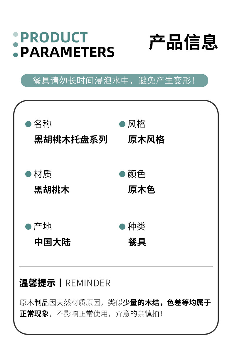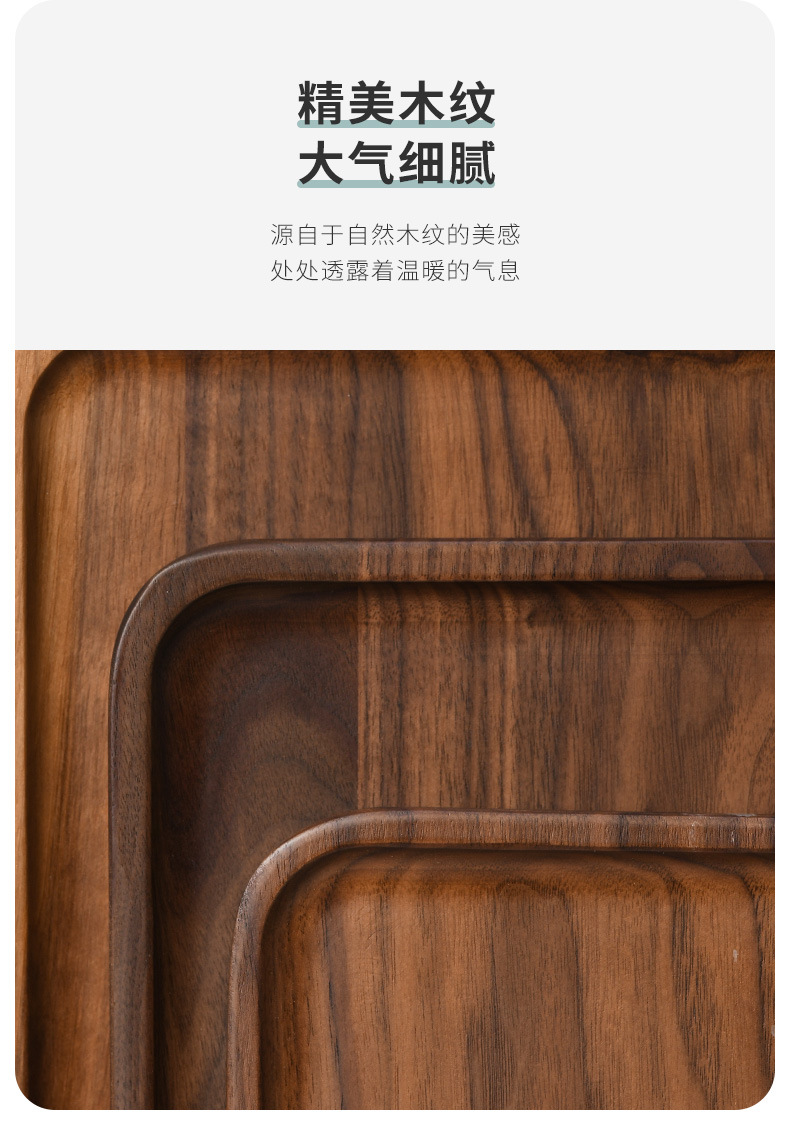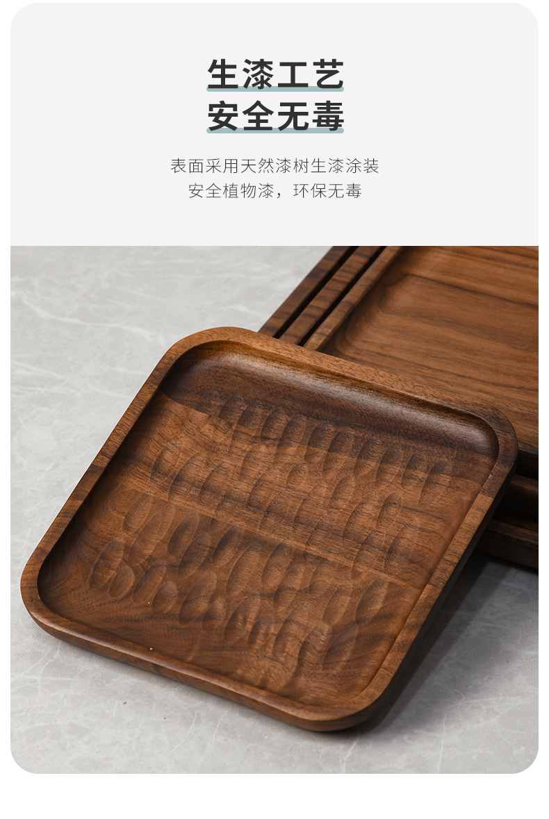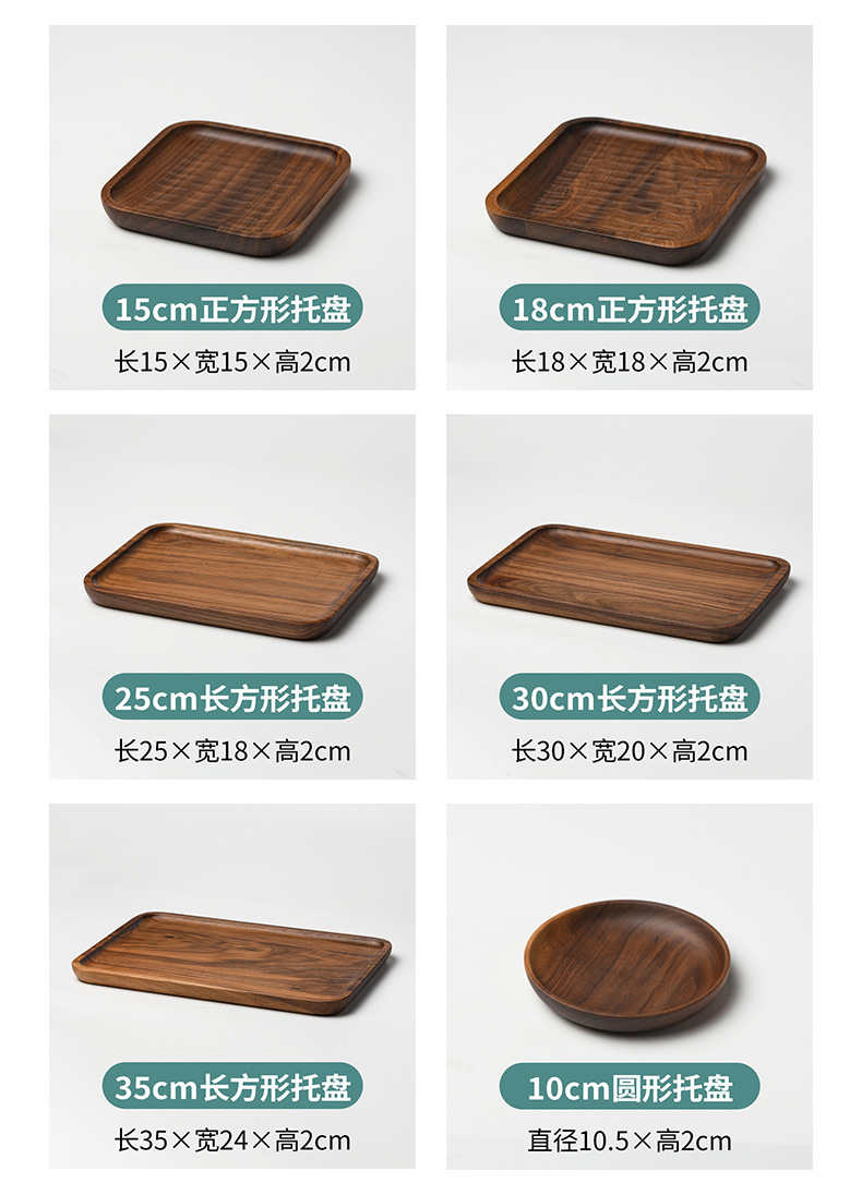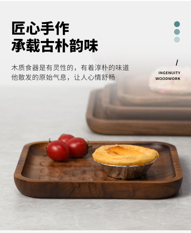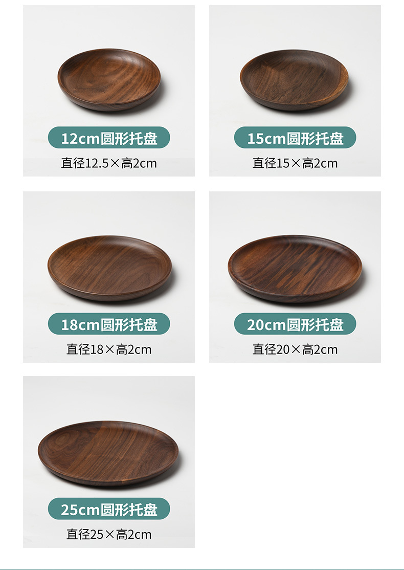 批发logo日式整木点心盘黑胡桃木碟子寿司盘圆形迷你水果盘长方形