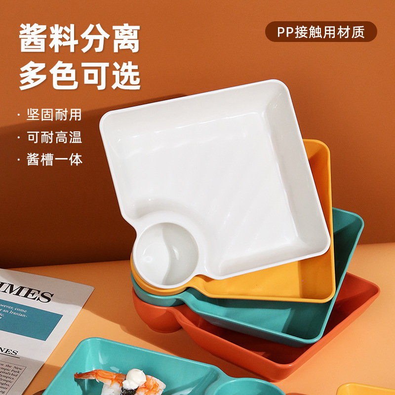 pp方形日式饺子盘带醋碟家用水饺盘子商用寿司盘点心盘小吃碟logo