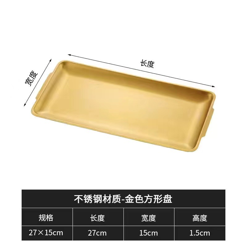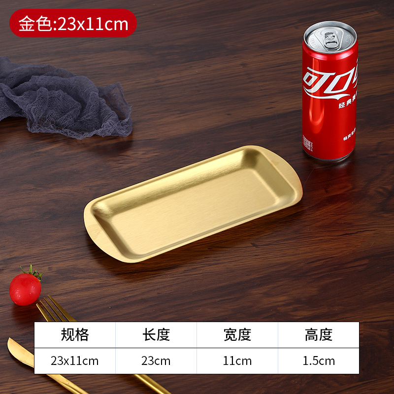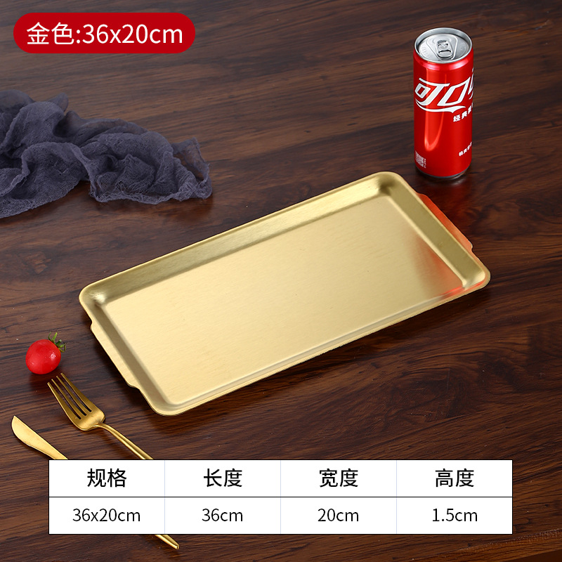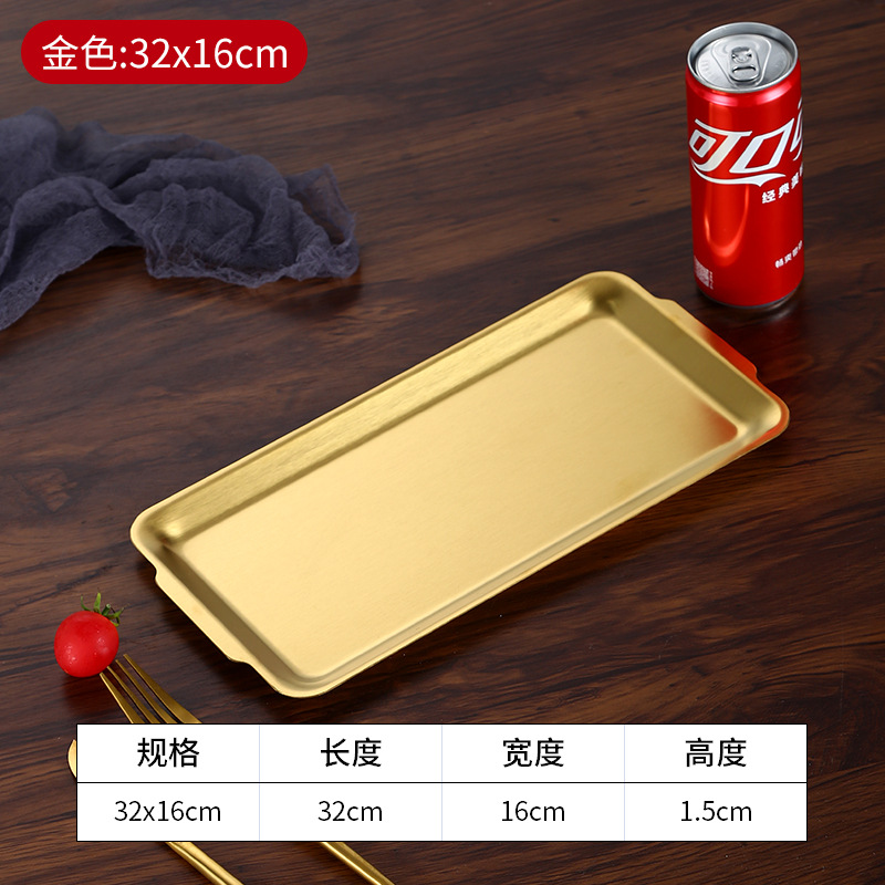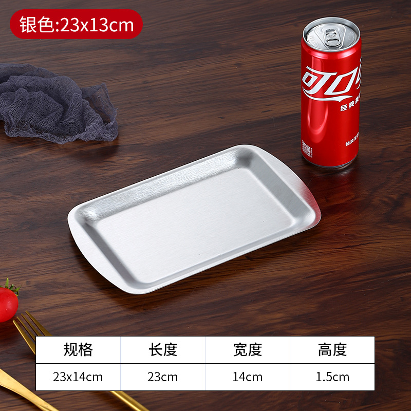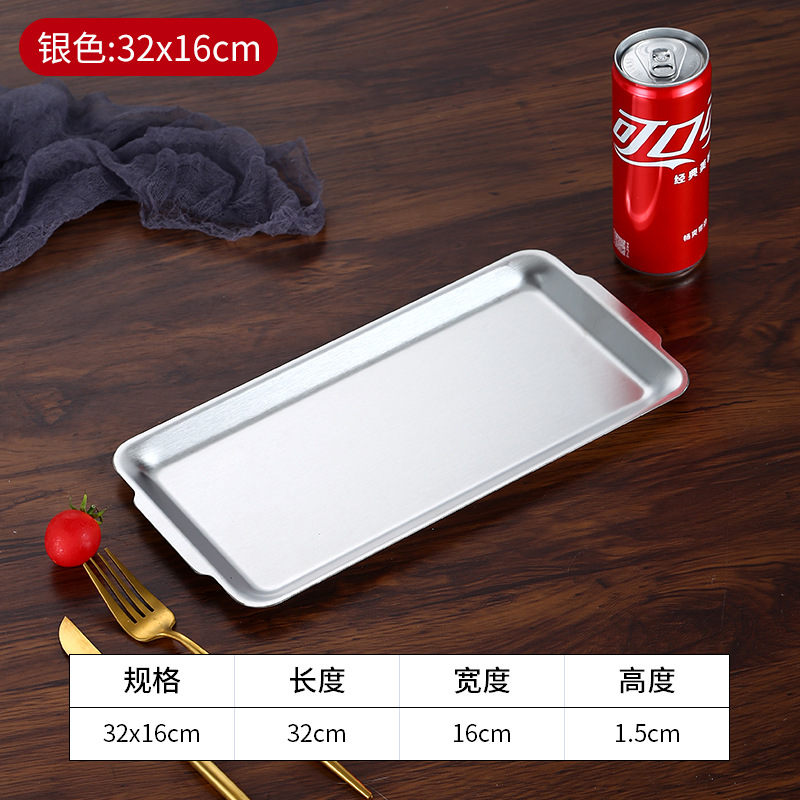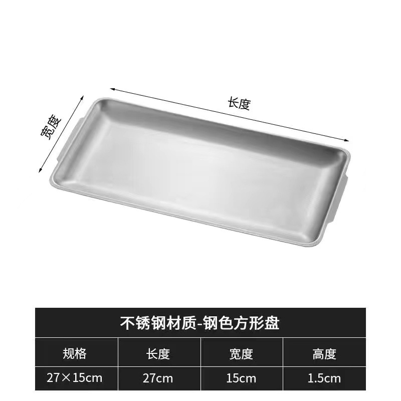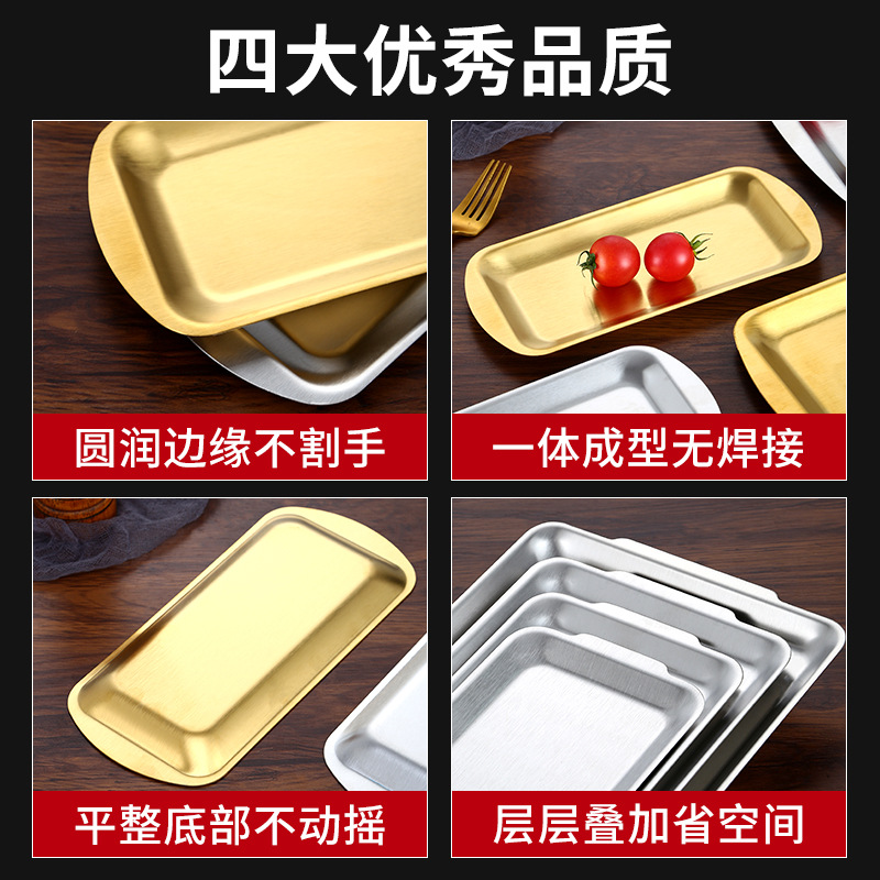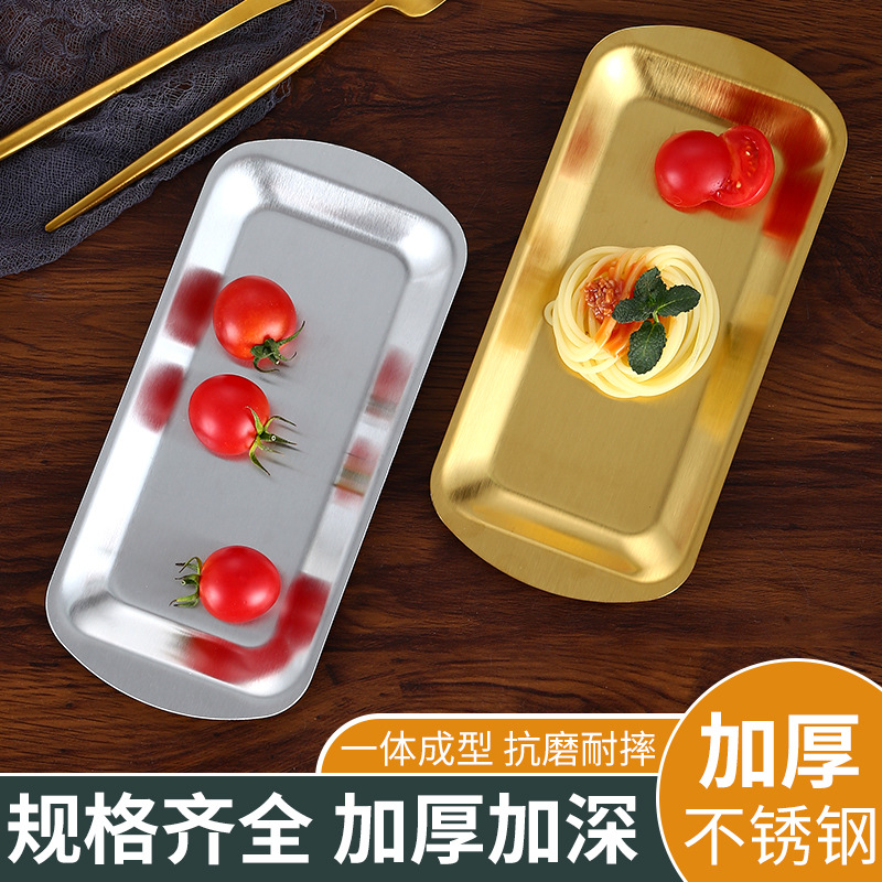 加厚不锈钢长方形盘水果盘韩式烧烤盘菜盘寿司平底盘托盘收纳盘