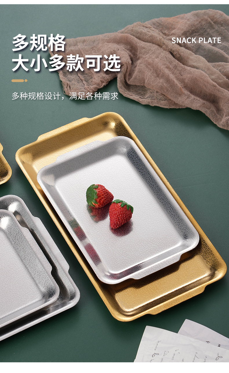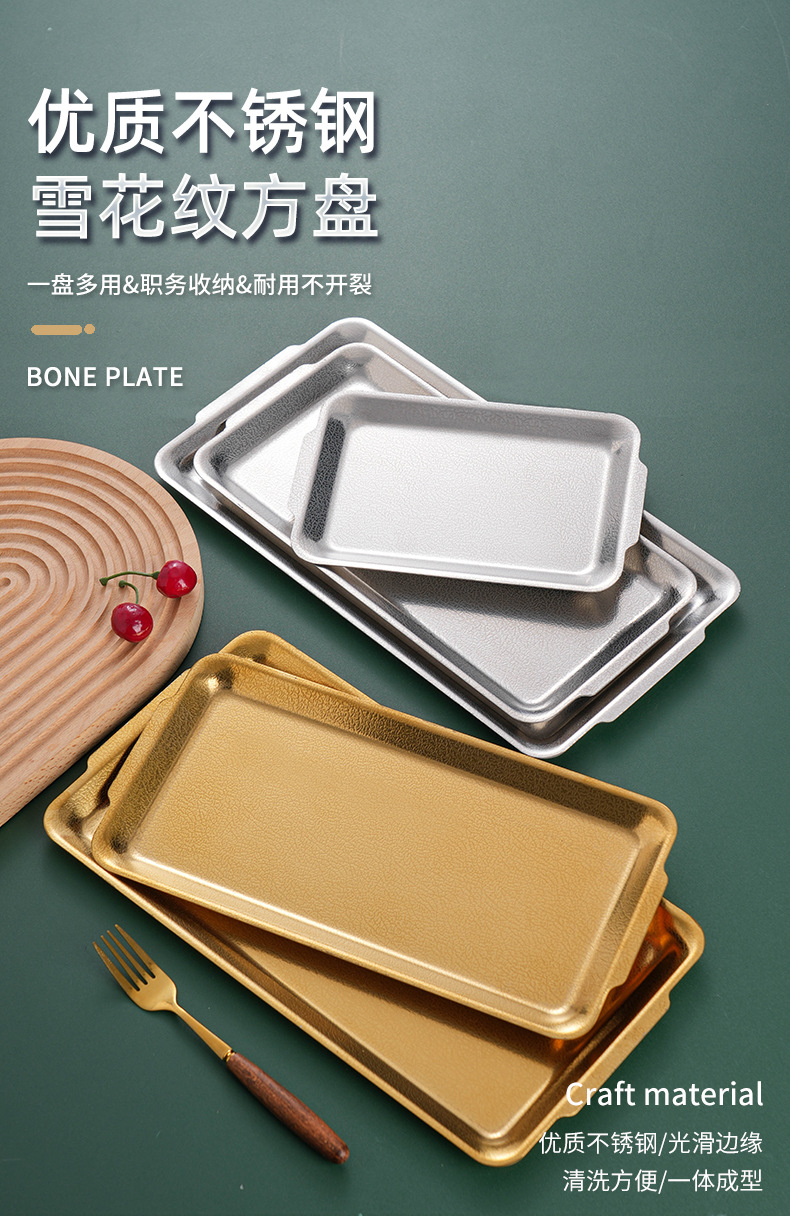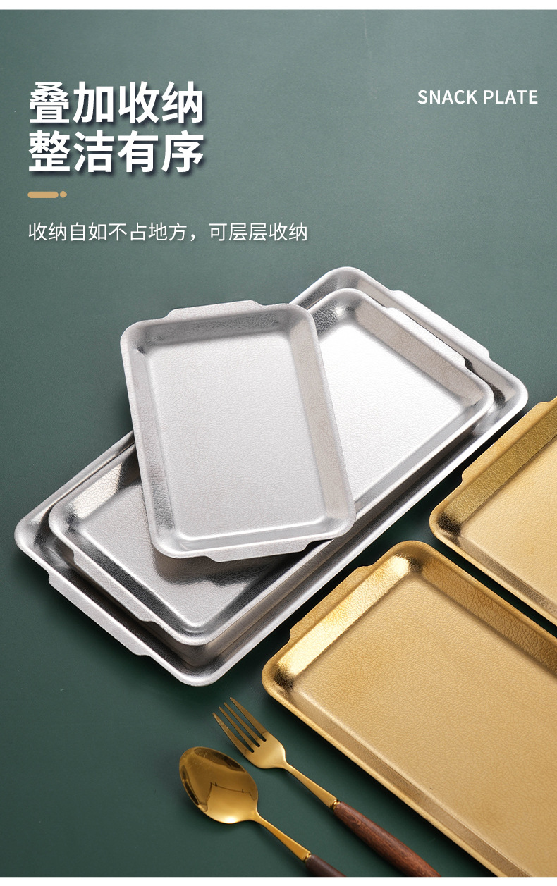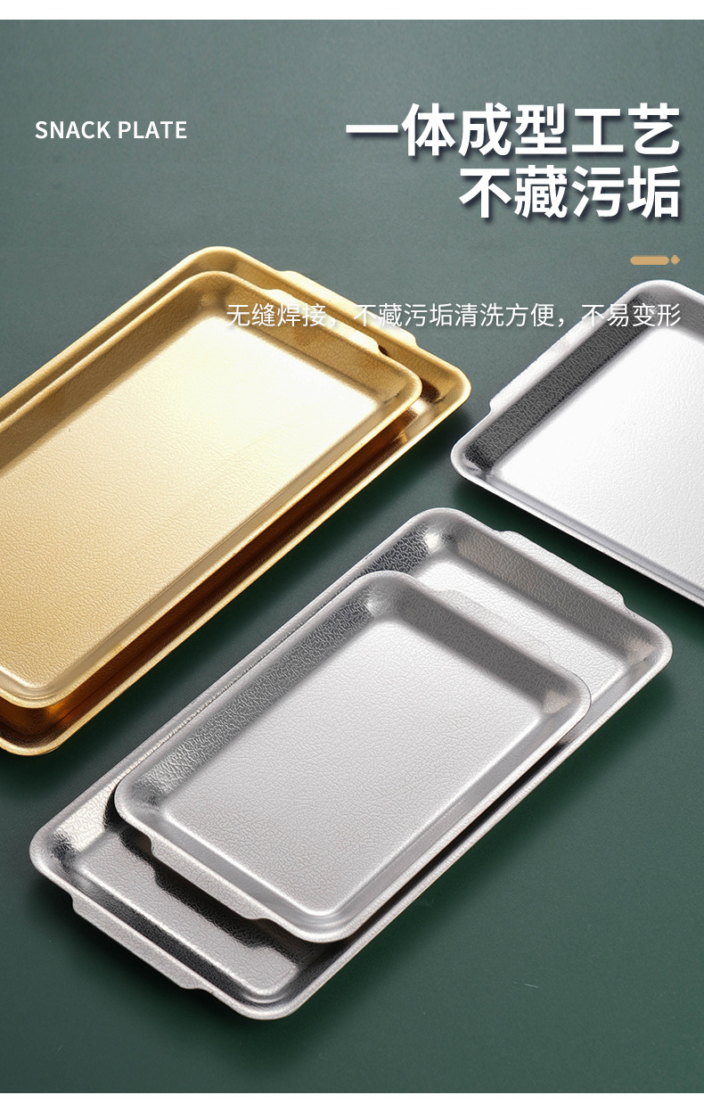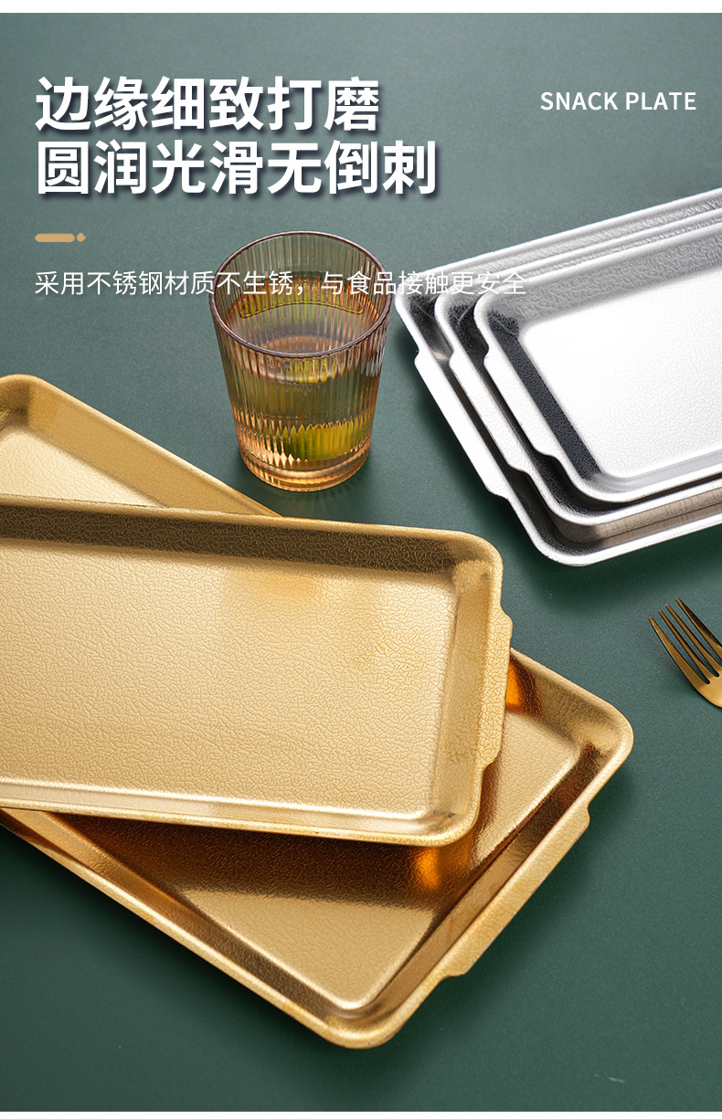 韩式不锈钢长方形盘加厚金色烧烤盘菜盘寿司盘创意平底托盘收纳盘