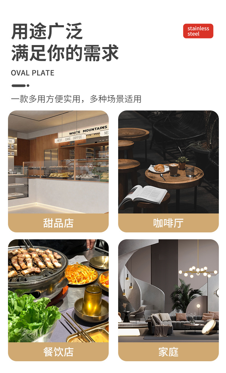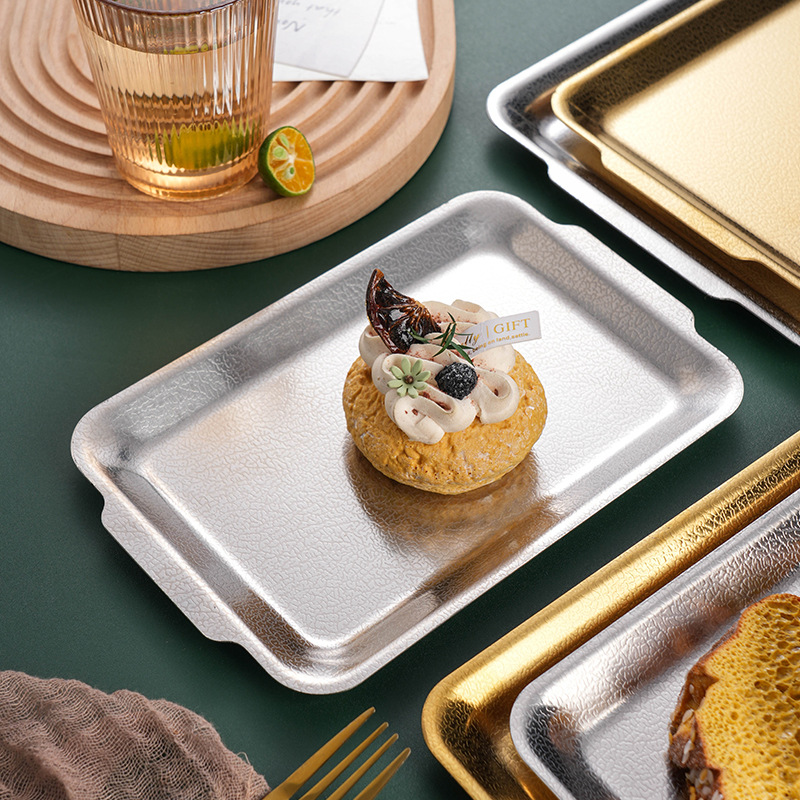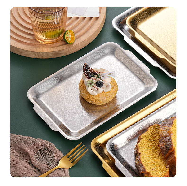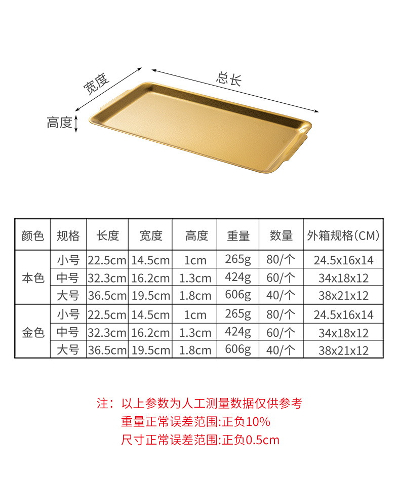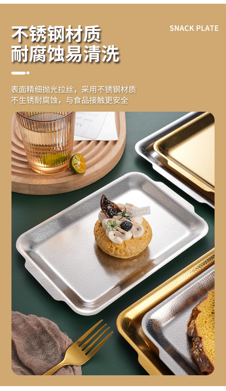 韩式不锈钢长方形盘加厚金色烧烤盘菜盘寿司盘创意平底托盘收纳盘
