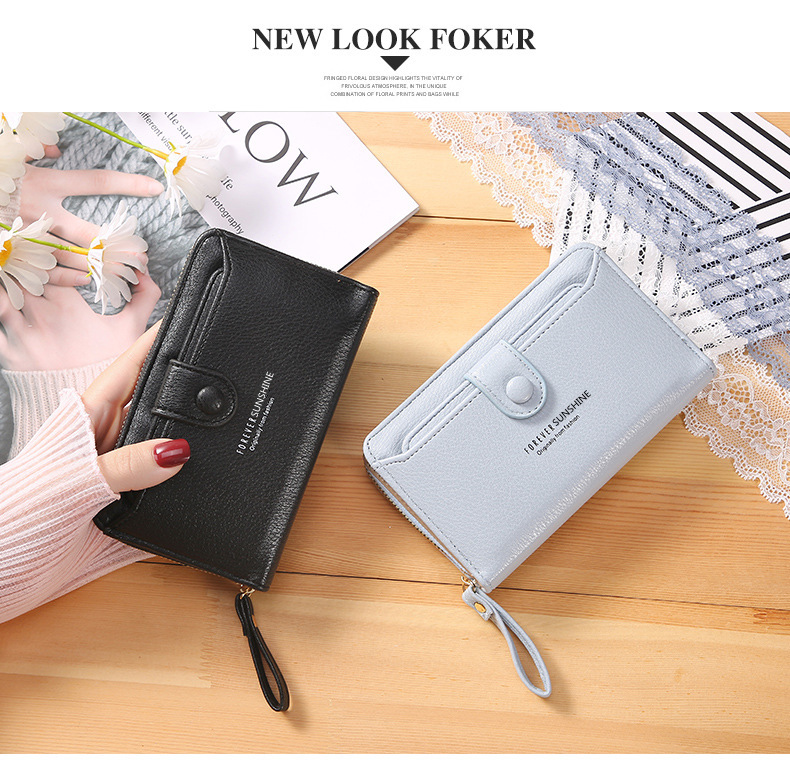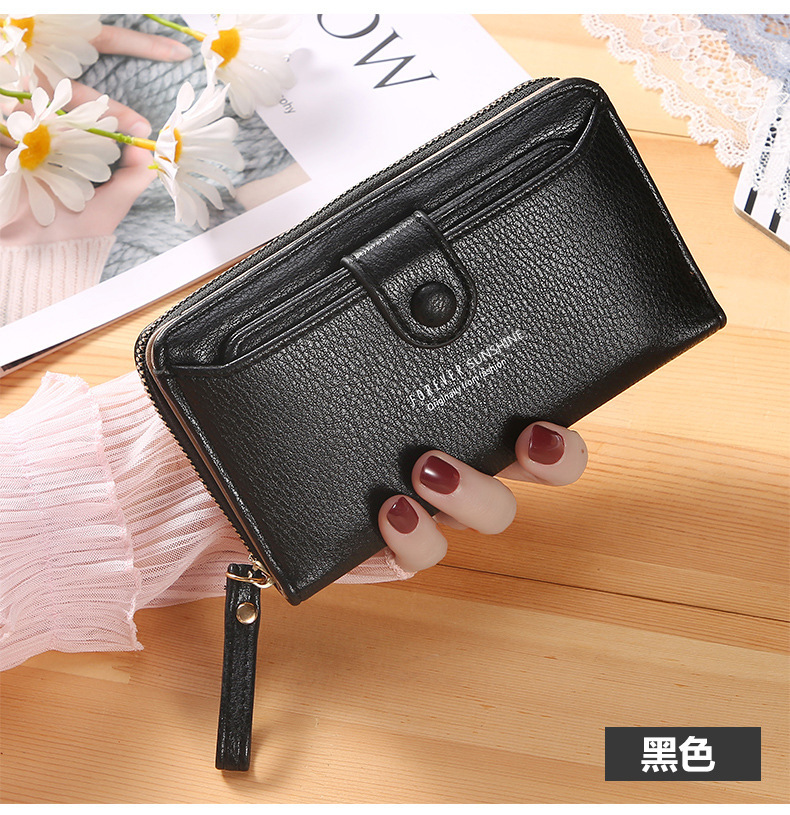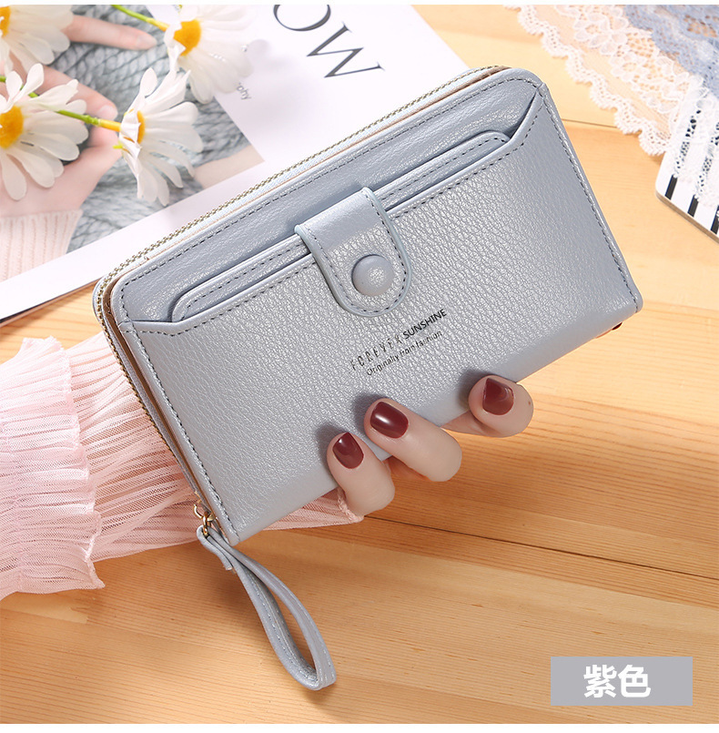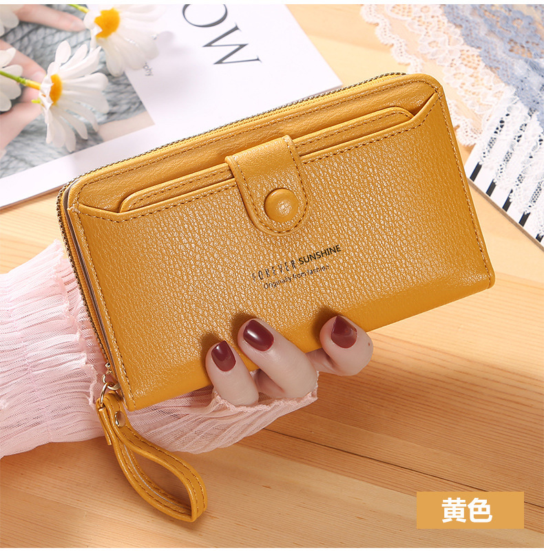 新款纯色女士腕带手拿包时尚韩版长款女式拉链钱包大容量钱夹批发