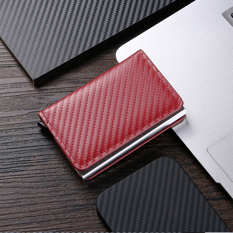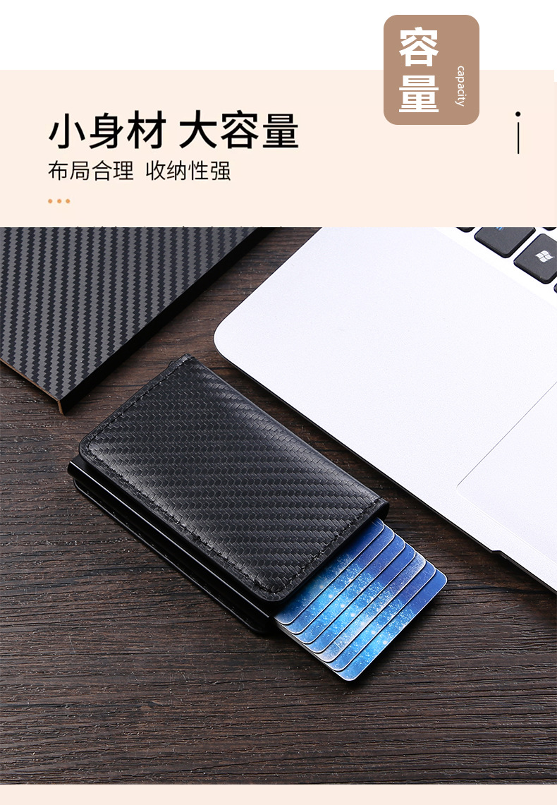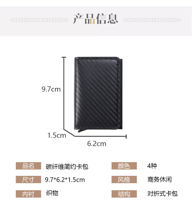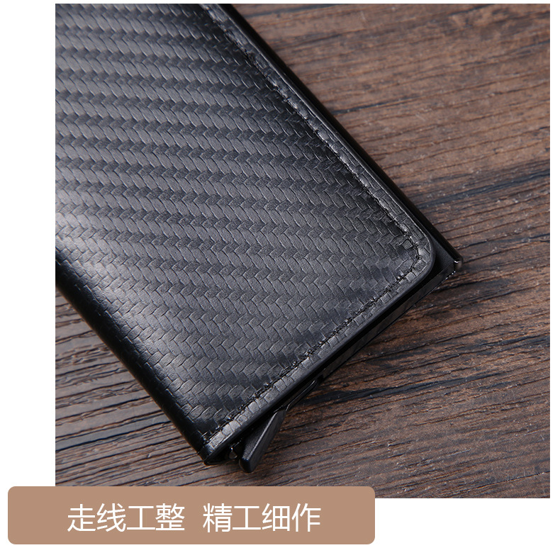 RFID防盗刷自动弹出卡包超薄信用卡金属卡包男士多卡位钱包碳纤维