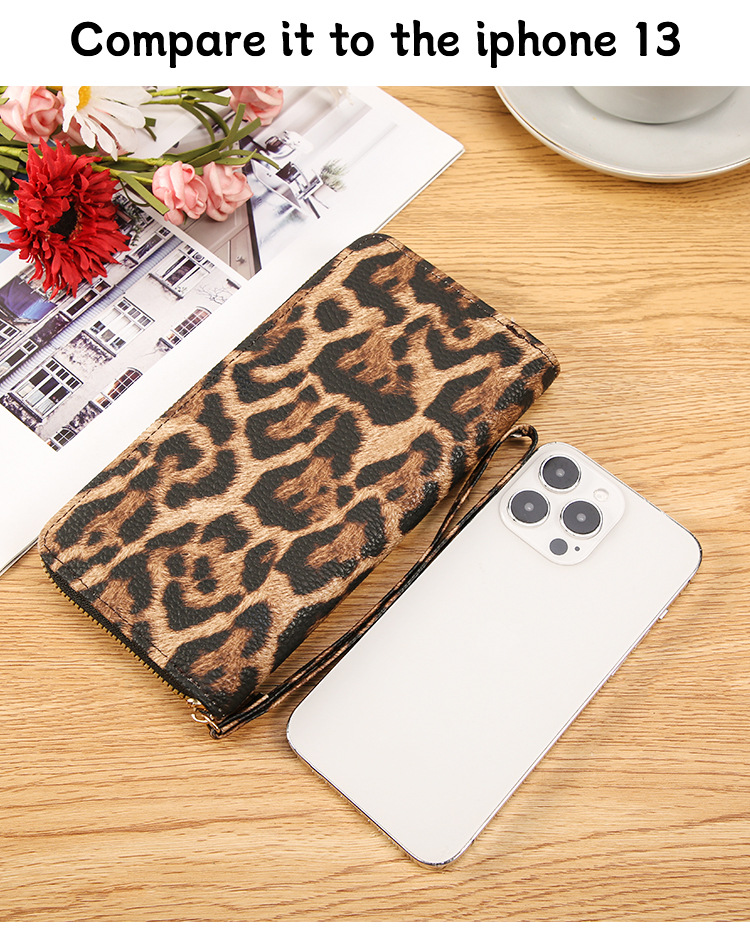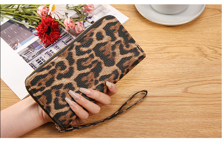 跨境2024新款豹纹印花复古长款手腕钱包时尚百搭小包包外贸钱包女