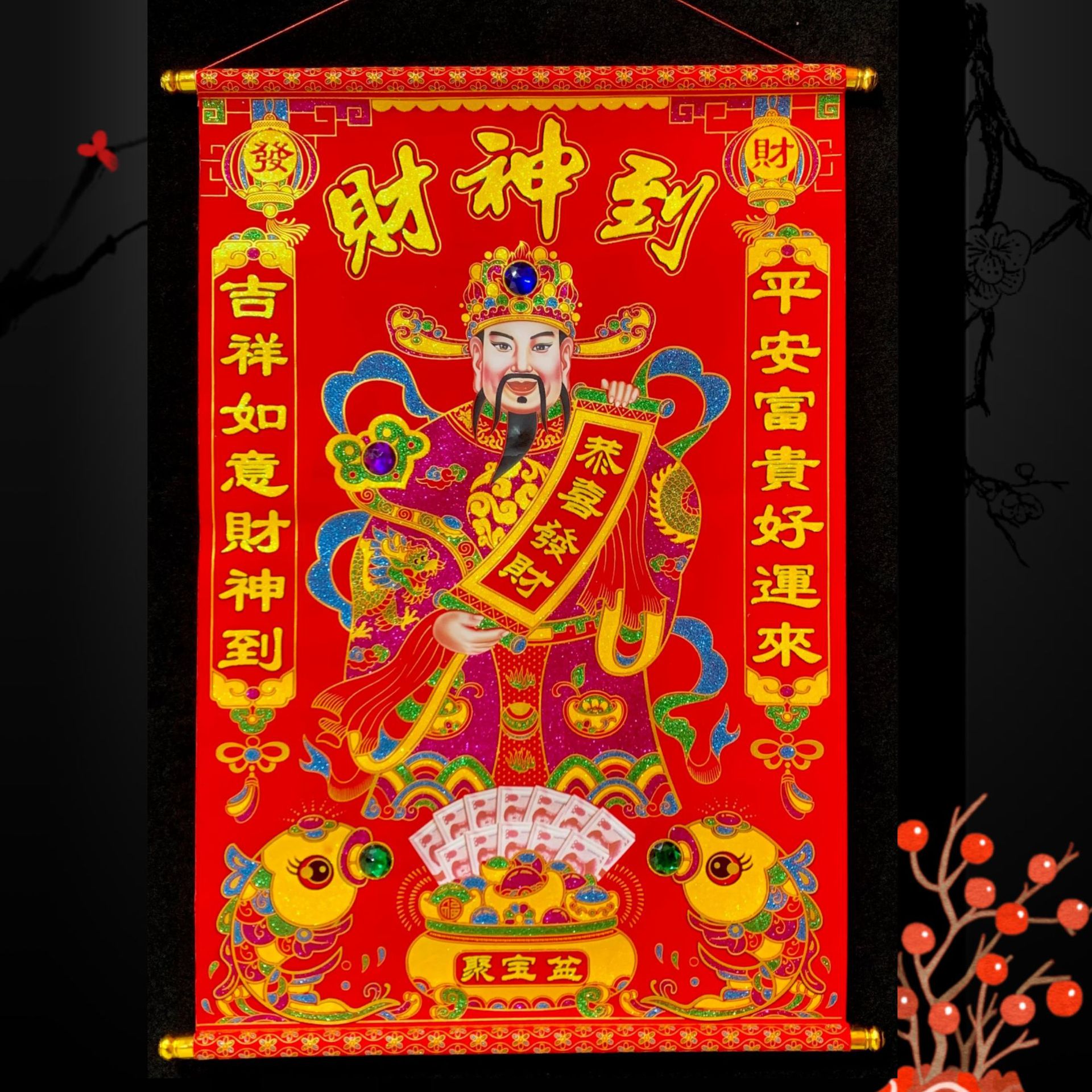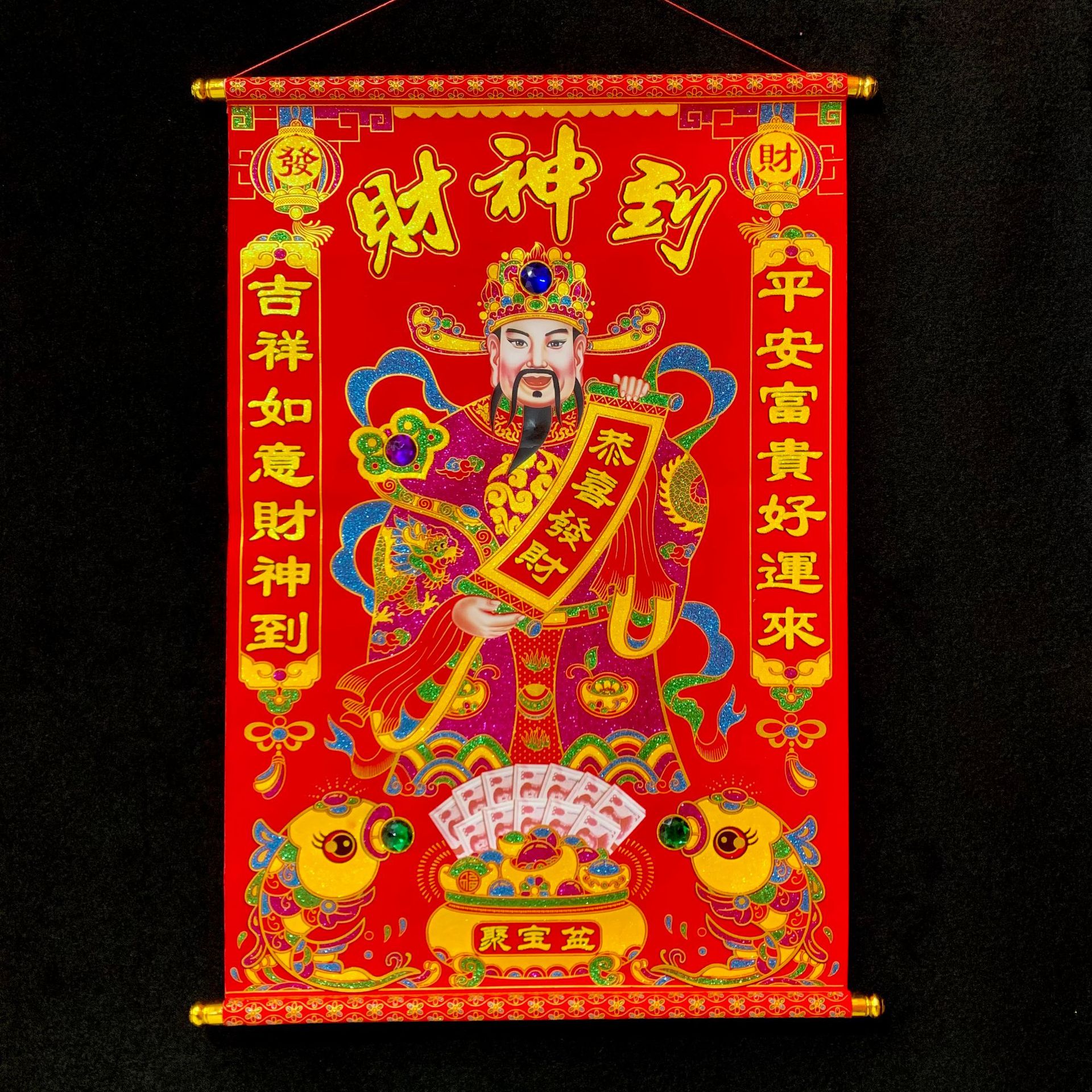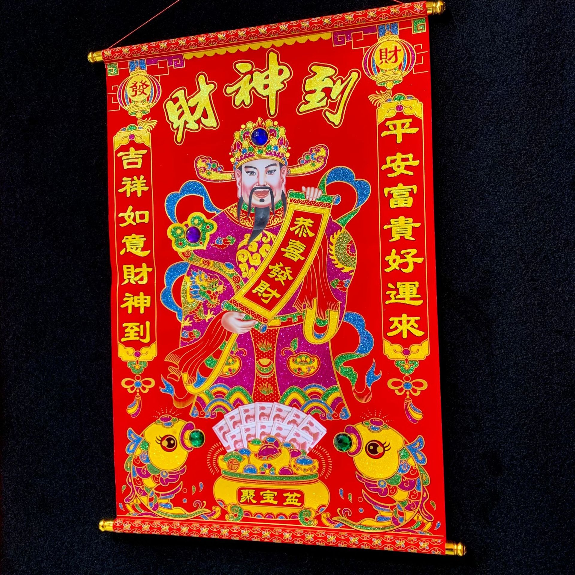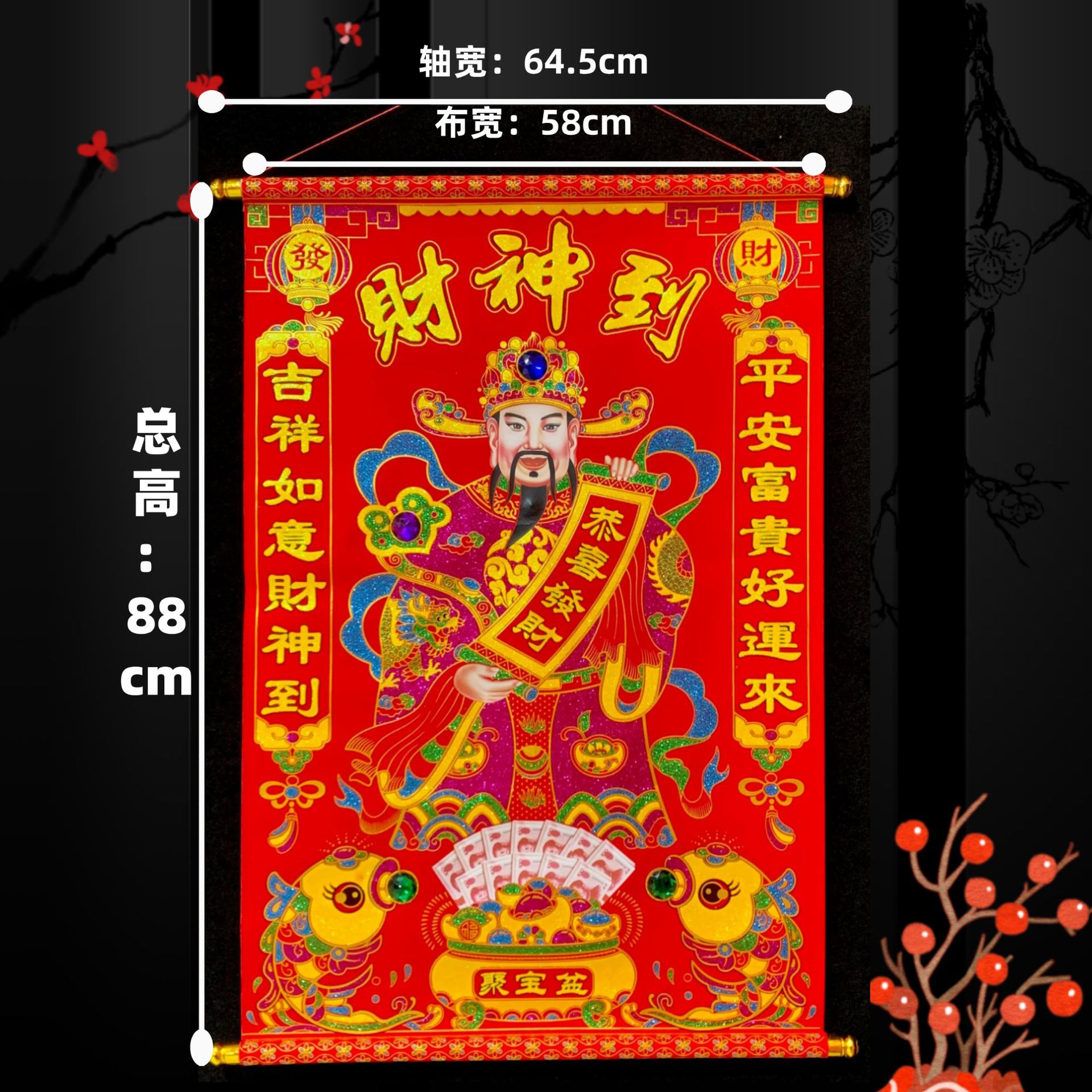 宝石款绒布卷轴财神挂画新年客厅精美盒装财神到装饰财神爷